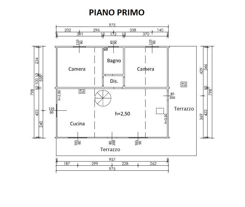 The property has double access, both from the ground floor and the first floor. From the garden one enters a panoramic terrace of 40 m². Here there is a spacious living area with an open kitchen and a large dining table, a generous seating area, two double bedrooms and a bathroom with a window.