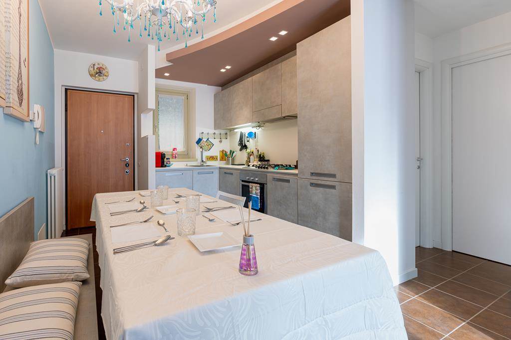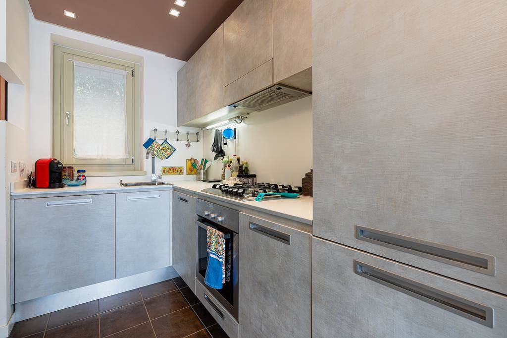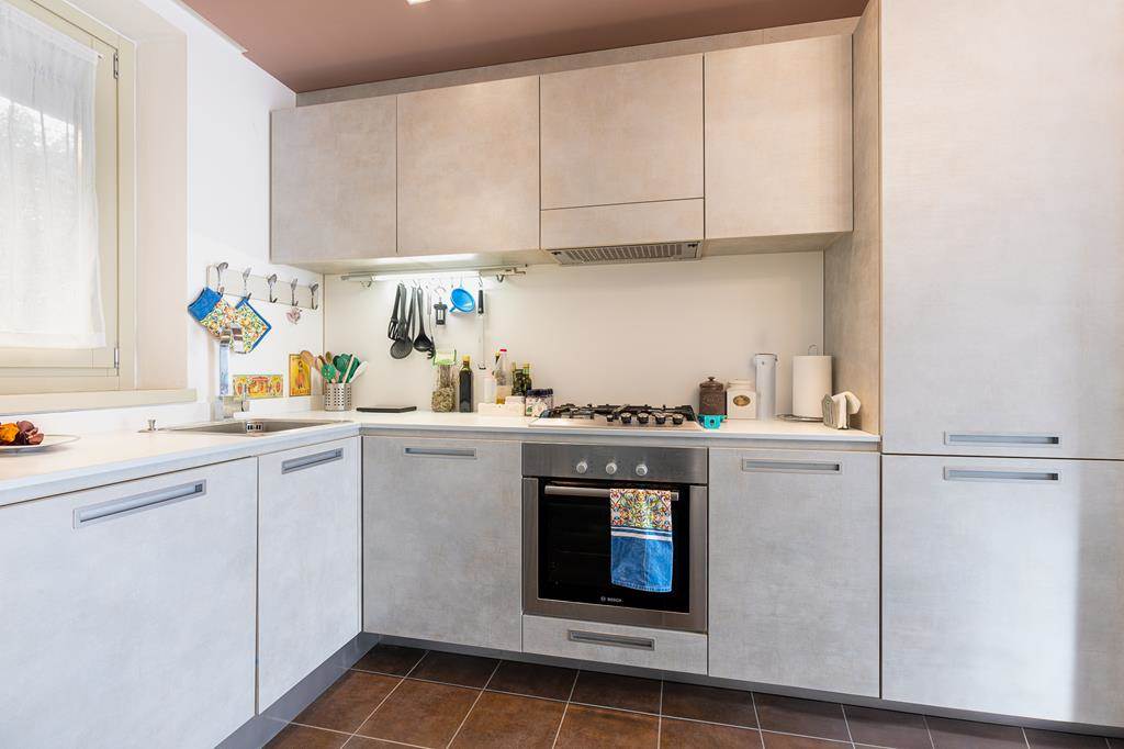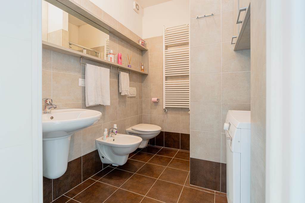 Located on the ground floor, the flat has a comfortable area of about 68 square metres, enriched by two small private gardens, ideal for enjoying the outdoors.