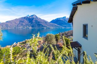 This beautiful detached house in Pianello del Lario, located on the sunny western shore of Lake Como, is spread over three spacious floors, with magical panoramic views over Lake Como. It has two complete and independently useable spacious flats and a basement. There is plenty of space around the house, a garden and additional pieces of land of 550m2.