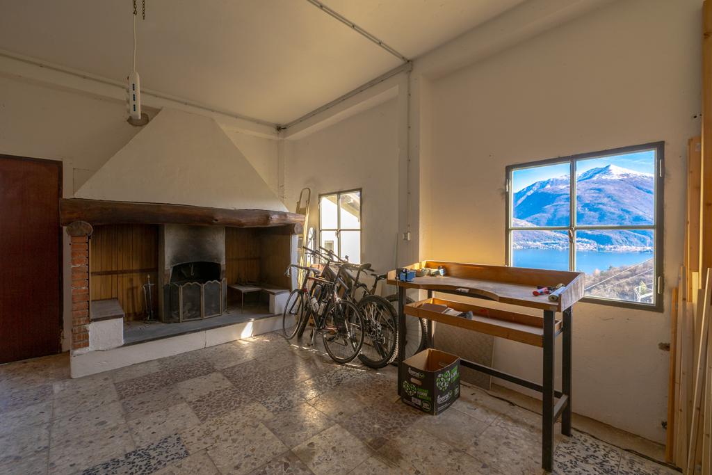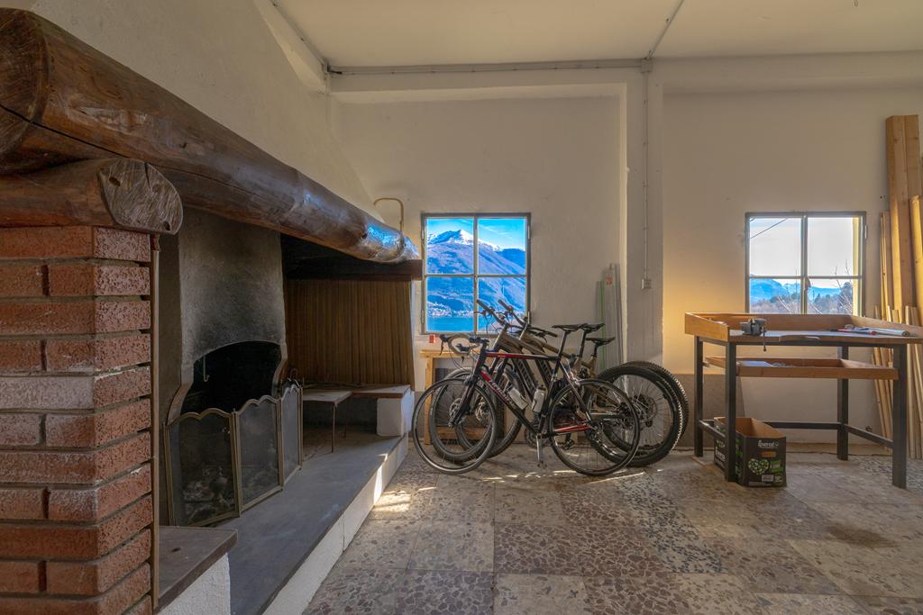 In a separate outbuilding at street level is the convenient double garage with another room below, accessible from the garden of equal surface, which can be used as storage, bike storage, or ideal as a workshop/hobby room, with beautiful views over the lake.