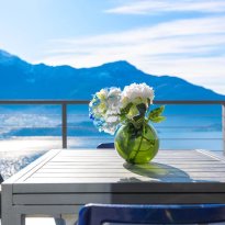 The solarium and swimming pool are for communal use and are located on the roof, with breathtaking panoramic views of the lake and the surrounding mountain landscape.