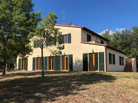 Renovated villa with swimming pool (5 x 10 m) and beautiful panoramic views over the countryside and the Sibillini Mountains, set in a private yet non-isolated location just minutes from San Ginesio and Tolentino. The property features a fully fenced garden of approx. 3,680 sqm, three outbuildings, easy access via a municipal road and was fully renovated in 2011, with main services in place.