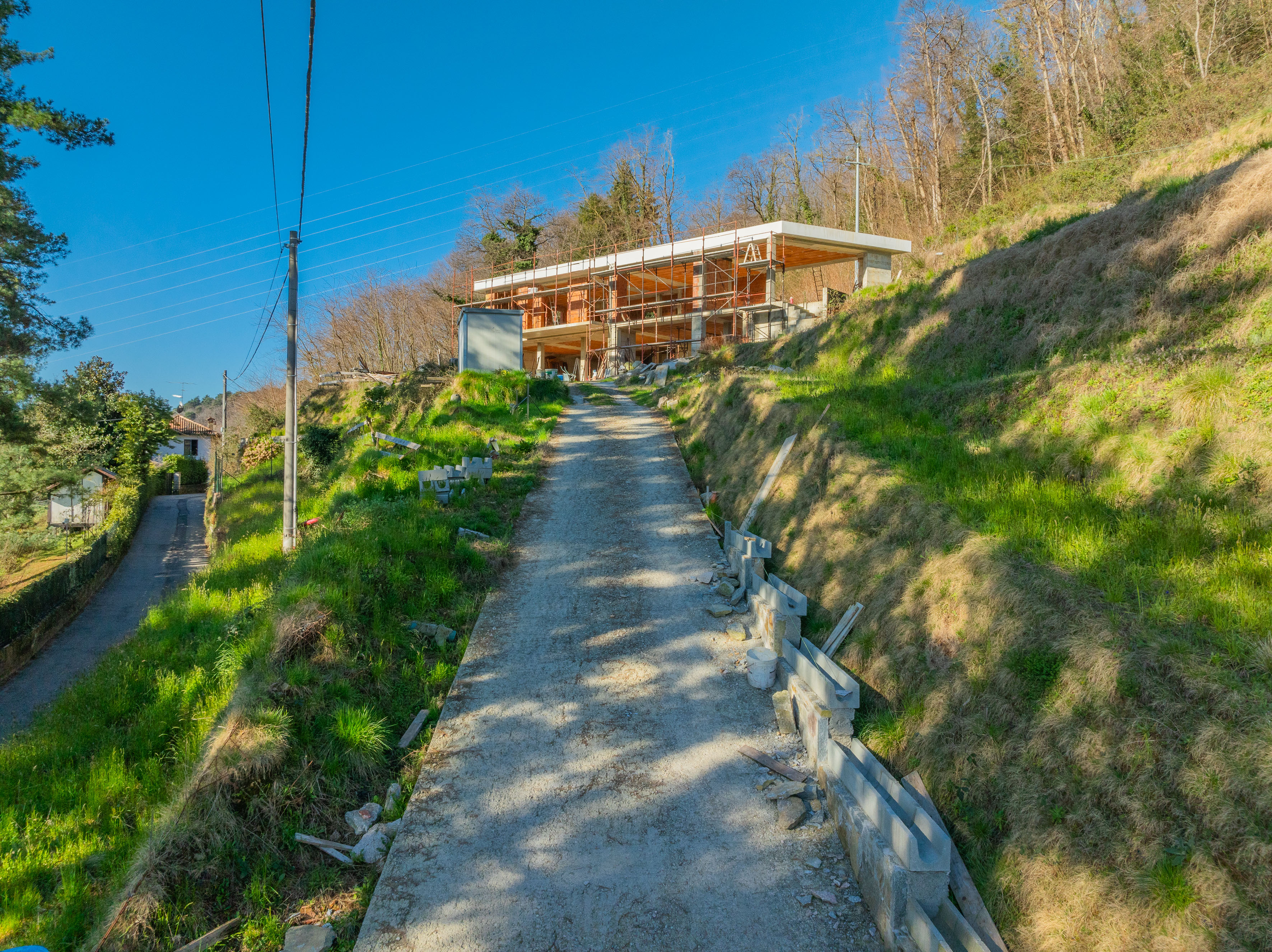 The property has an area of approximately 370 m², distributed over two floors (excluding balconies and terraces), and is situated on a spacious plot of approximately 3,000 m². The building is currently in the "shell" phase, which offers the possibility of full personalisation: from the internal layout of the rooms to the choice of finishes, so that a customised home can be created to suit your personal style and requirements.