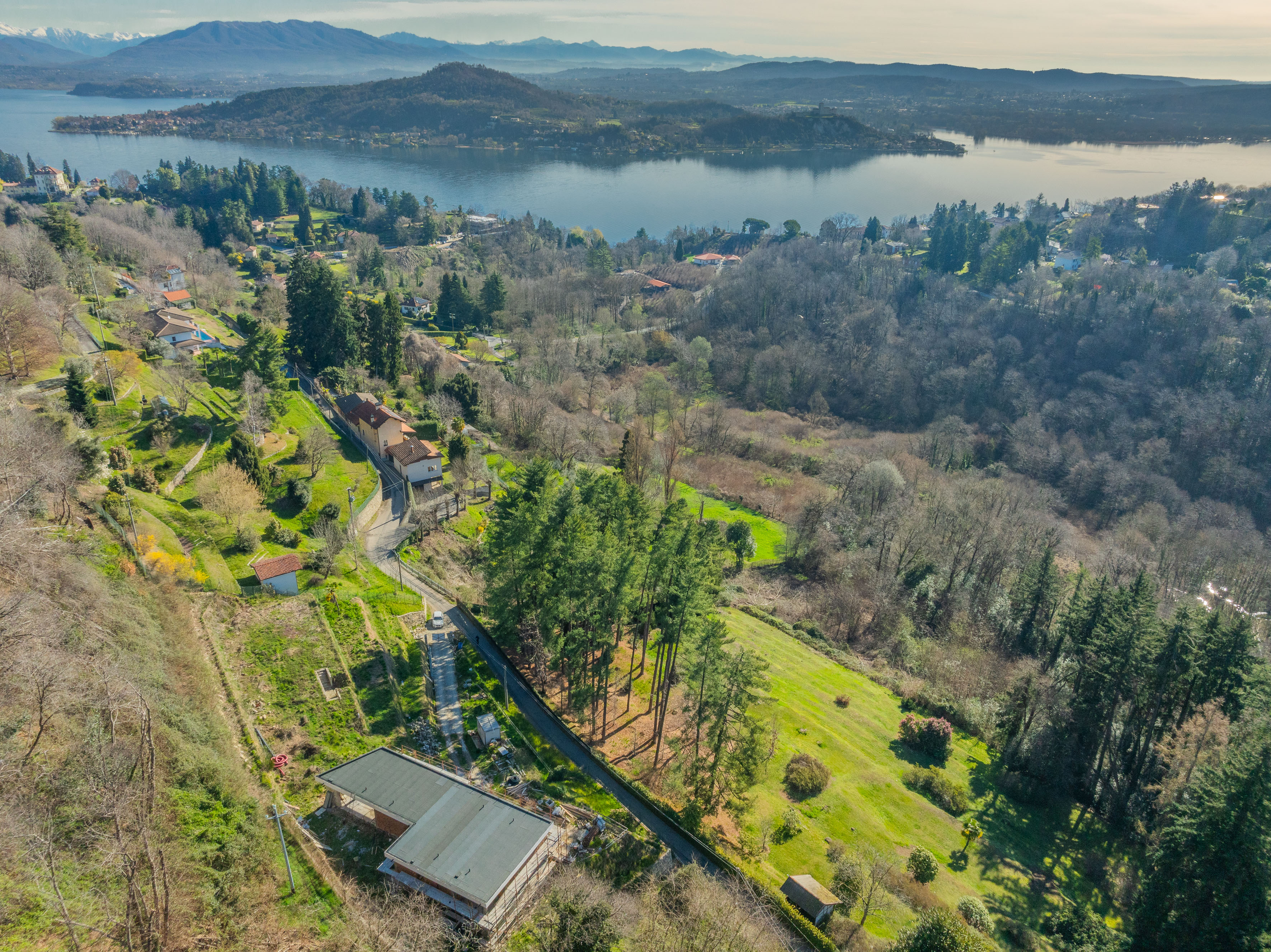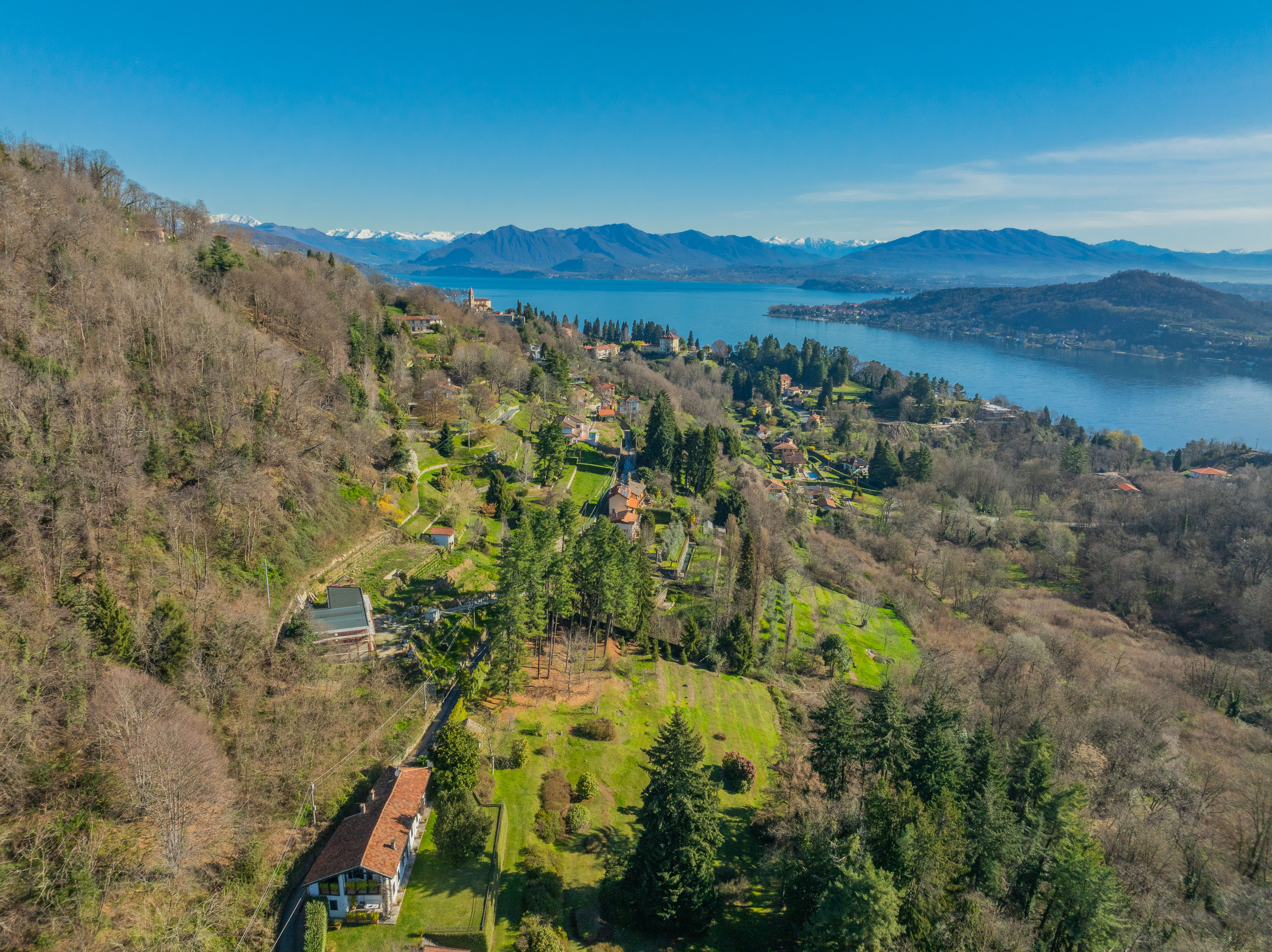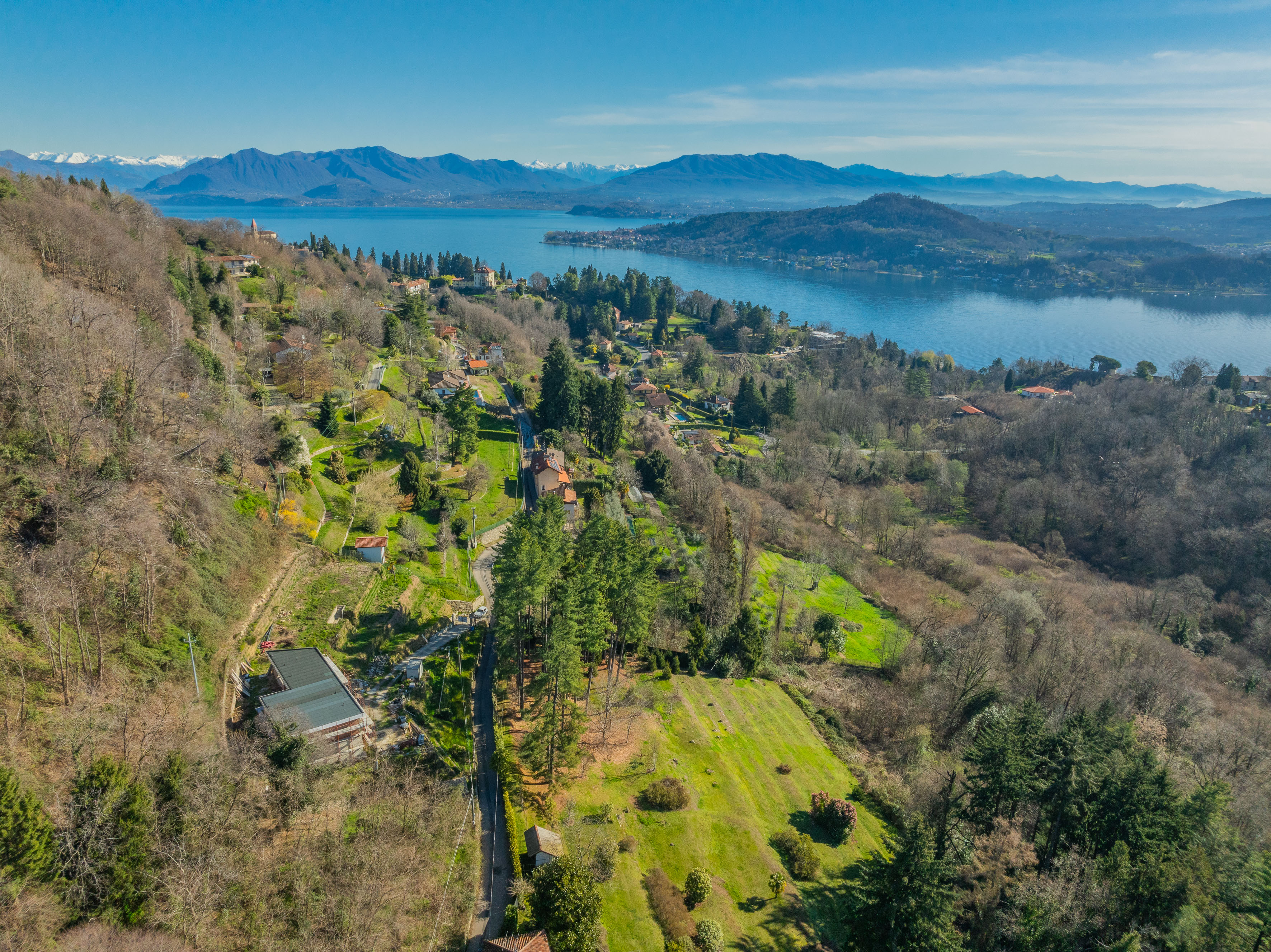 In a dominant hillside position, just a few minutes from Arona and Meina, amid the peace and greenery of Dagnente, we offer for sale a newly built villa with extraordinary panoramic views of Lake Maggiore. An exclusive and attractive setting, ideal for those looking for a prestigious property surrounded by nature.