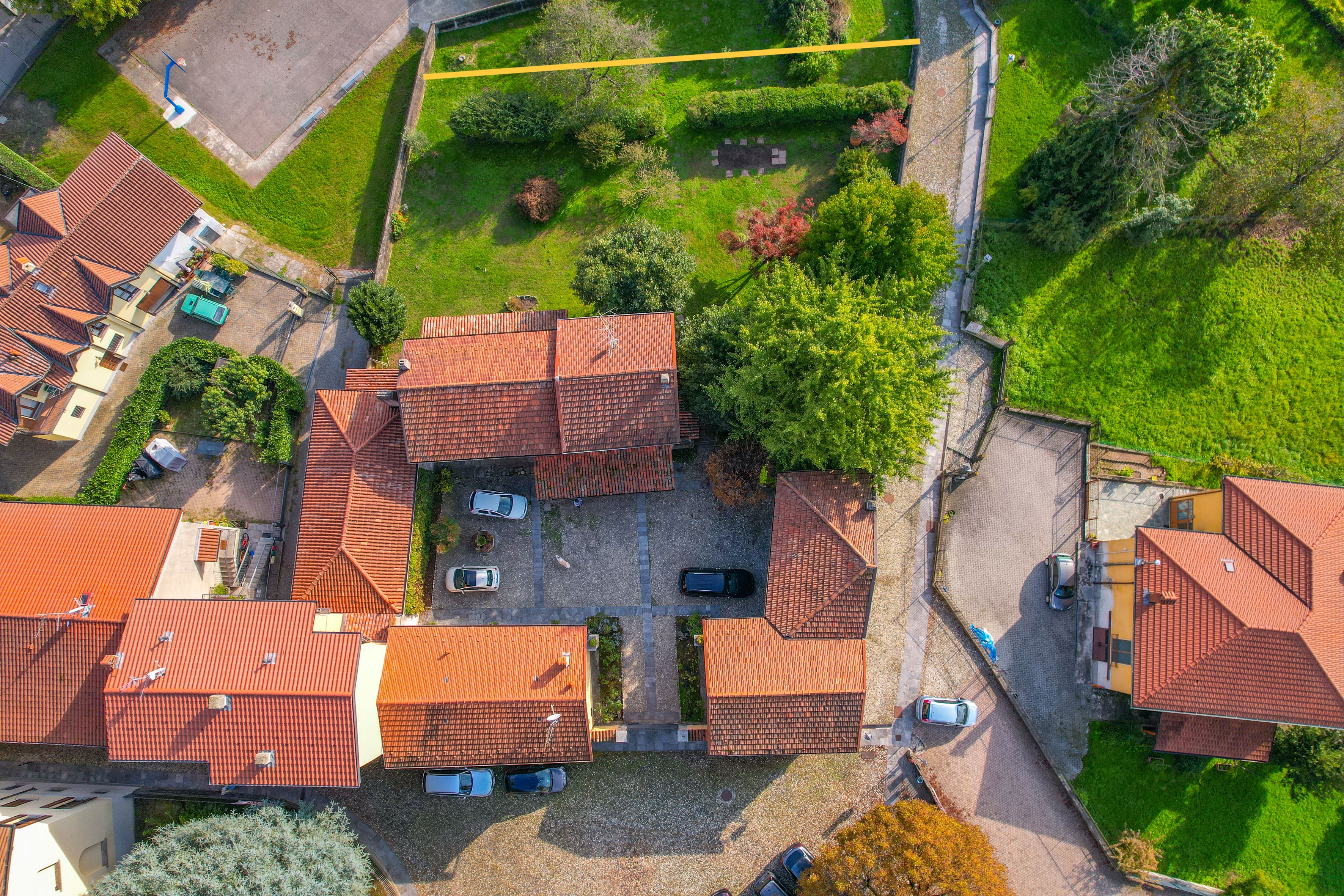 Important: at the back of the garden, a narrow strip of land is ceded to the owner of the property behind. This strip is not zoned as building land. This is visible in one of the photos (yellow line).