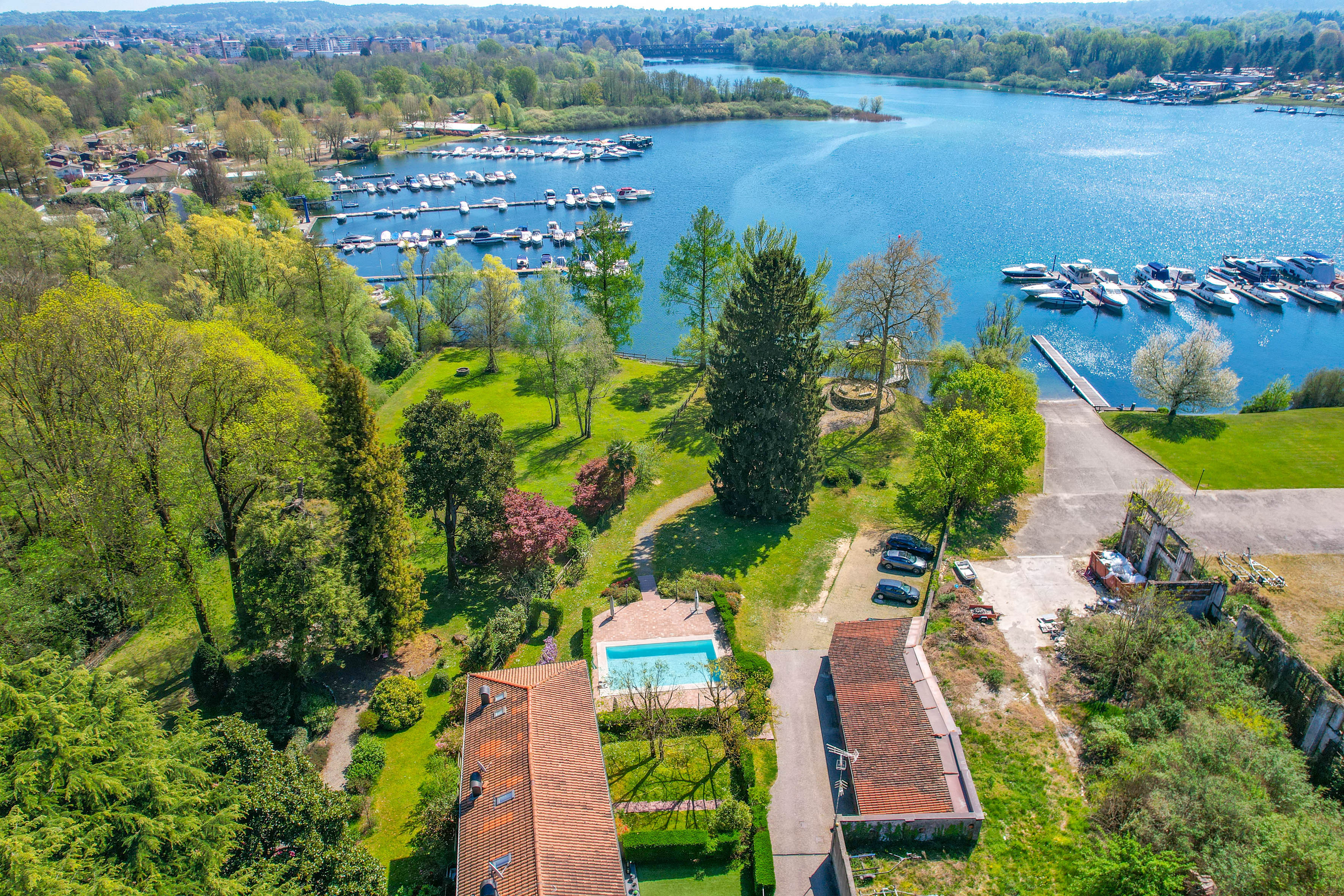 The property is part of a well-kept and quiet residential complex with direct access to the lake, a private marina, swimming pool and communal park, a short distance from the centre and also easily accessible via a cycle path.