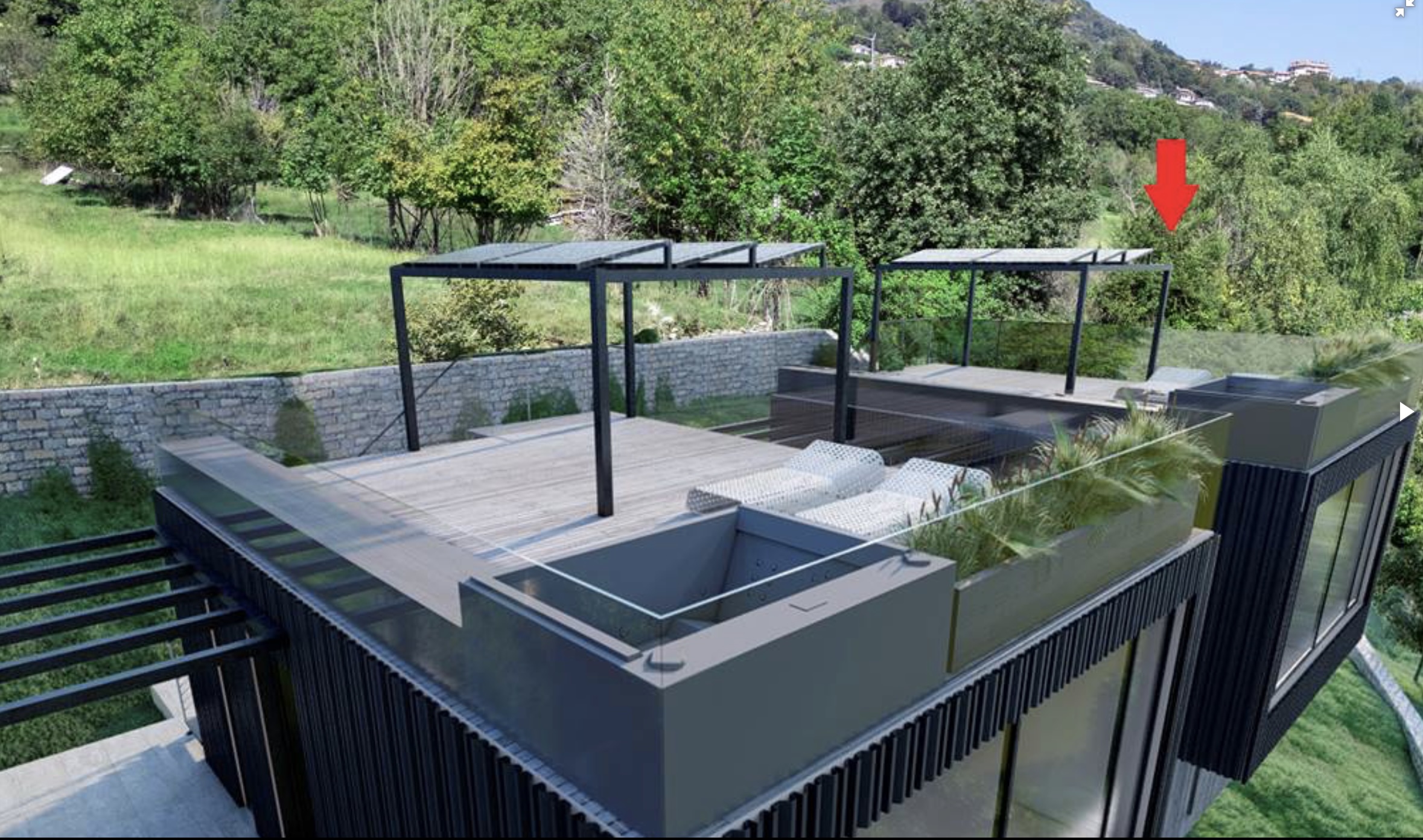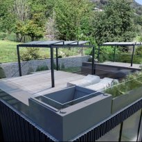 An exclusive outdoor space on the roof of the house, ideal for relaxing and enjoying the views, equipped with a solarium and jacuzzi.