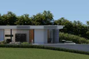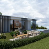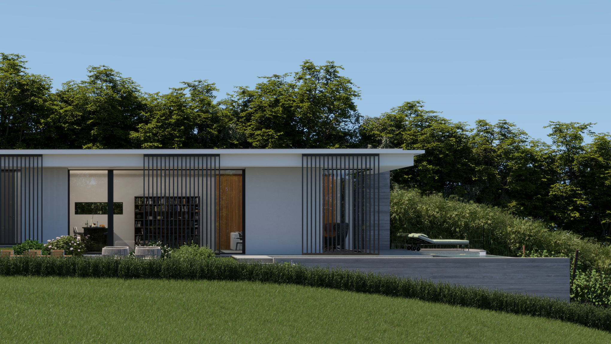 The architectural design of the villa employs modern and clean forms, characterised by simple volumes and large windows that let in abundant natural light.
