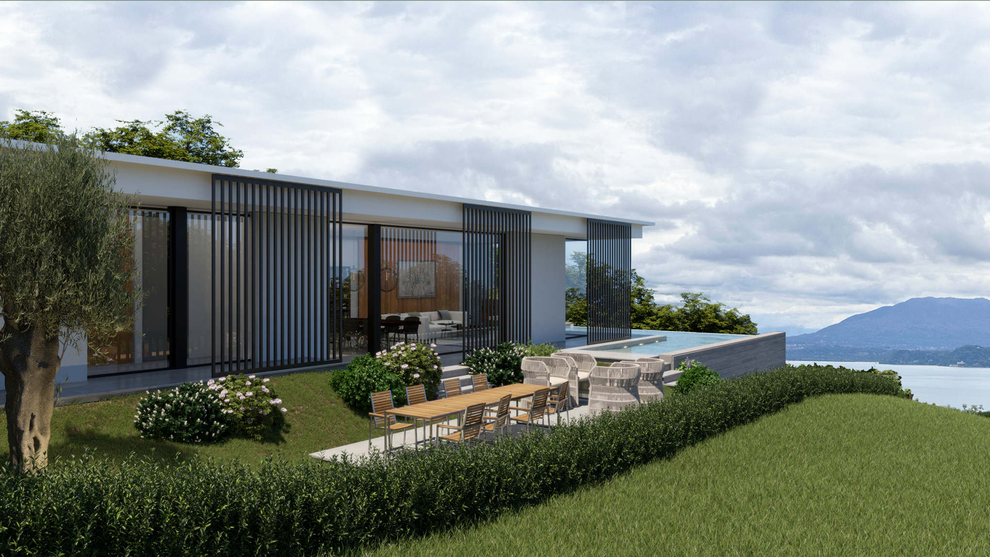 In a dominant hillside position, just a few minutes from Arona and Meina, amid the peace and greenery of Dagnente, we offer for sale a newly built villa with extraordinary panoramic views of Lake Maggiore. An exclusive and attractive setting, ideal for those looking for a prestigious home surrounded by nature.