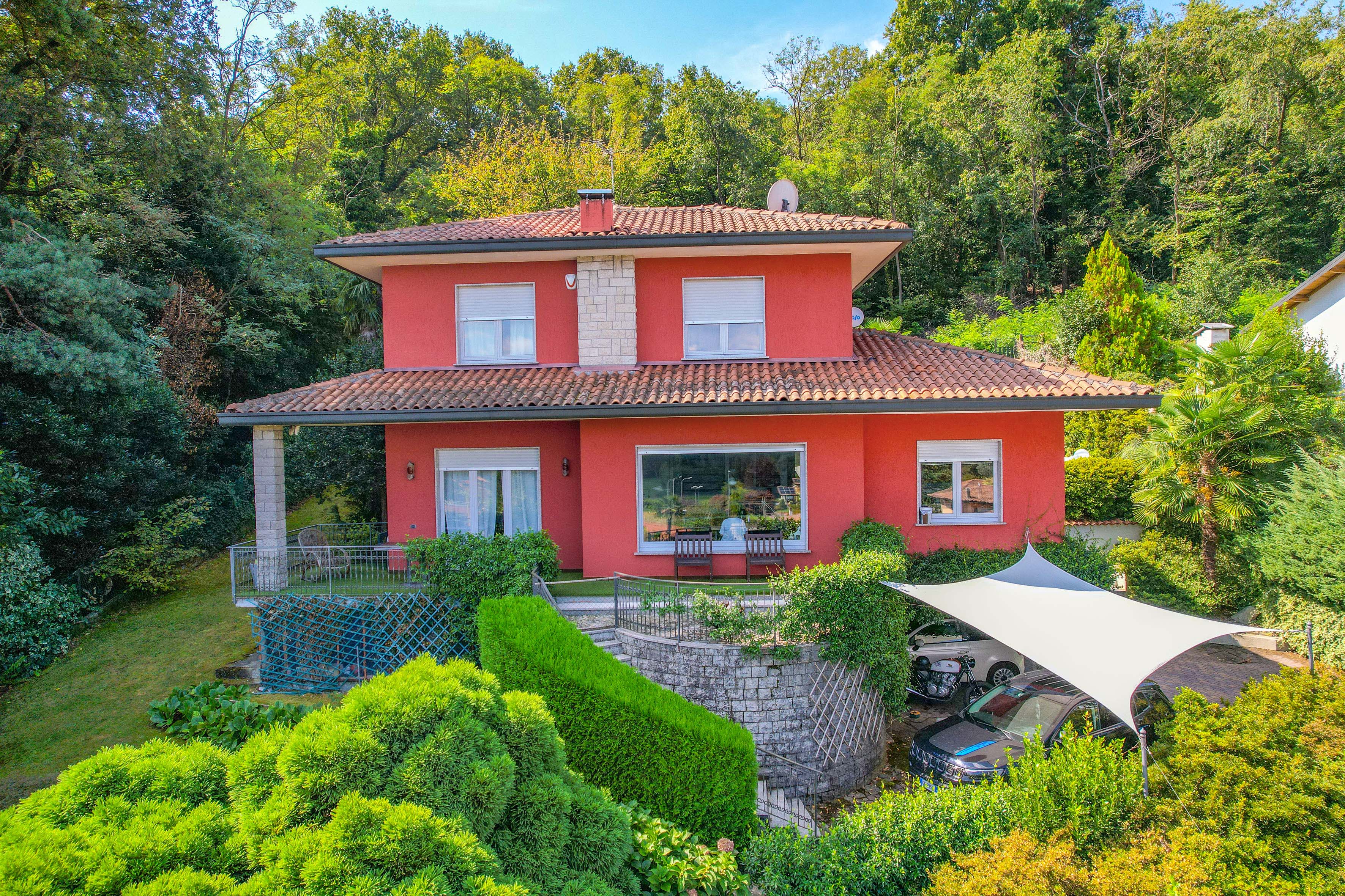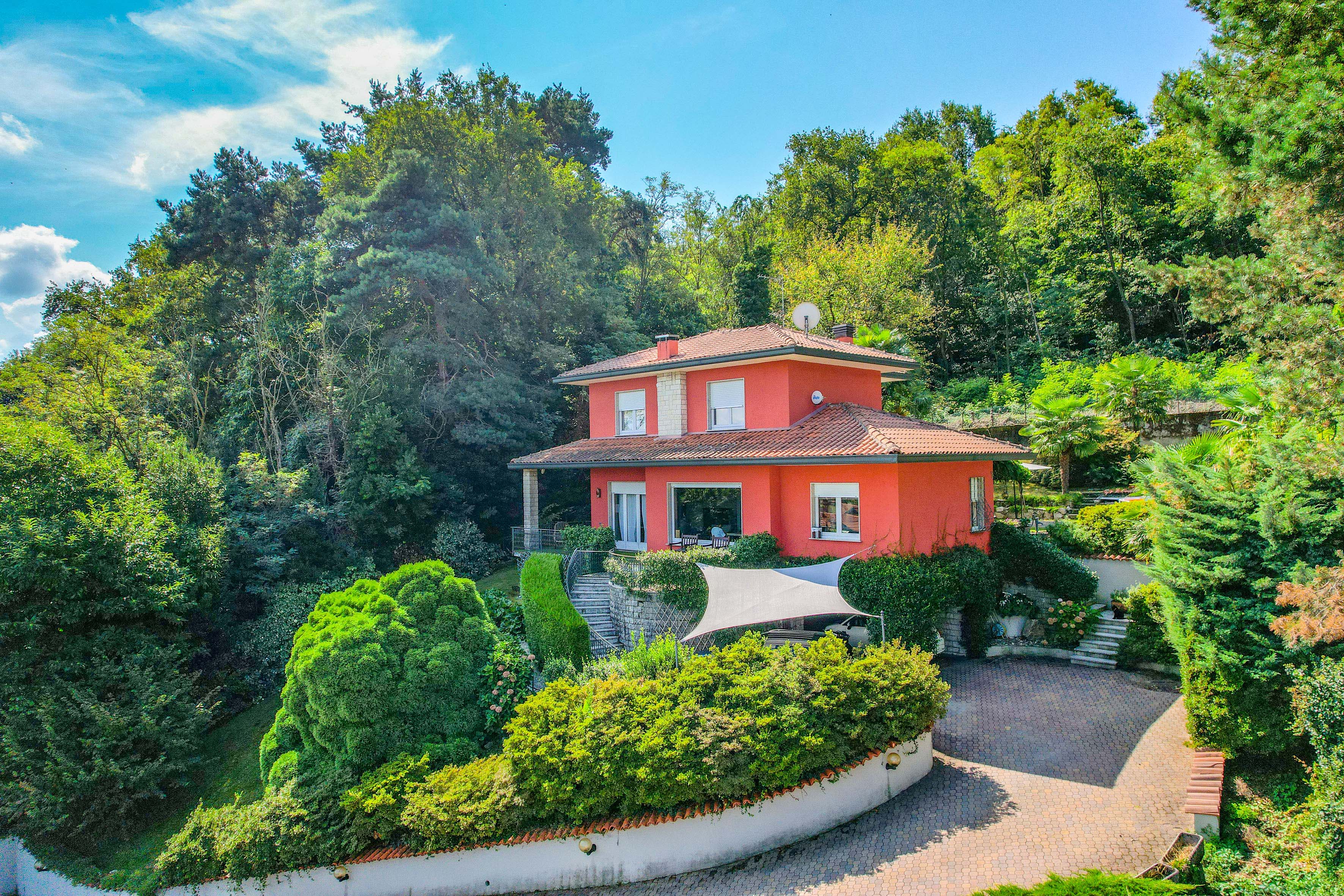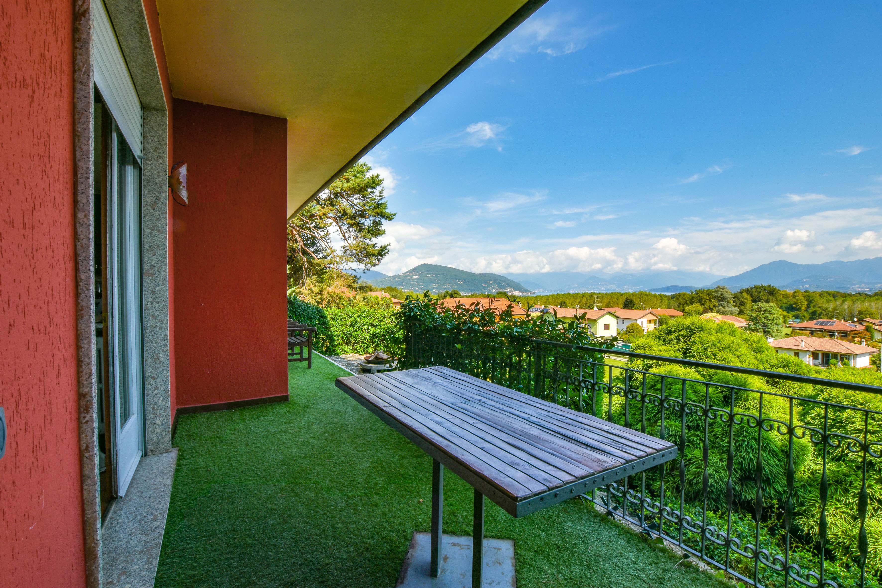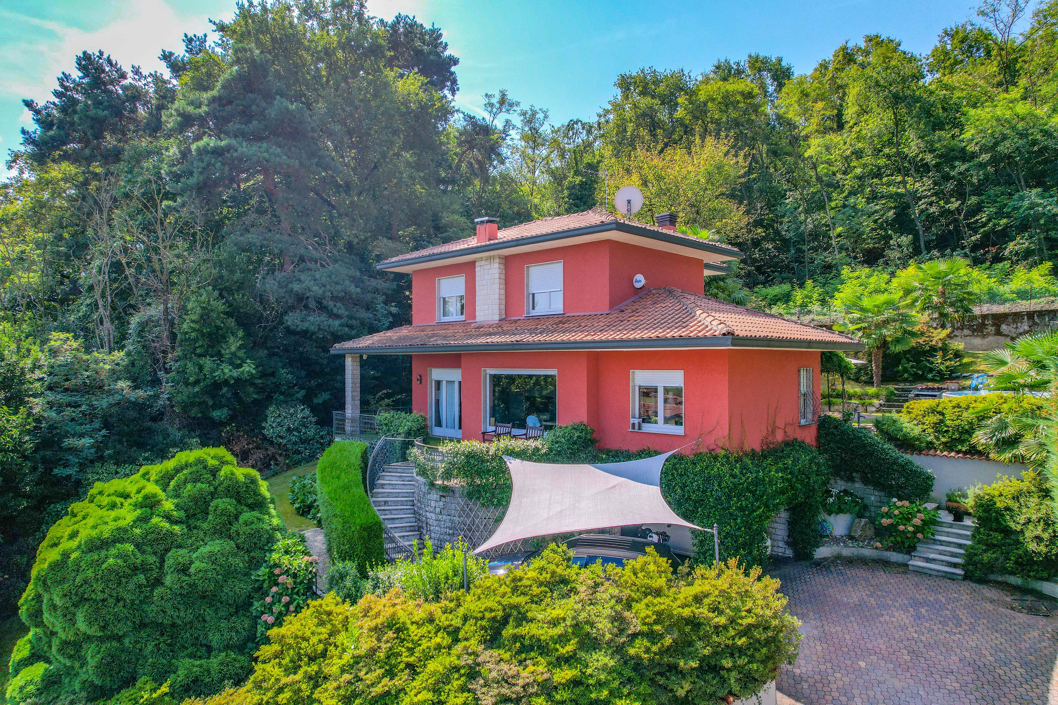 The villa is surrounded by a beautifully landscaped garden of about 1,500 m², with two barbecue areas, a veranda, an outdoor shower and a jacuzzi. Everything has been designed to perfection for experiencing unforgettable moments outdoors and enjoying the enchanting panorama that Lake Maggiore has to offer.