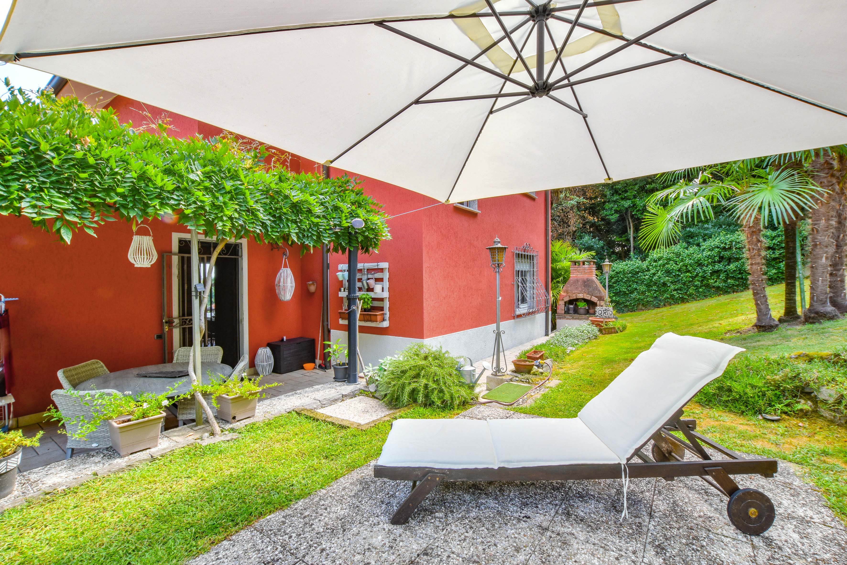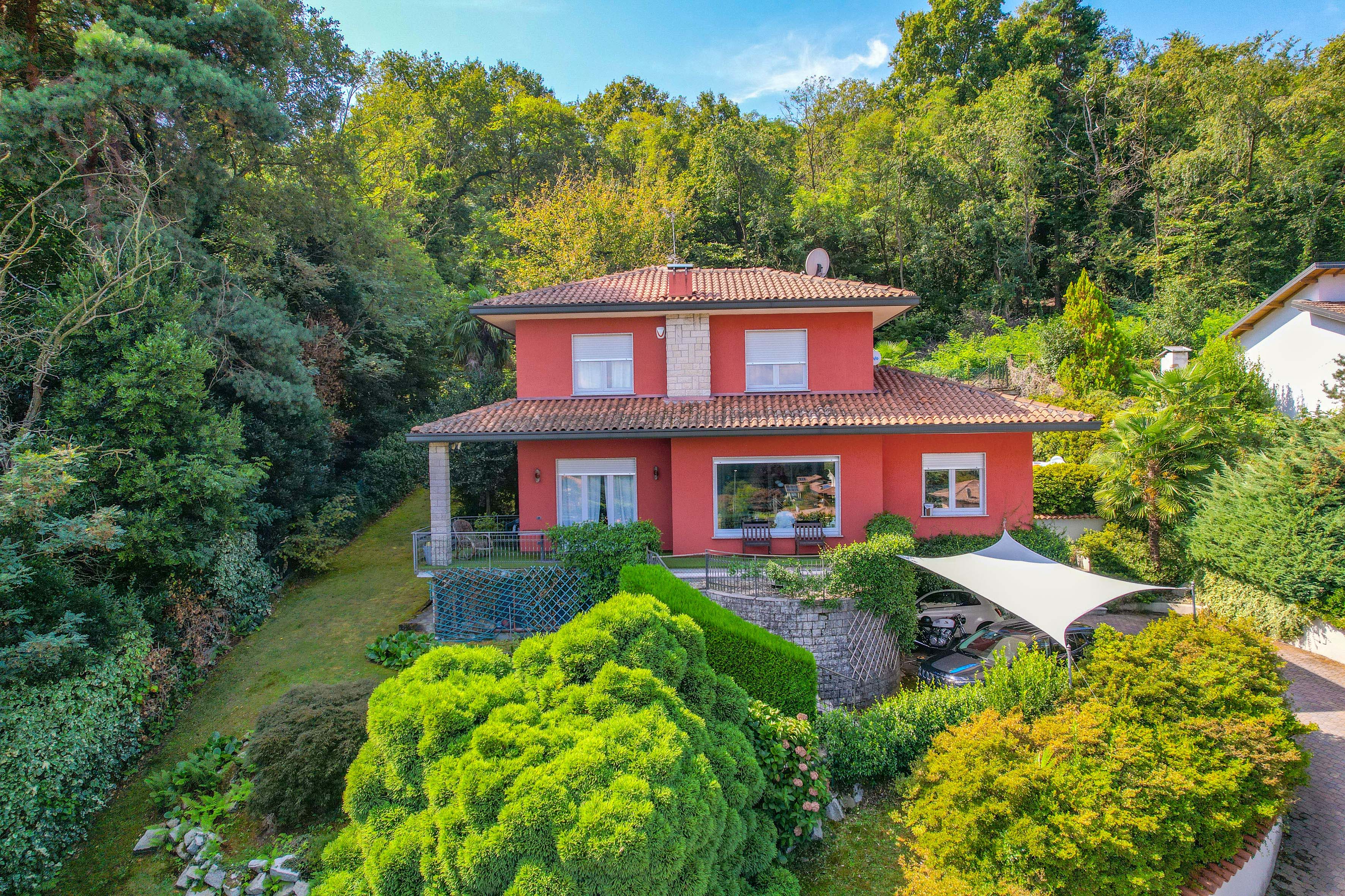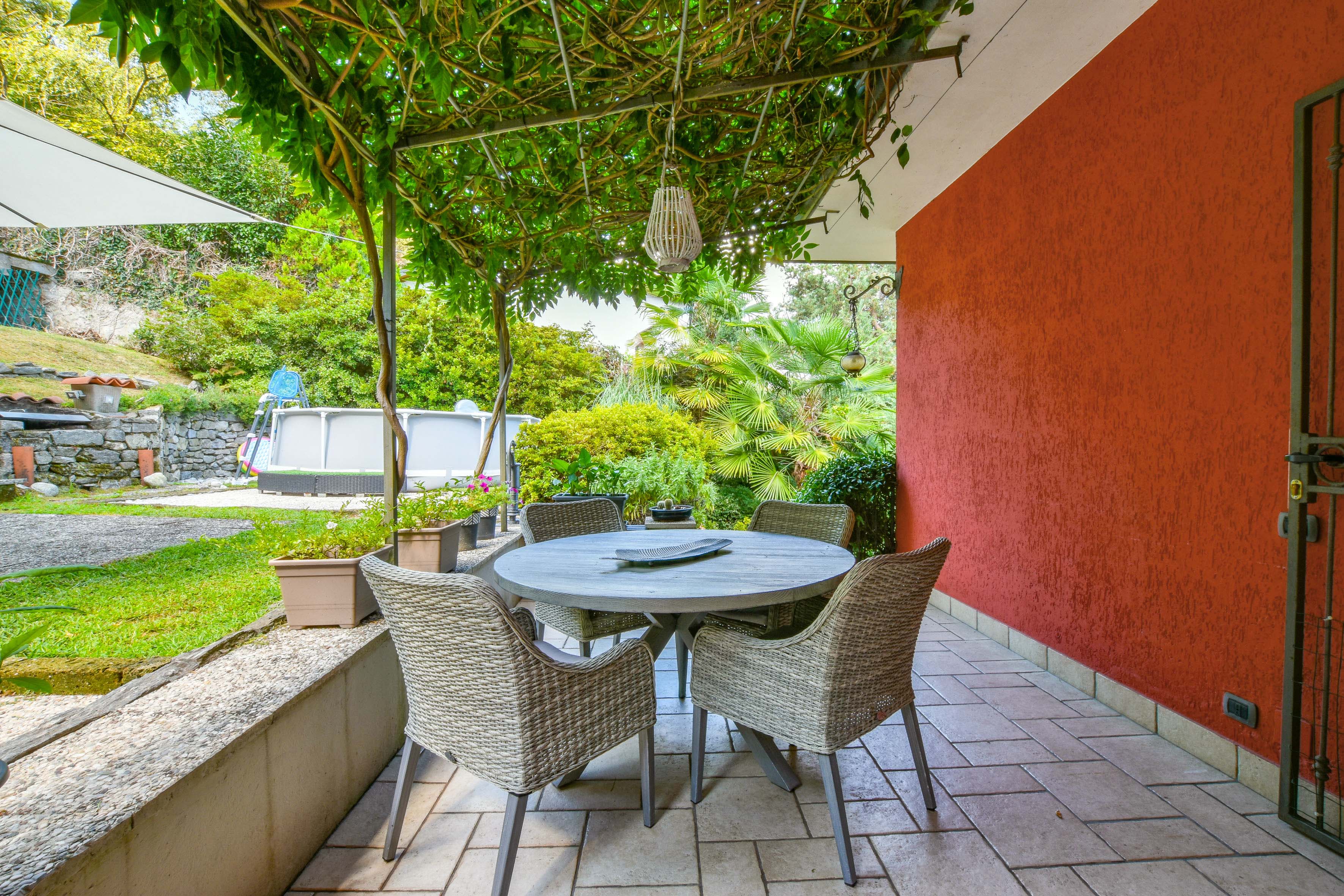 The villa is surrounded by a beautifully landscaped garden of about 1,500 m², with two barbecue areas, a veranda, an outdoor shower and a jacuzzi. Everything has been designed to perfection for experiencing unforgettable moments outdoors and enjoying the enchanting panorama that Lake Maggiore has to offer.