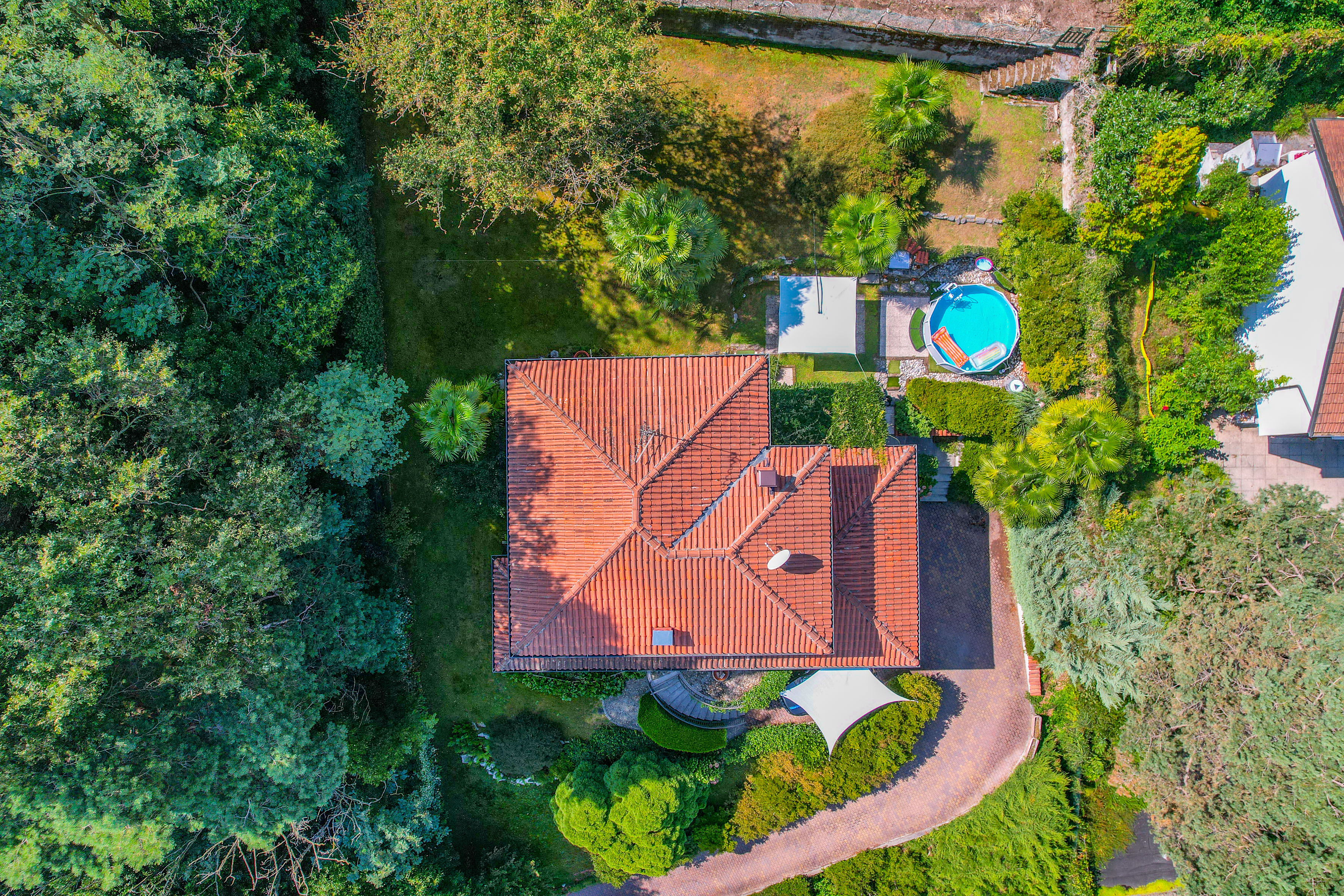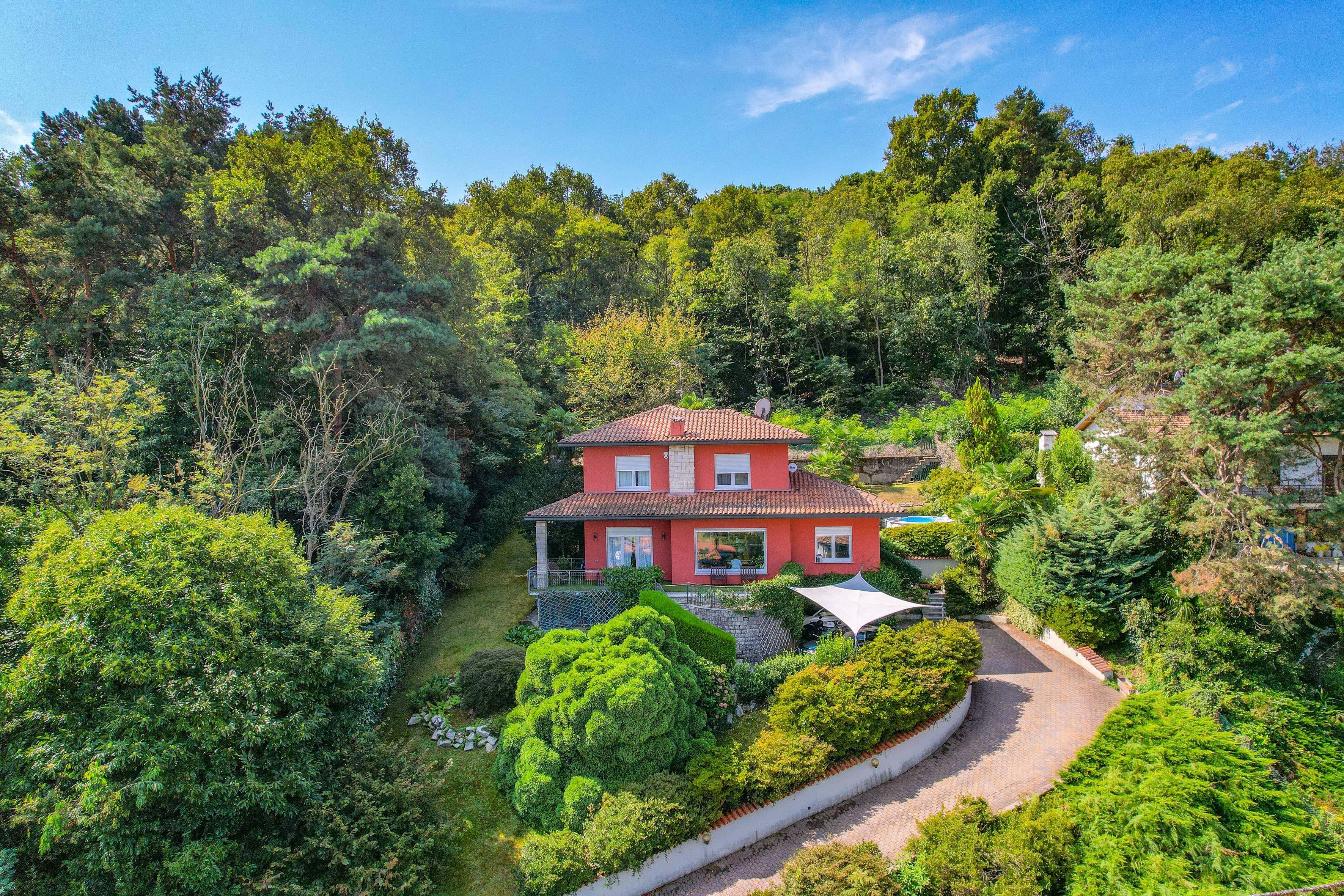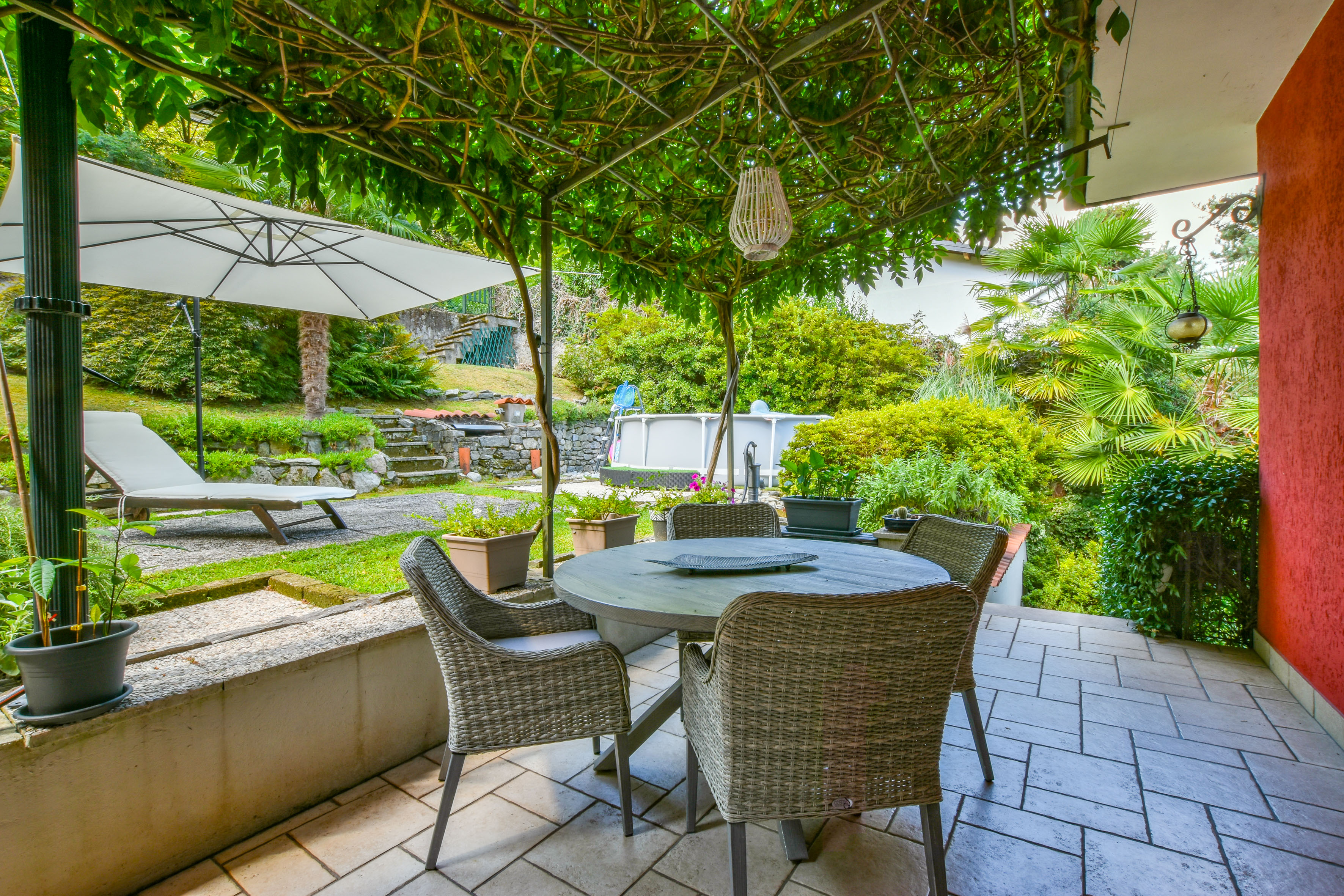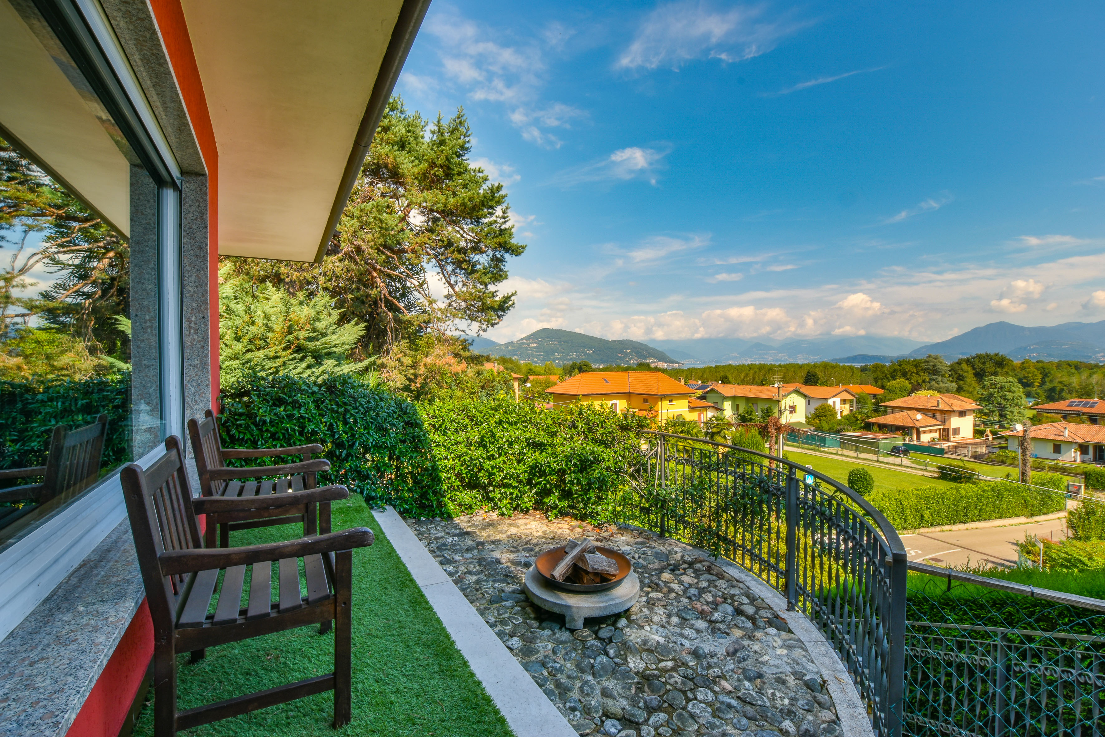 The villa is surrounded by a beautifully landscaped garden of about 1,500 m², with two barbecue areas, a veranda, an outdoor shower and a jacuzzi. Everything has been designed to perfection for experiencing unforgettable moments outdoors and enjoying the enchanting panorama that Lake Maggiore has to offer.