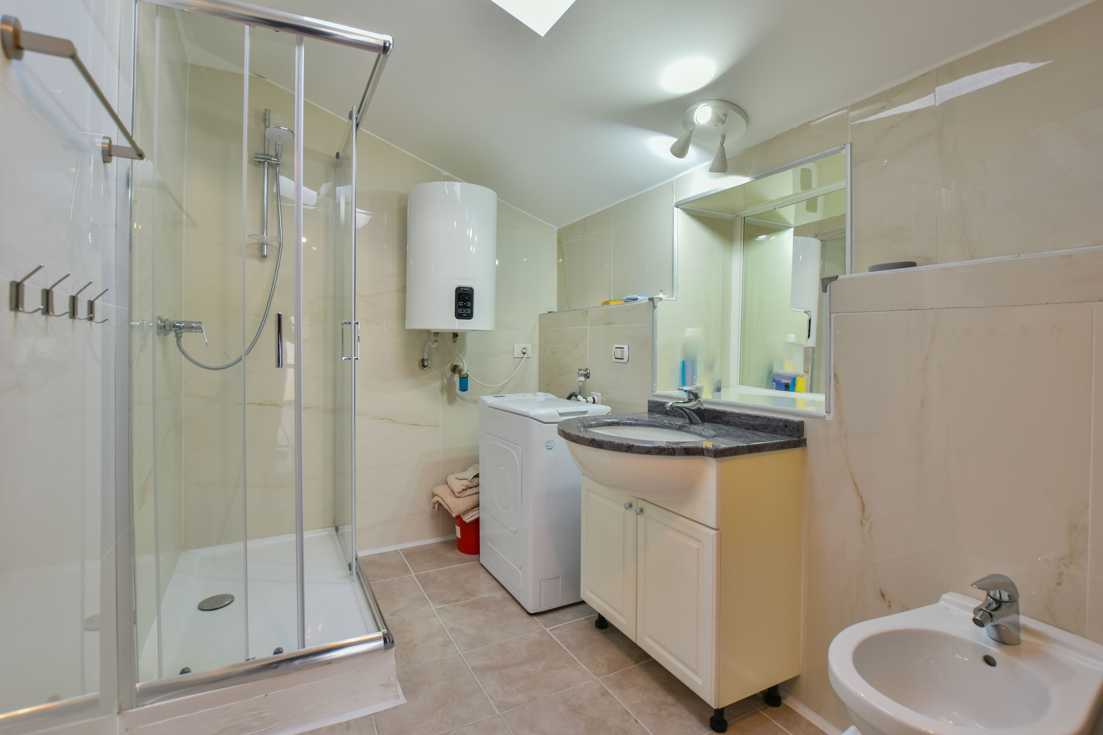 The property also features an attic of about 30 m² and a 20 m² cellar on the ground floor. The flat is equipped with independent air heating via a split heat pump.