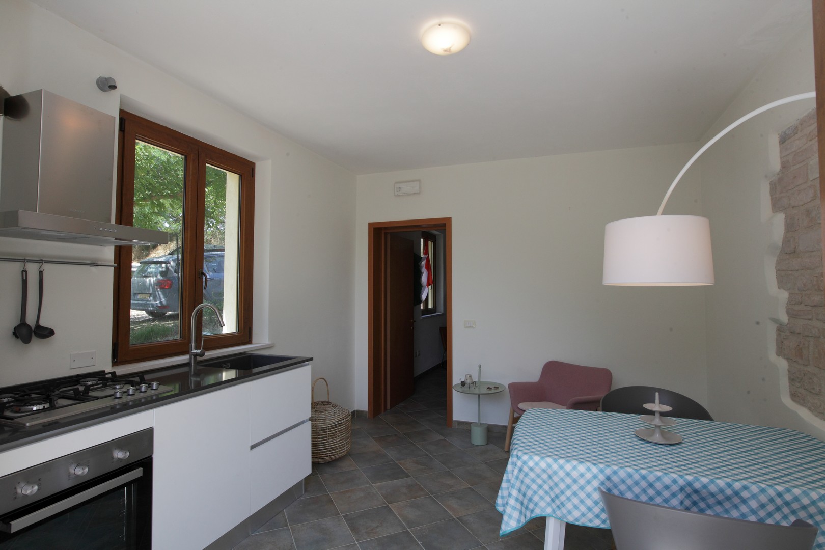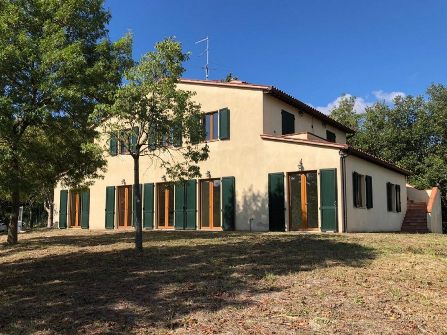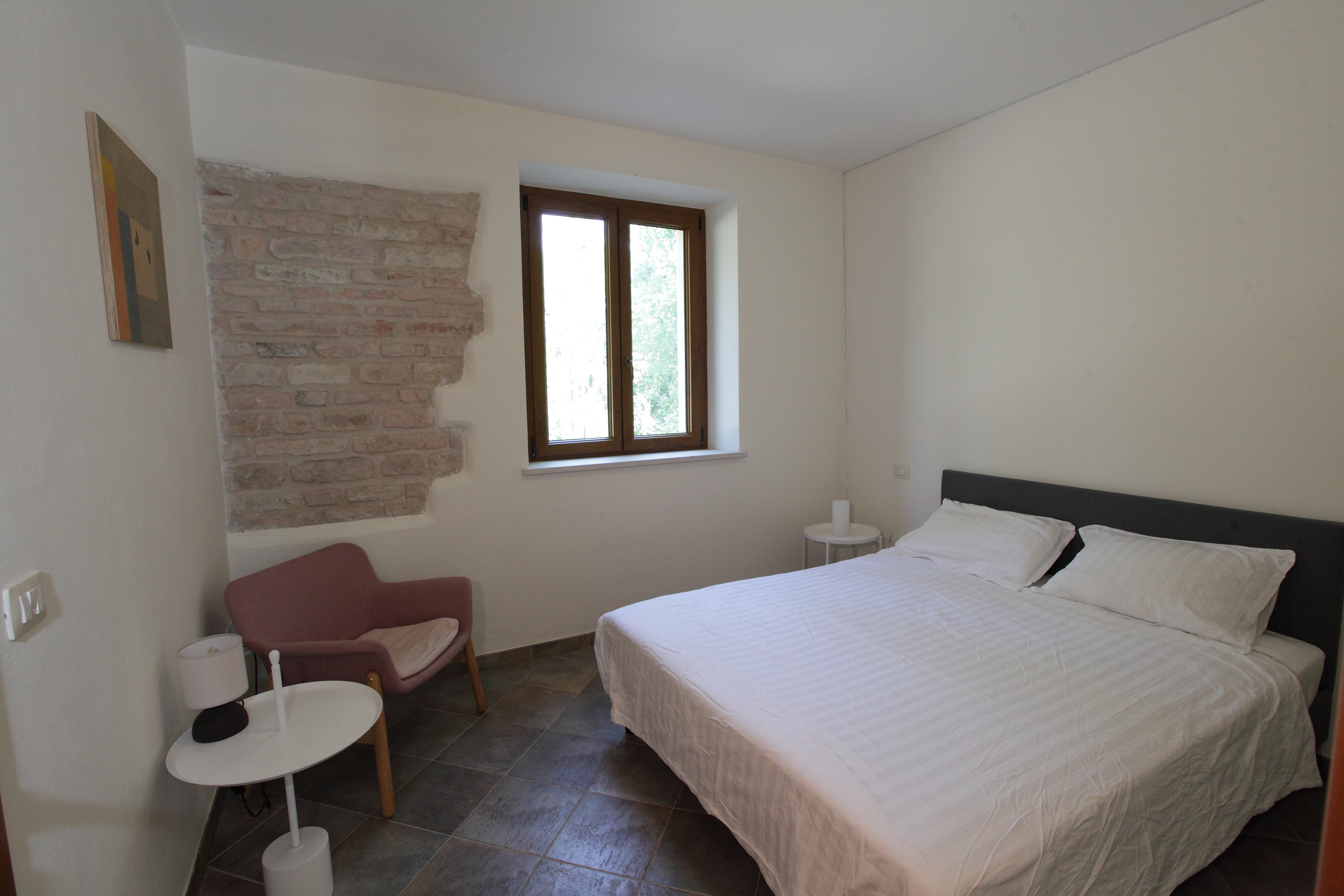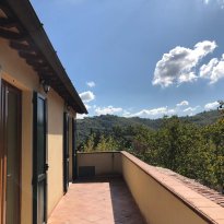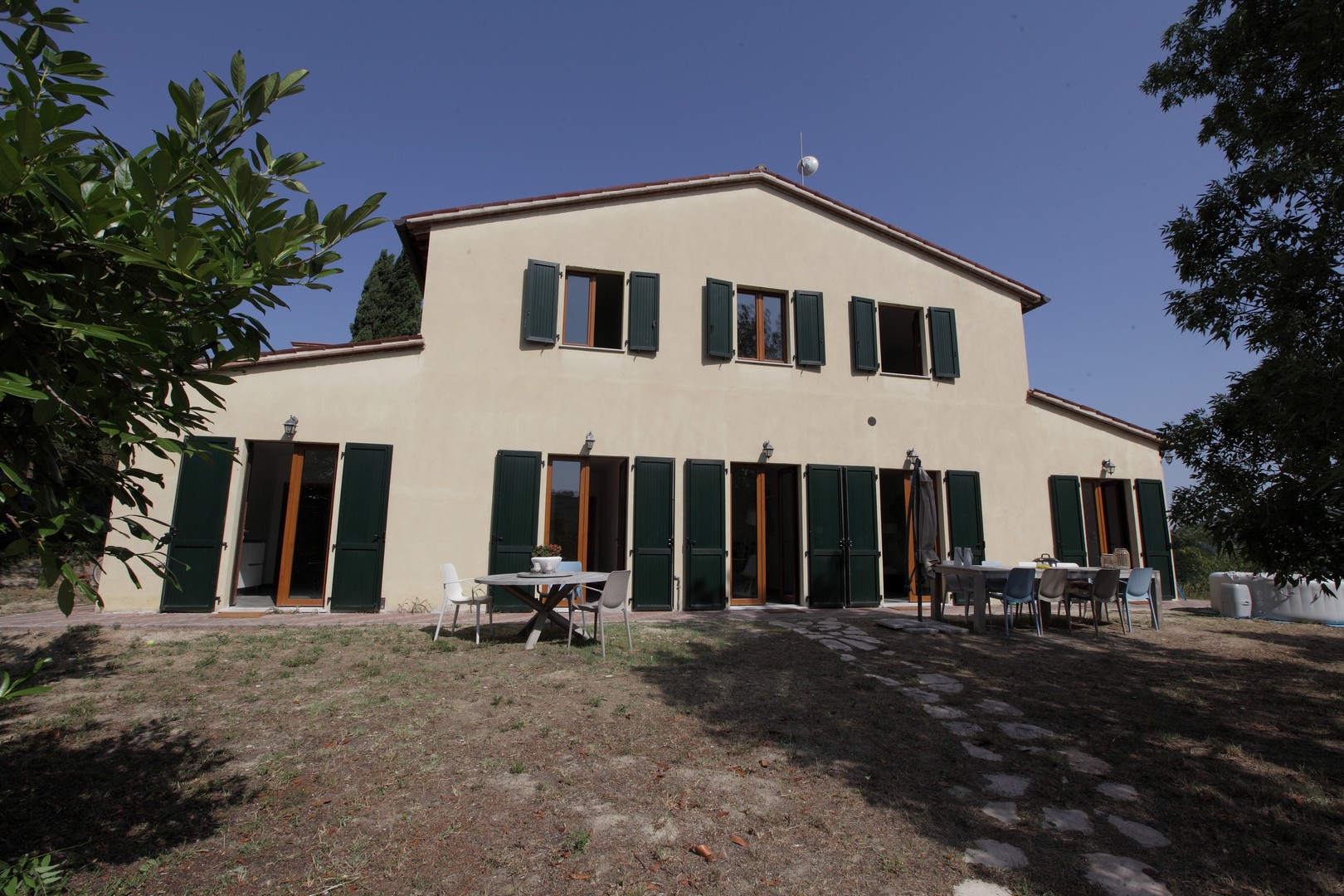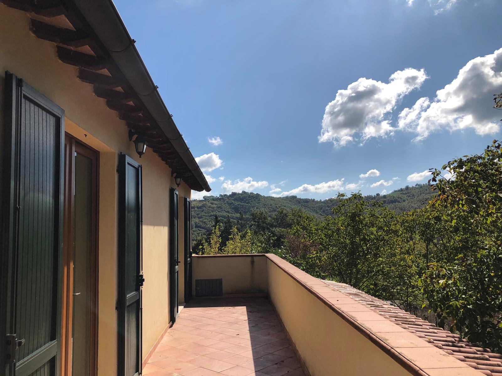 The house was completely renovated in 2004 with high-quality materials, including new PVC double-glazed windows, terracotta floors and an underfloor central heating system. The country house is surrounded by nature, with views of fields, hills and vineyards from the fully fenced garden. The location is easily accessible, the Adriatic Sea can be reached in just 45 minutes, and nearby are the beautiful historic Roman towns of Urbino, Cagli, Fossombrone and Acqualagna - the latter known for its truffles .