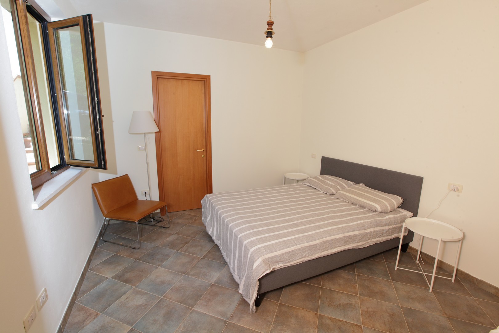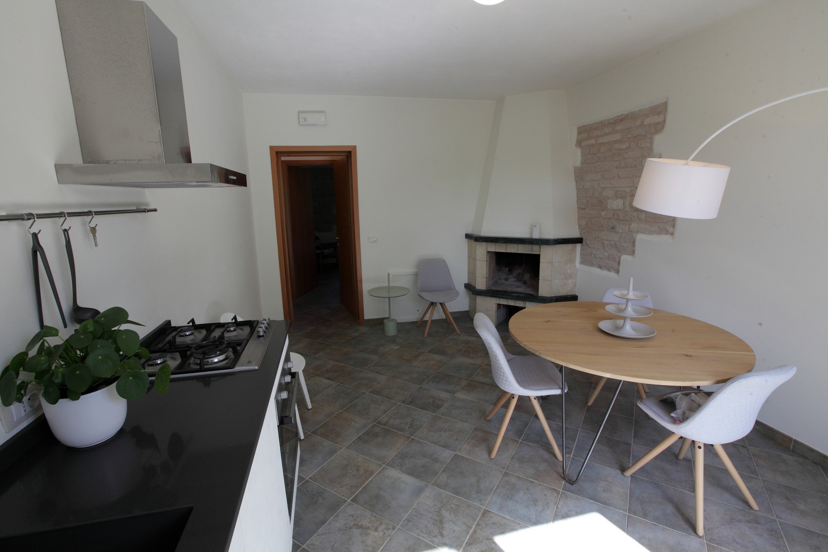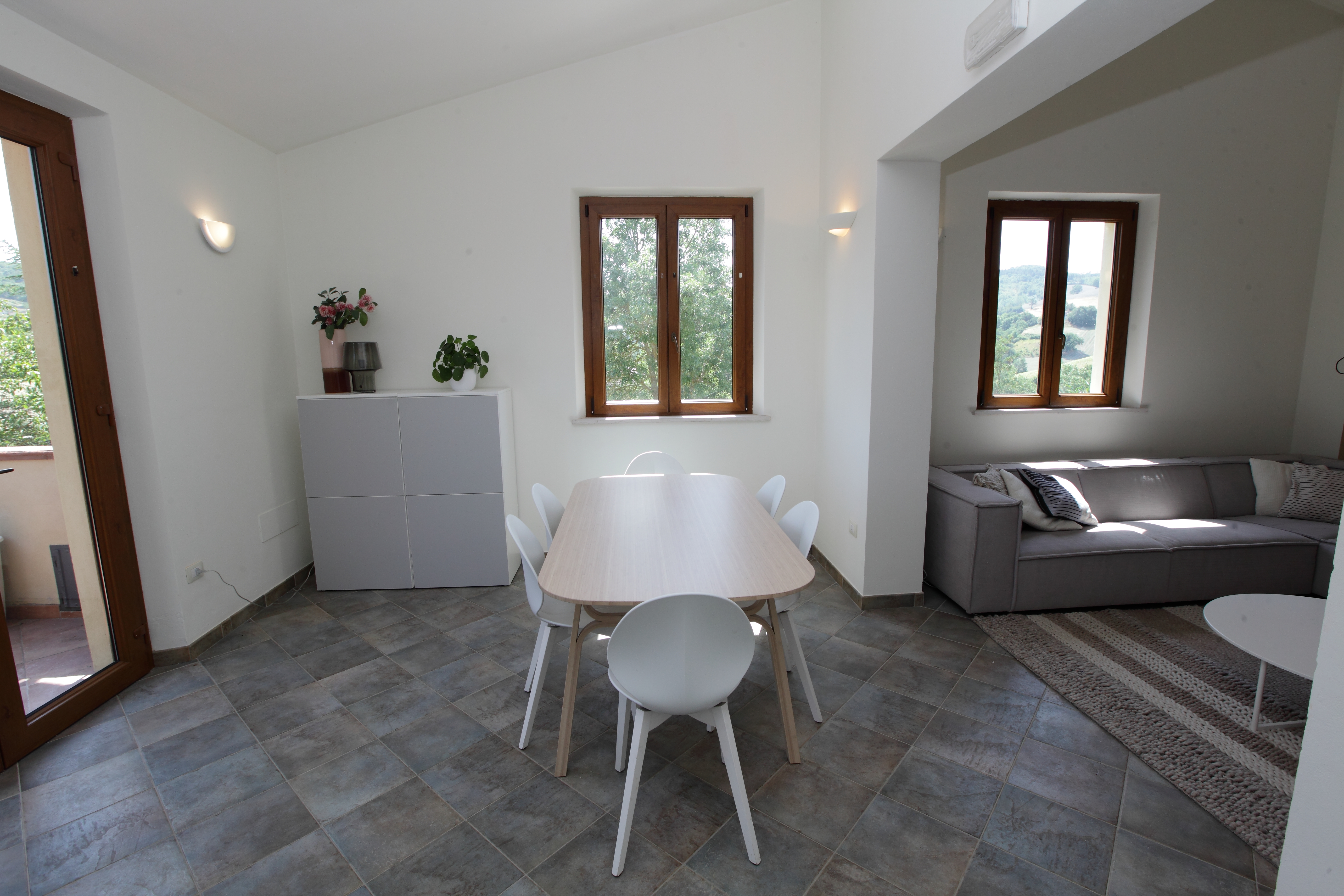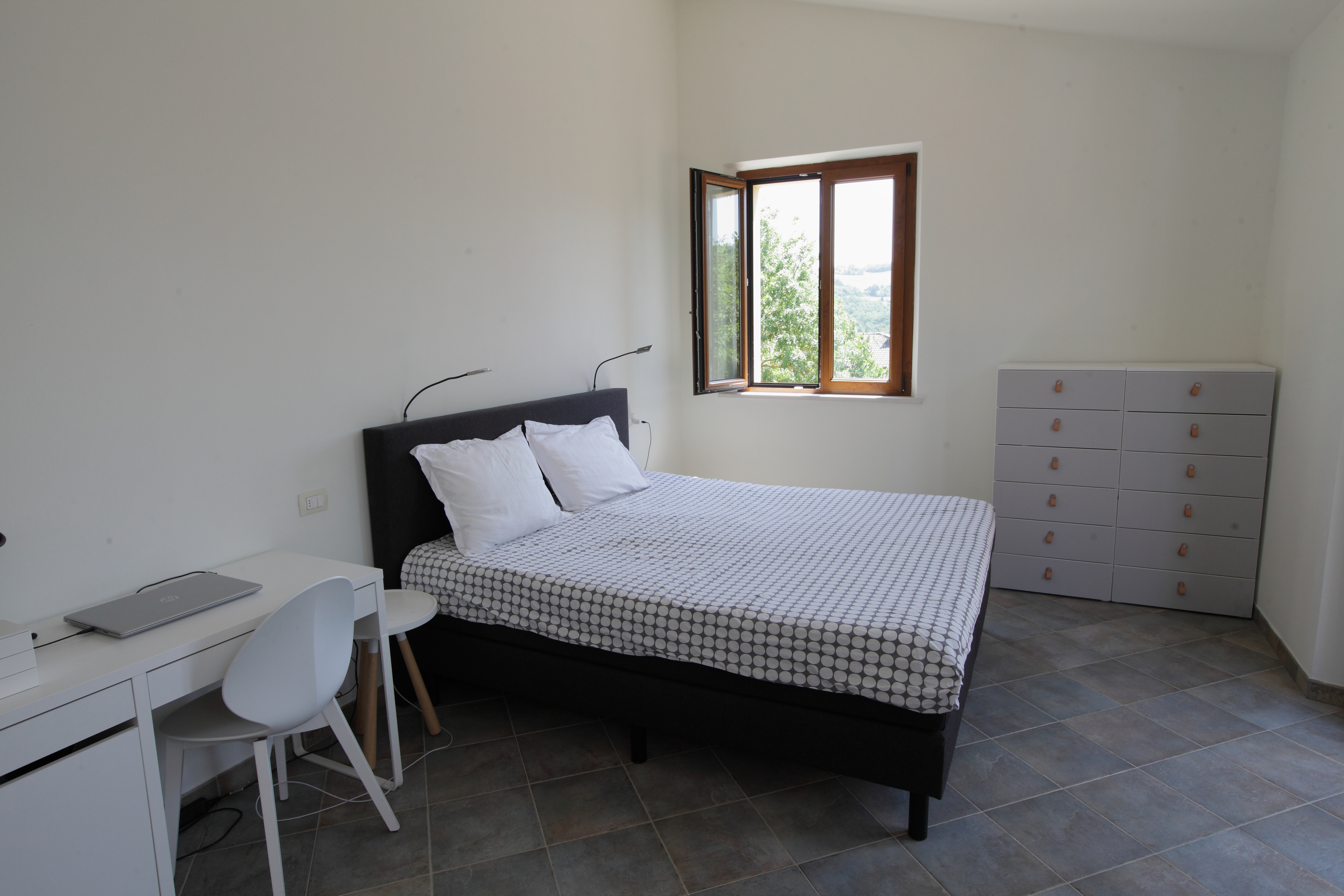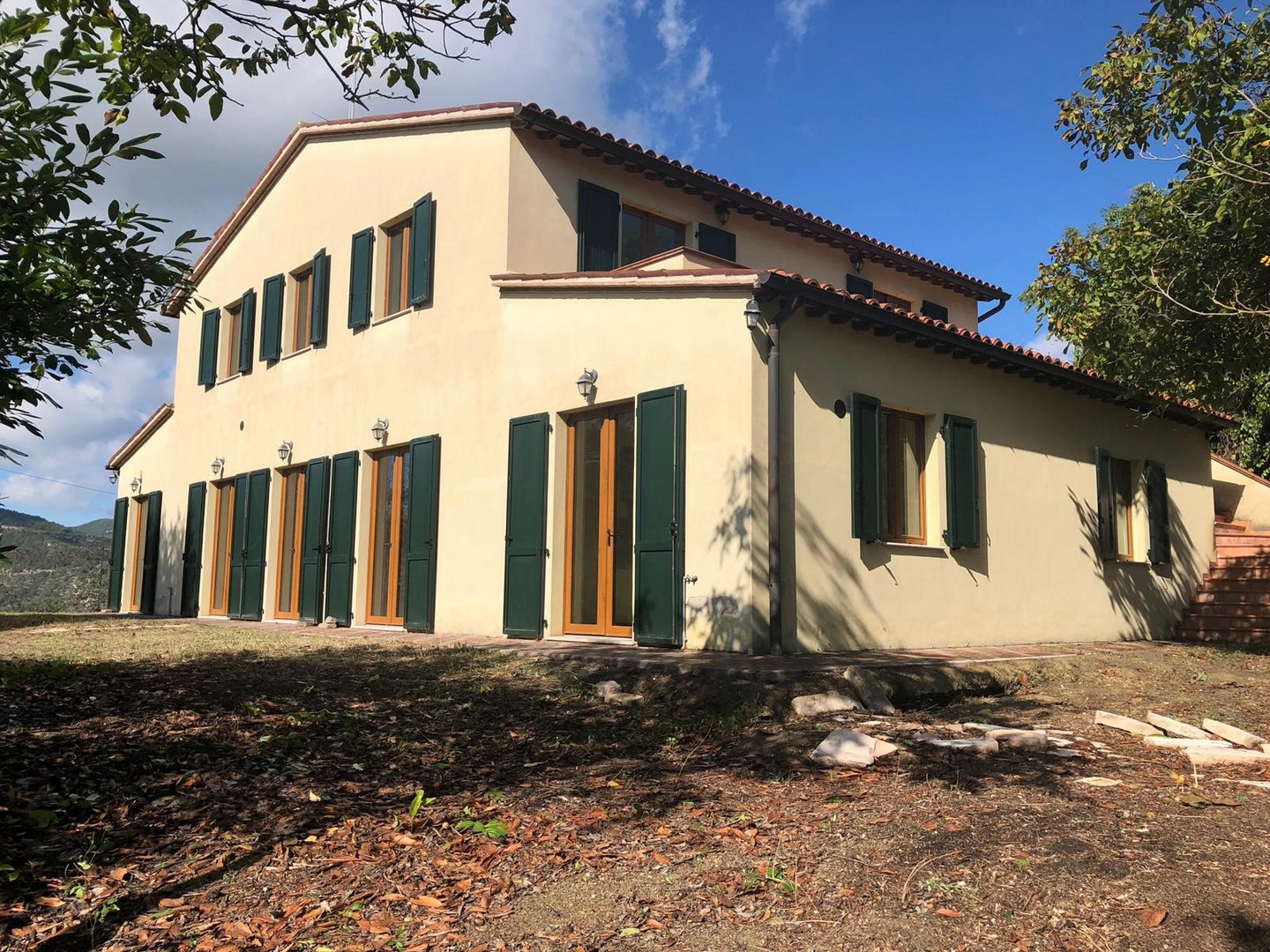 The house was completely renovated in 2004 with high-quality materials, including new PVC double-glazed windows, terracotta floors and an underfloor central heating system. The country house is surrounded by nature, with views of fields, hills and vineyards from the fully fenced garden. The location is easily accessible, the Adriatic Sea can be reached in just 45 minutes, and nearby are the beautiful historic Roman towns of Urbino, Cagli, Fossombrone and Acqualagna - the latter known for its truffles .