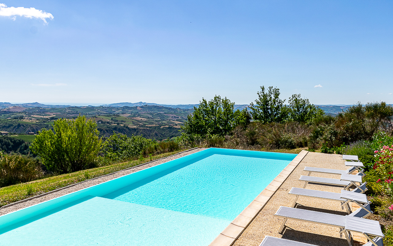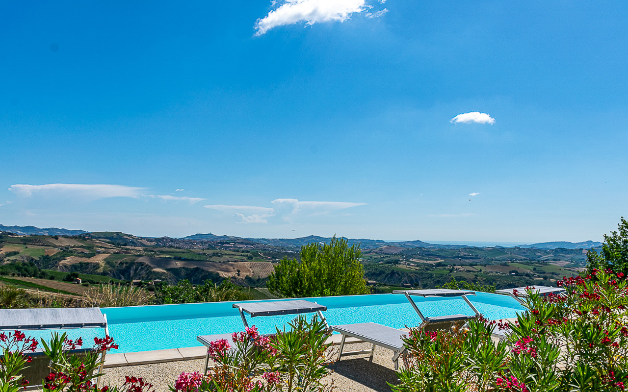 Set in a panoramic position between the Adriatic Sea and the rolling hills of southern Le Marche, Casa Mare e Collina is a spacious and comfortable apartment for sale located within an elegant villa with a stunning infinity swimming pool in Appignano del Tronto. The property enjoys beautiful open views, allowing you to admire the sunrise over the sea in the morning and the sunset behind the Apennine mountains in the evening, creating a truly special and relaxing setting.