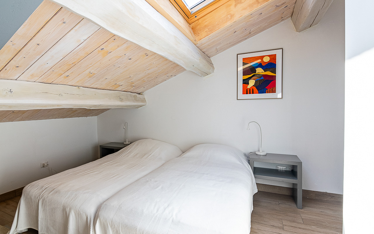 The bedrooms and loft are equipped with air conditioning, while the entire apartment benefits from central heating, ensuring comfort throughout the year.