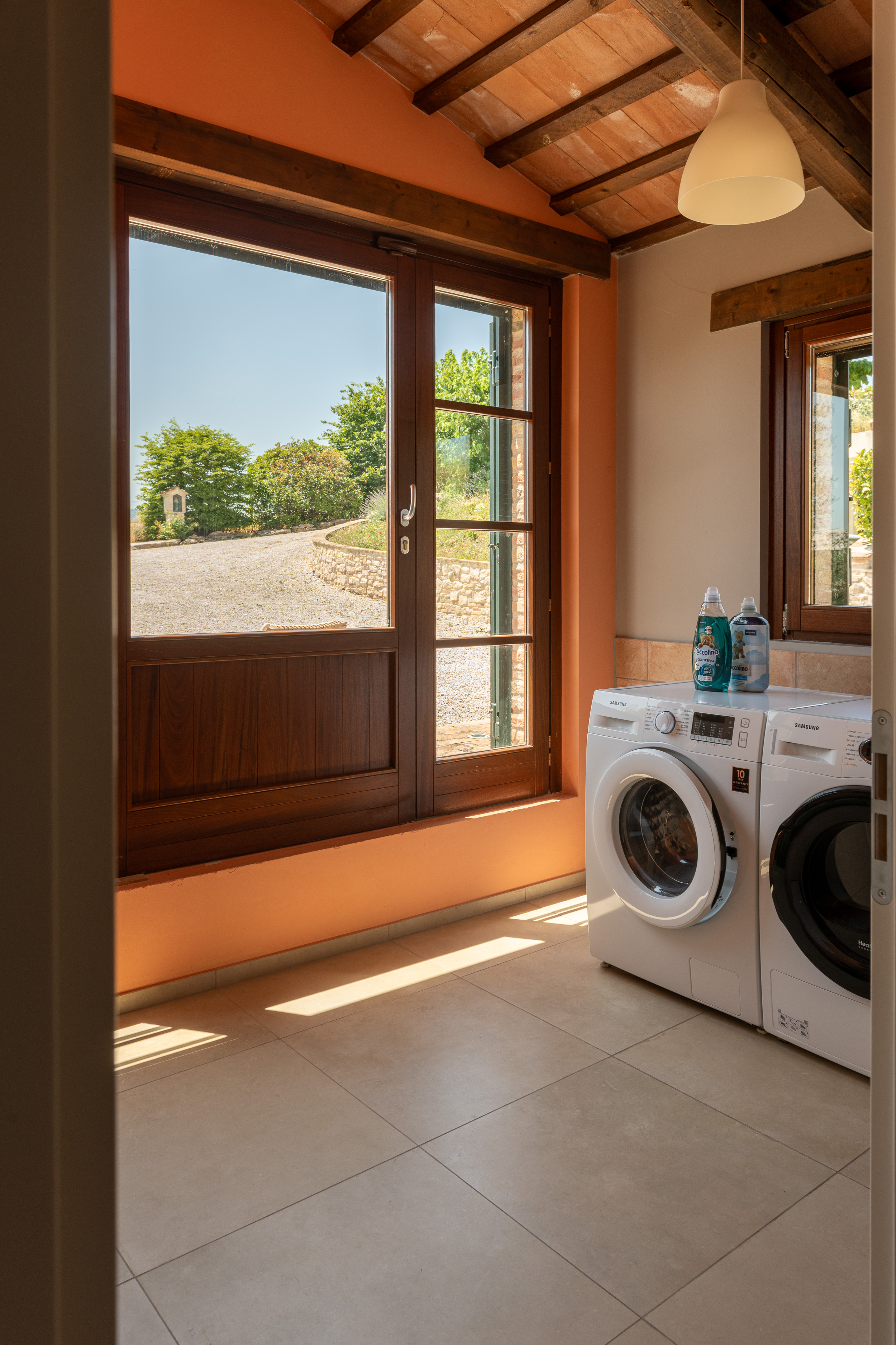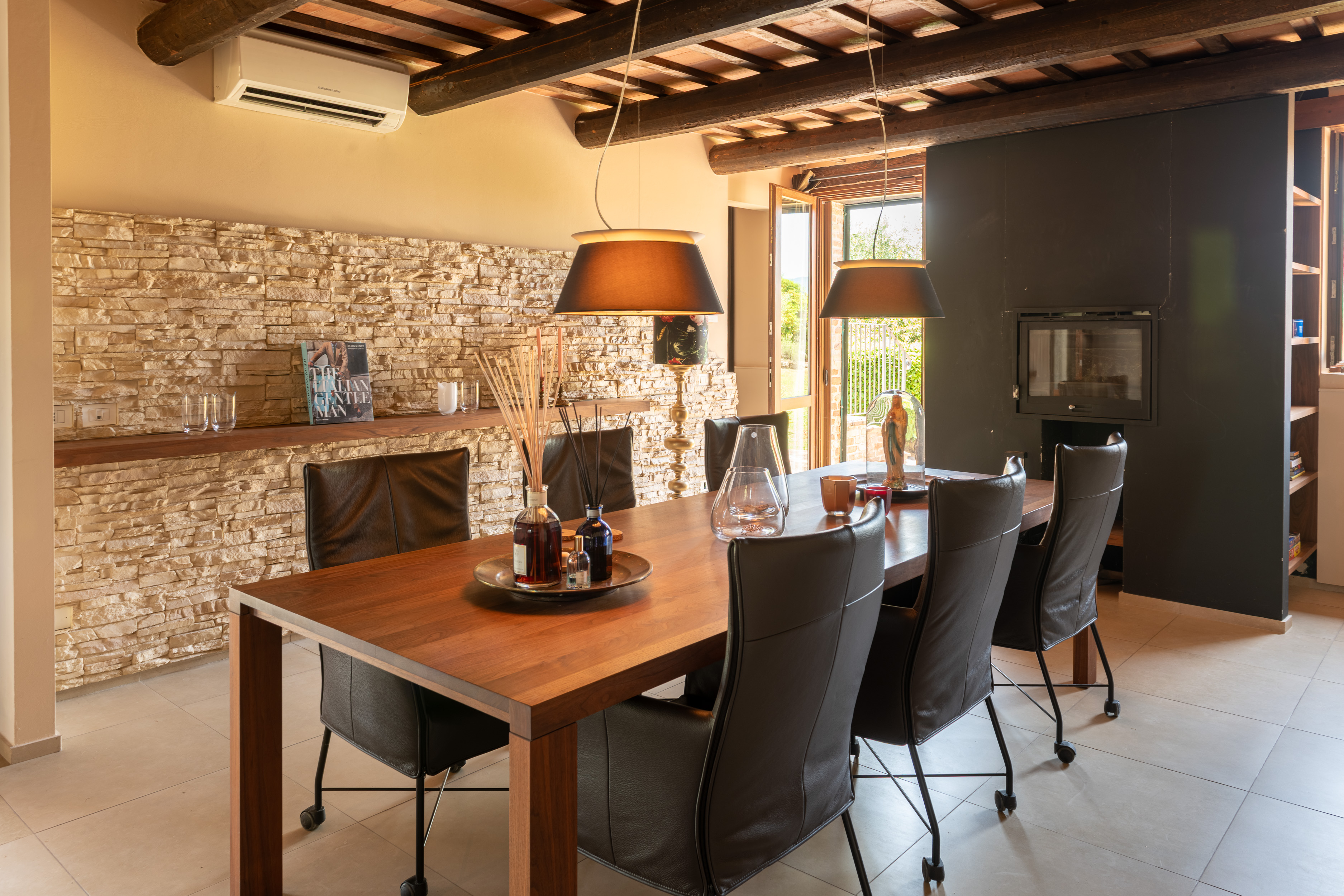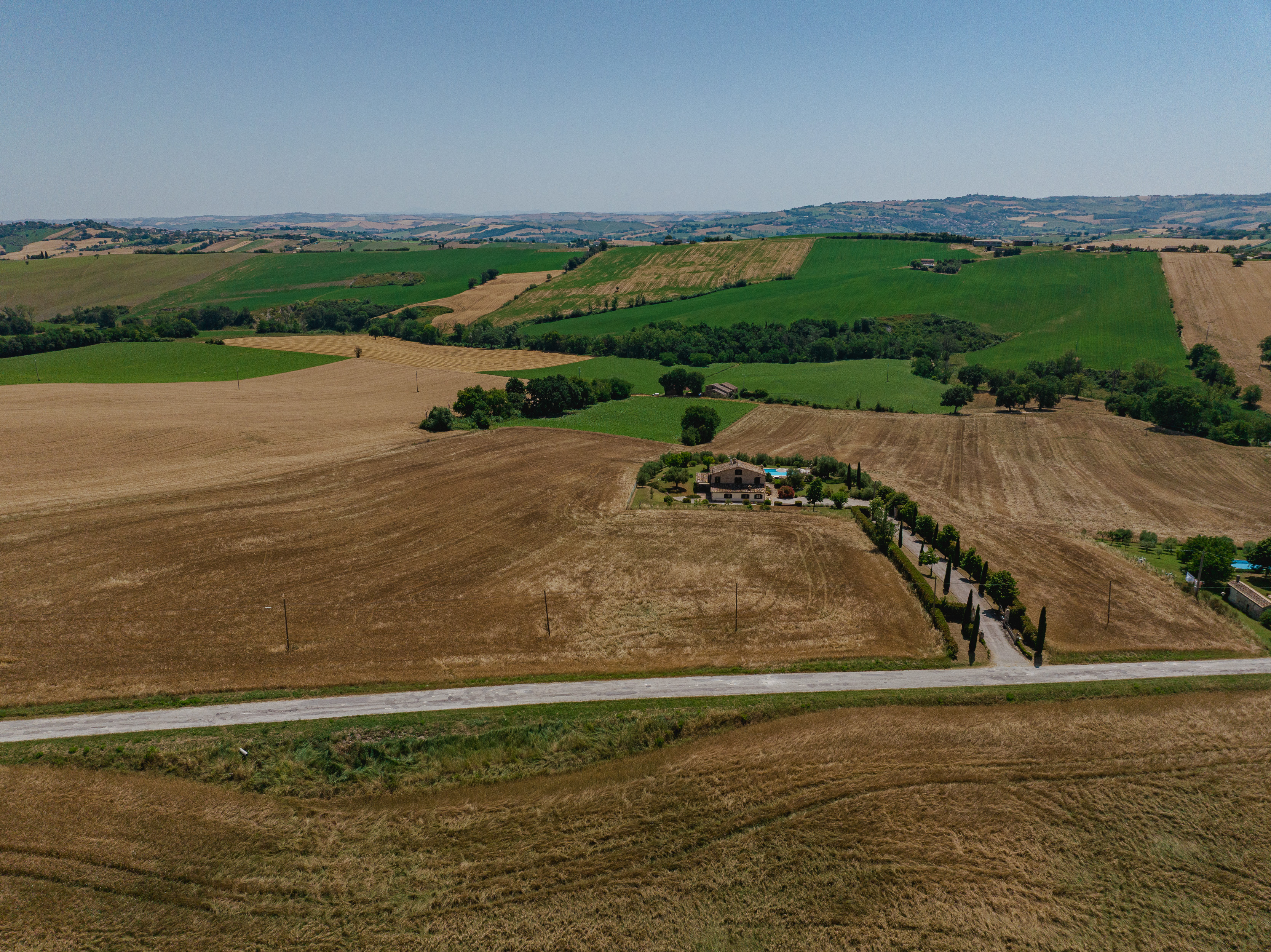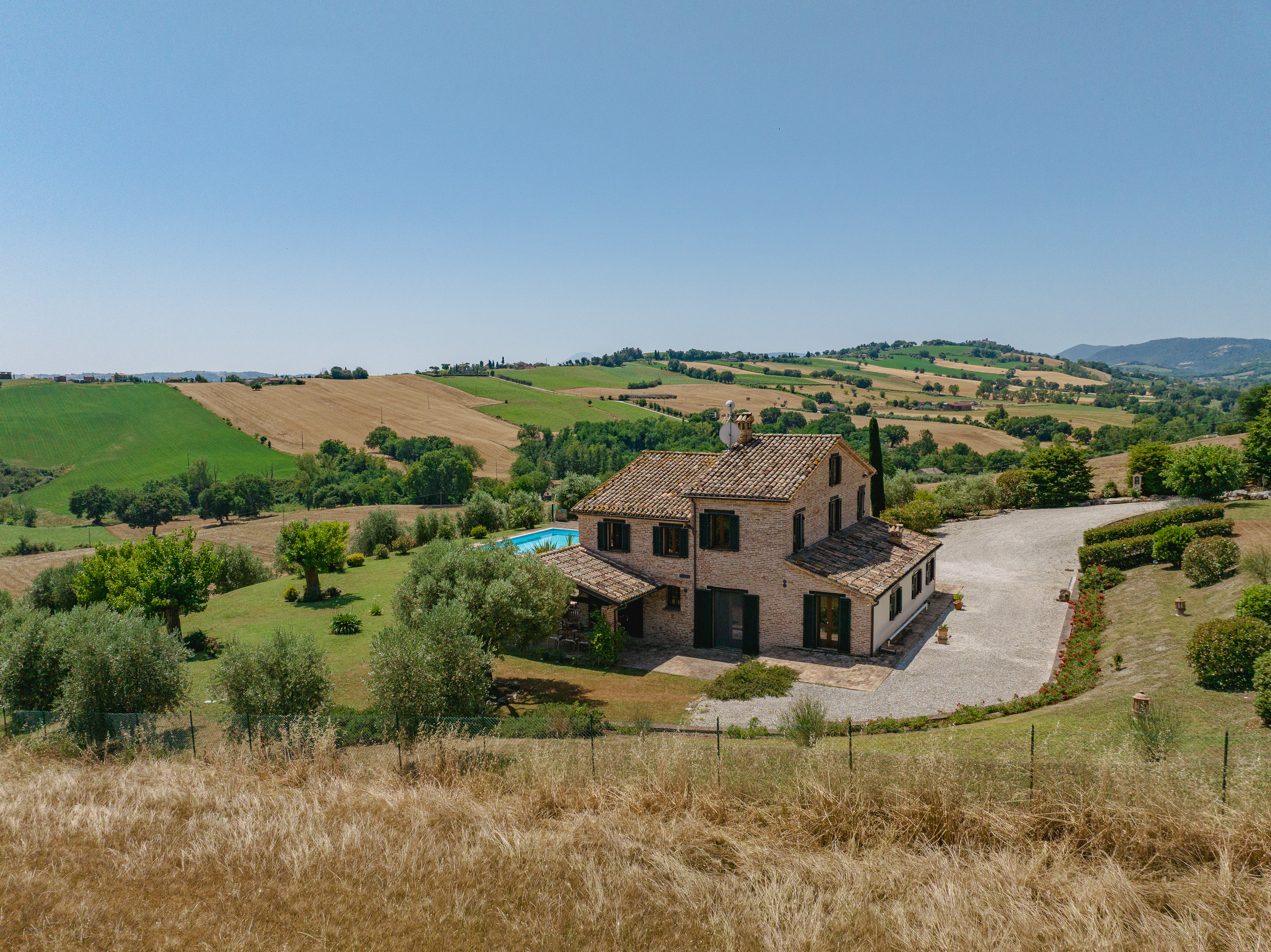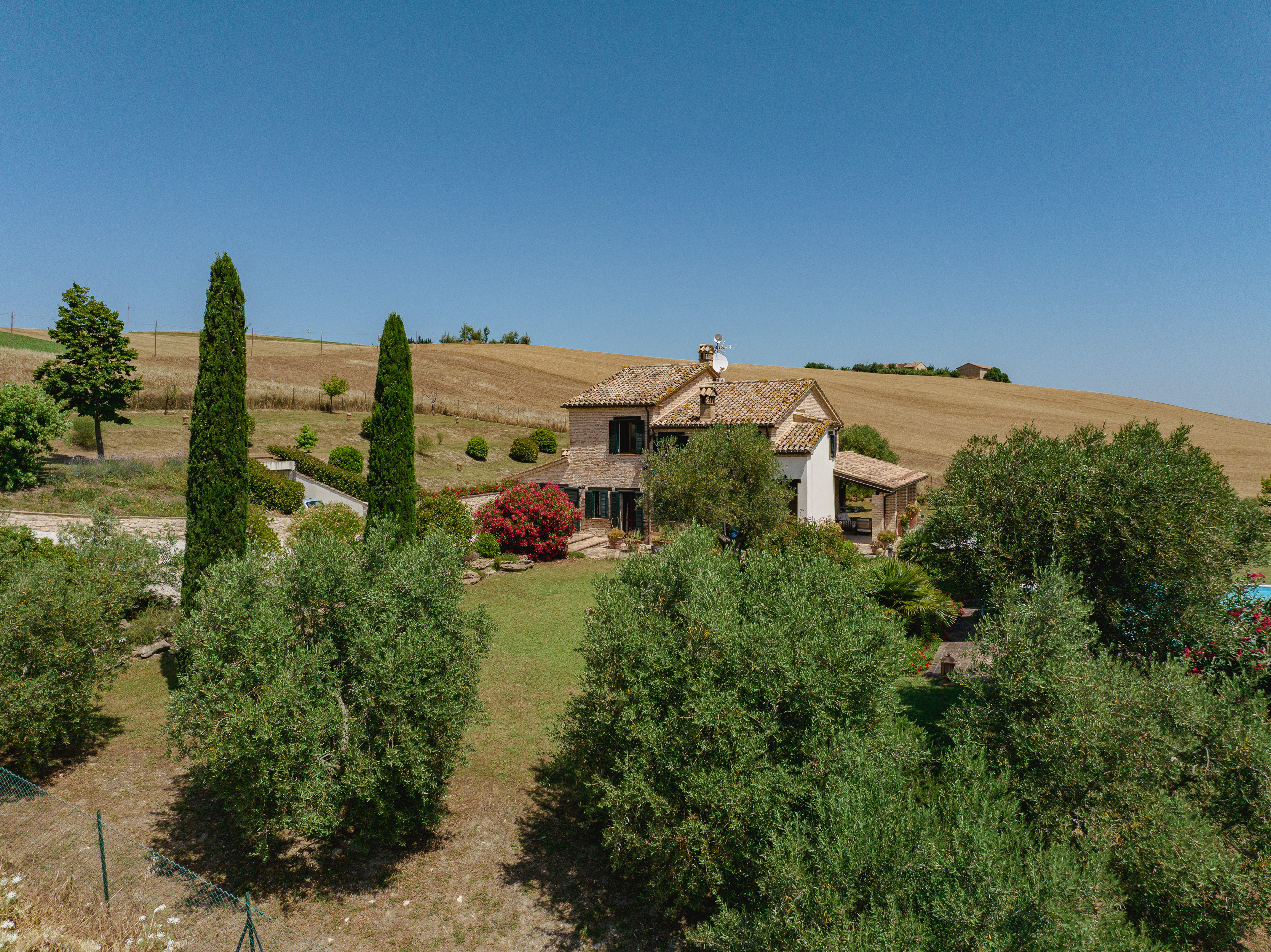 The villa, with a surface area of approximately 320 m², has been furnished and renovated under architecture using high-quality materials, with comfort and luxury being central. The interior is characterized by a modern nod to and with respect for the Marchegian architectural style. There are 2 living rooms, 5 bedrooms and 3 bathrooms. Heating is centrally regulated on gas, there is air conditioning on all floors, the house is connected to the electricity network and the water supply.