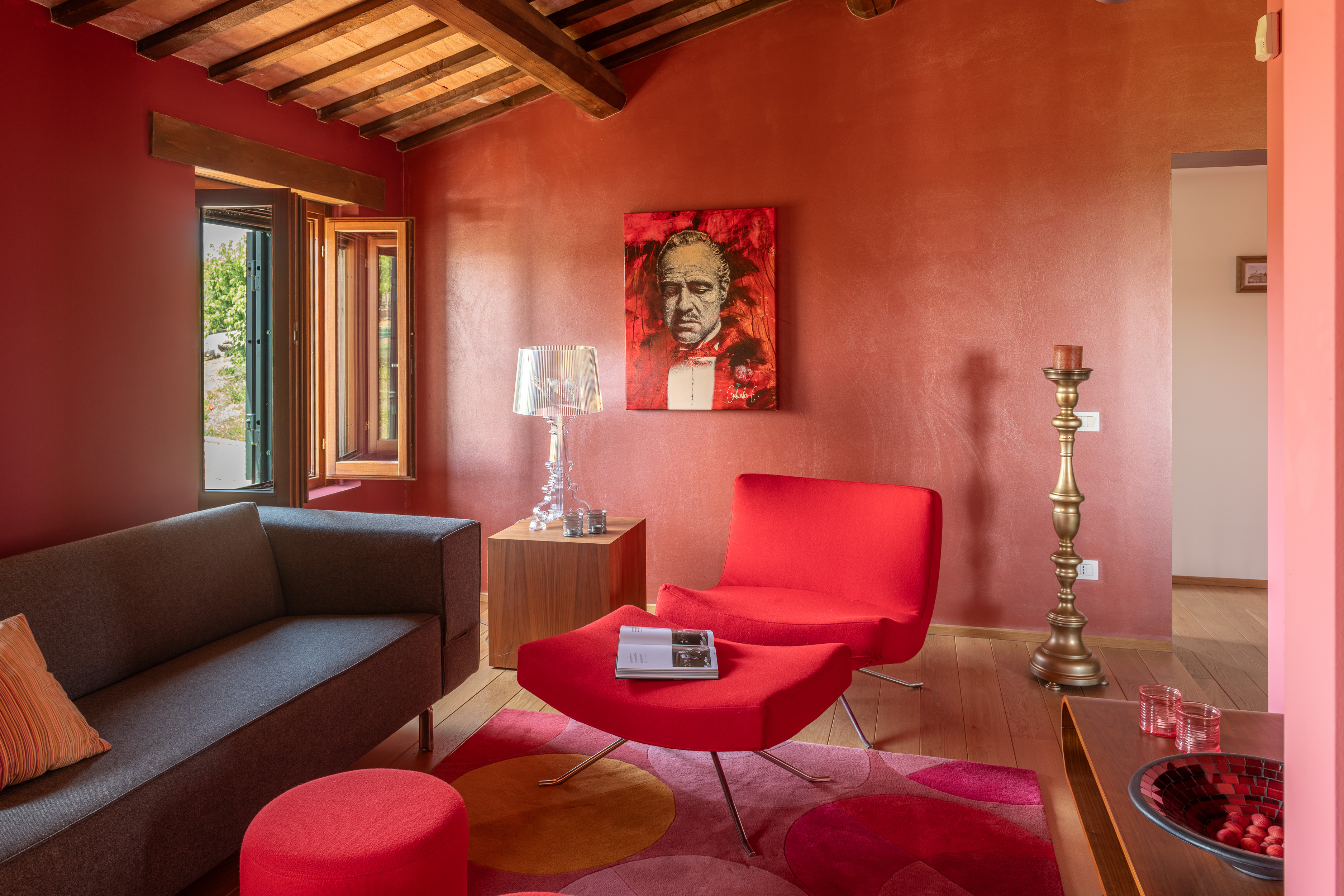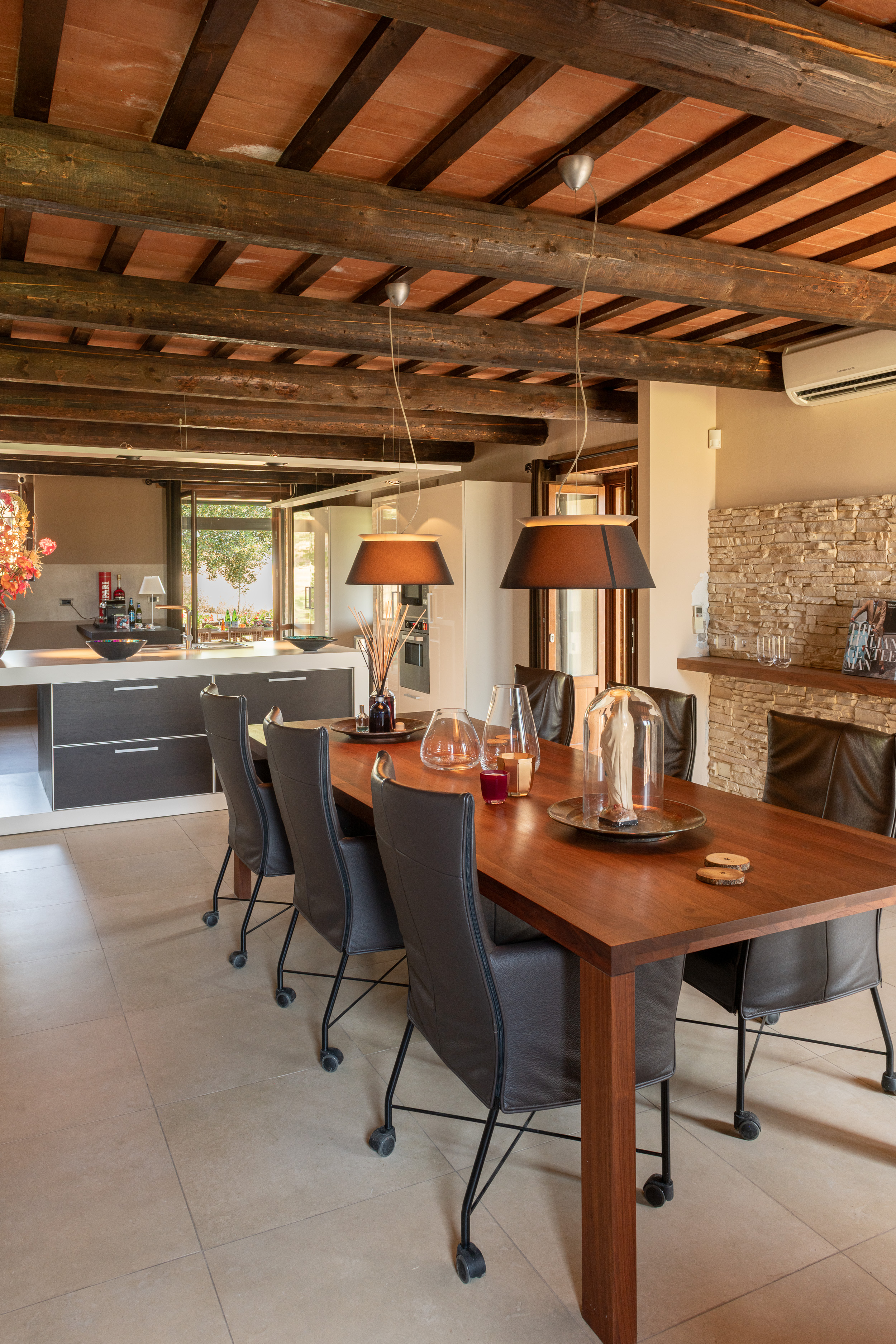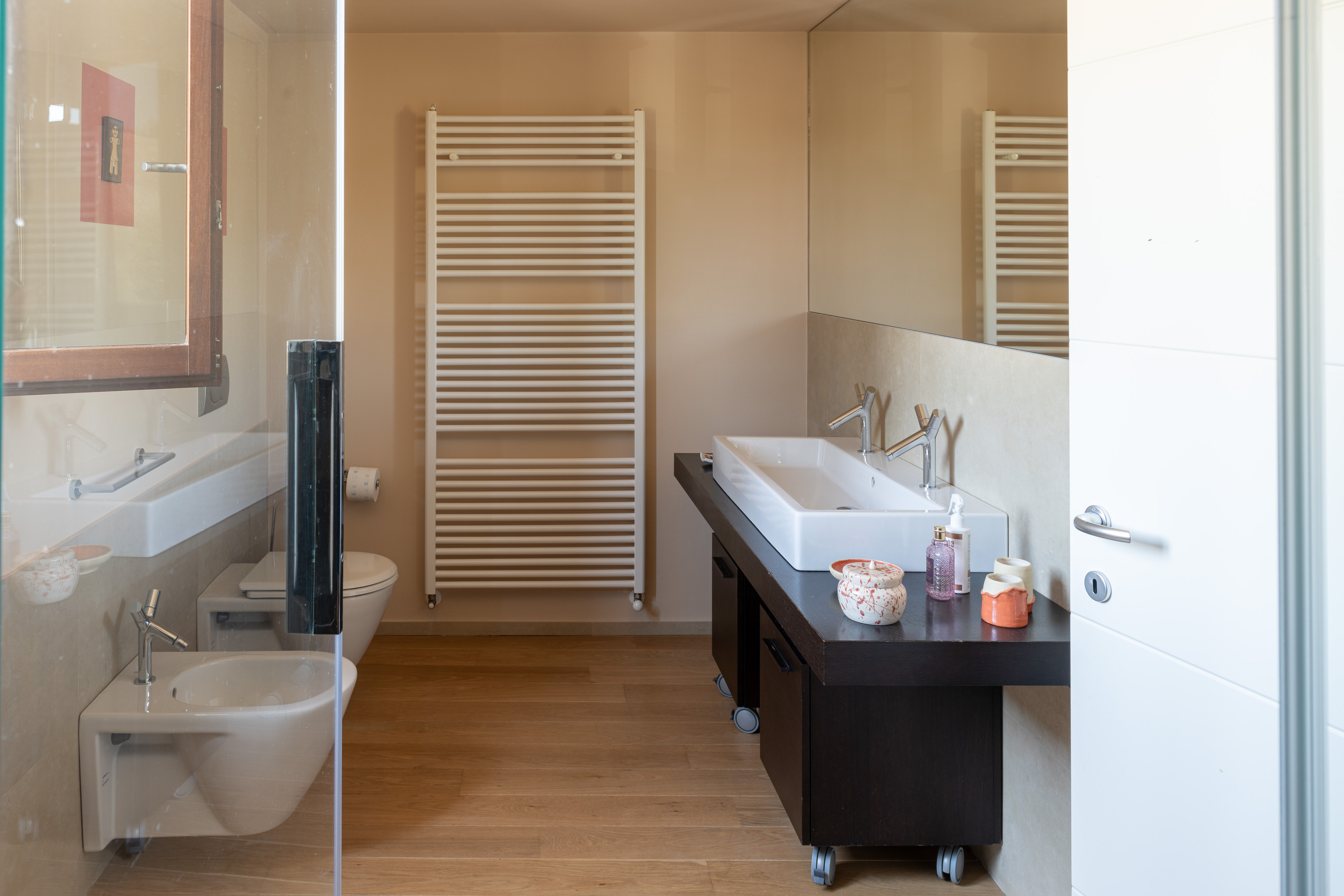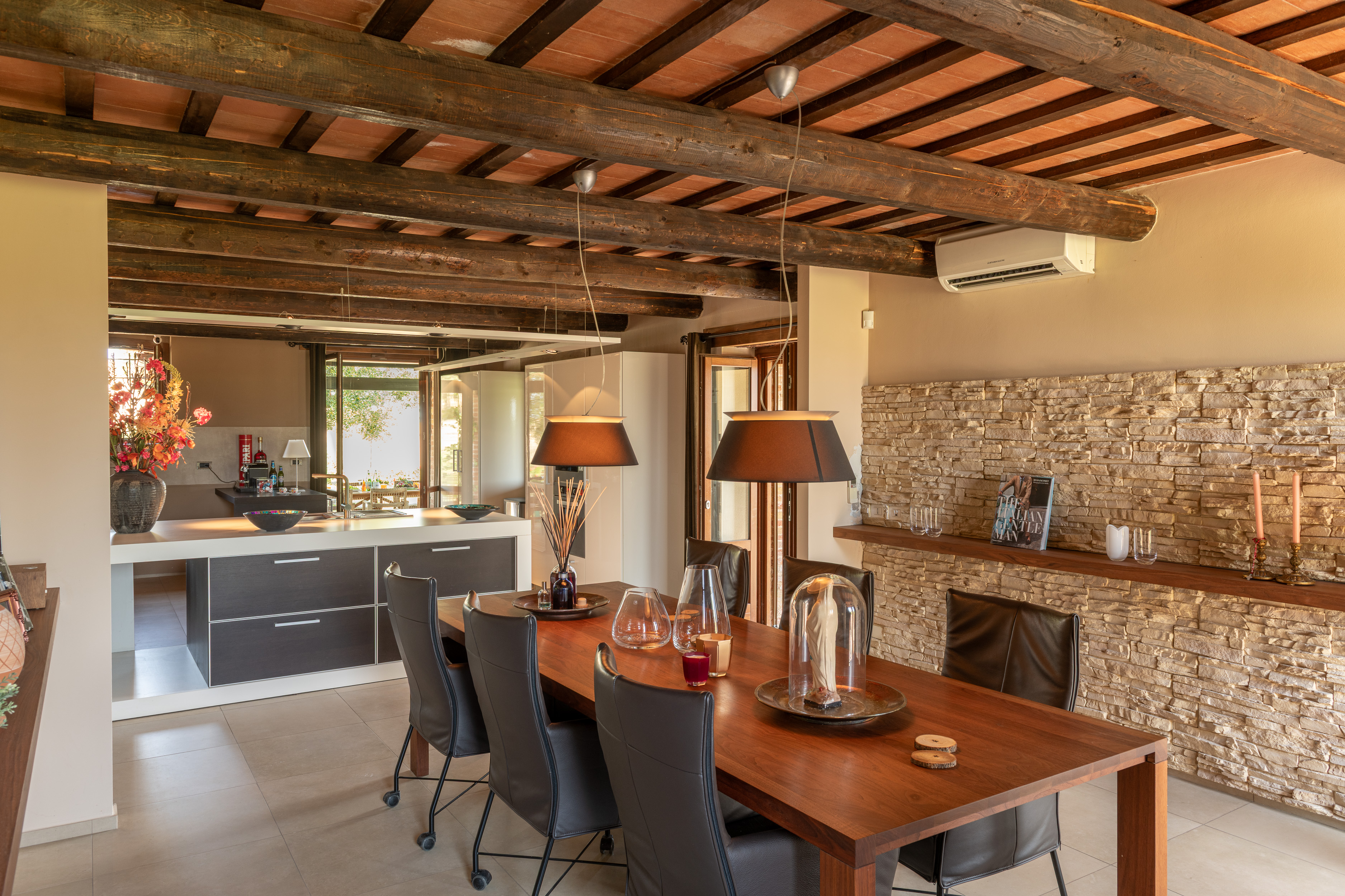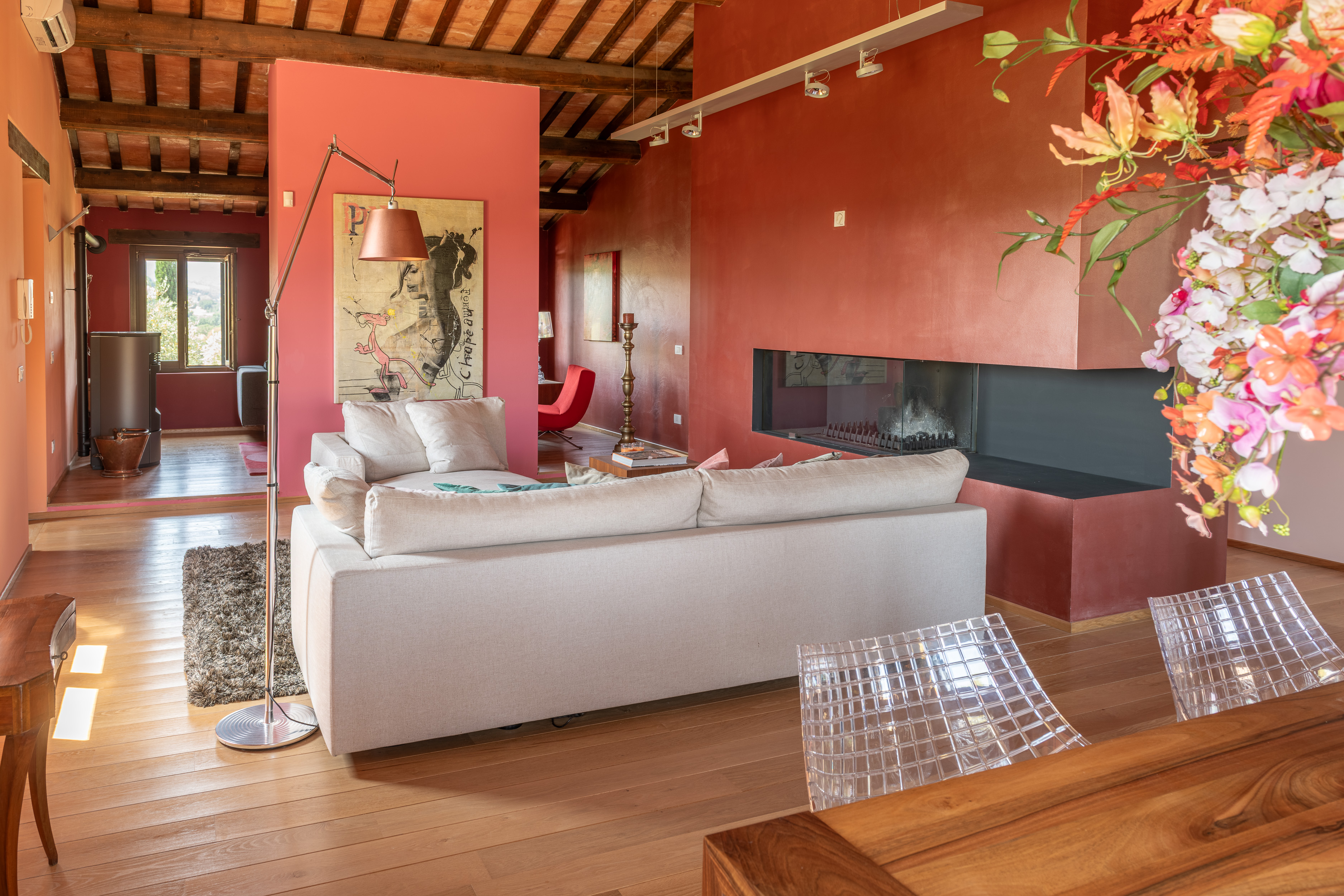 The villa, with a surface area of approximately 320 m², has been furnished and renovated under architecture using high-quality materials, with comfort and luxury being central. The interior is characterized by a modern nod to and with respect for the Marchegian architectural style. There are 2 living rooms, 5 bedrooms and 3 bathrooms. Heating is centrally regulated on gas, there is air conditioning on all floors, the house is connected to the electricity network and the water supply.