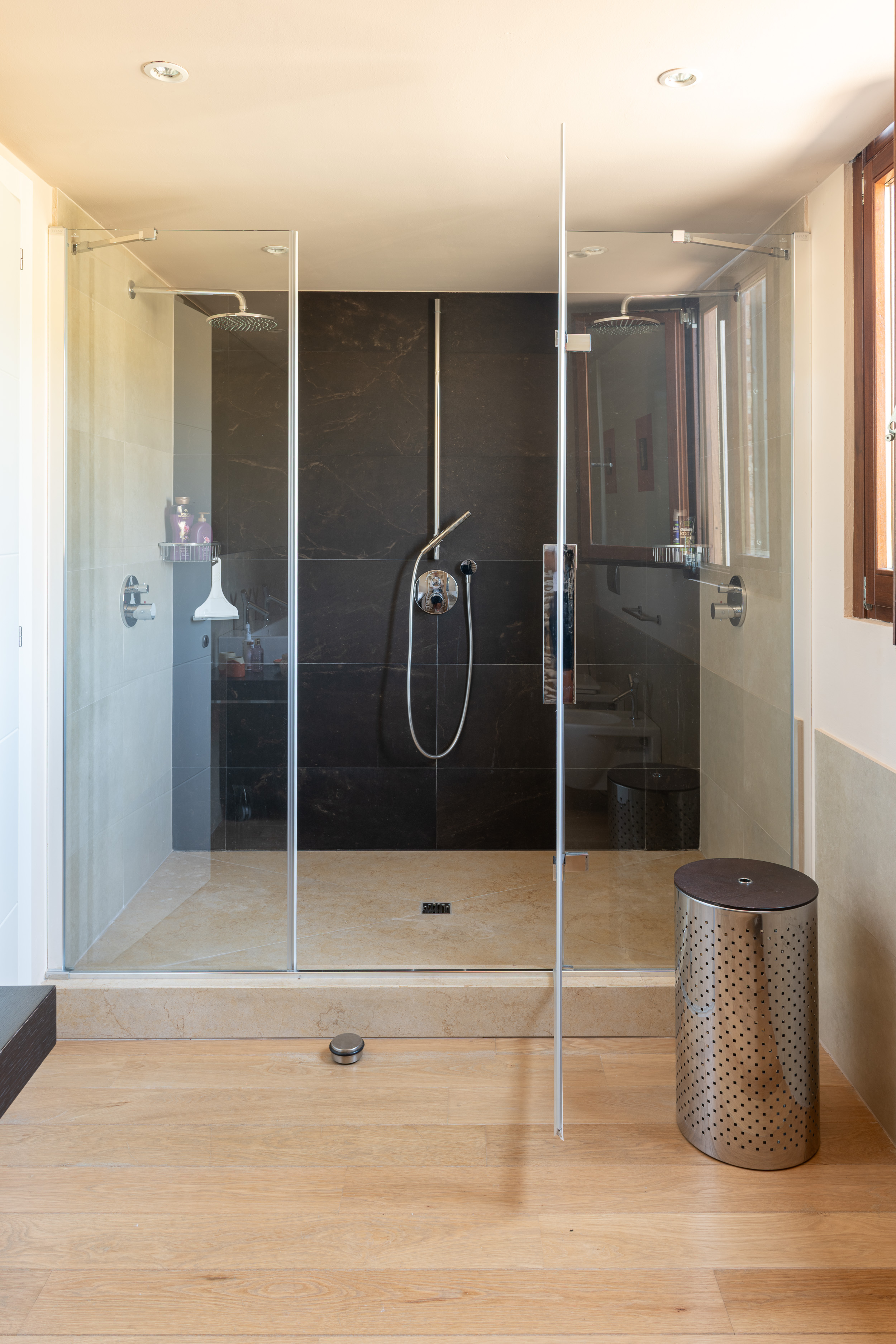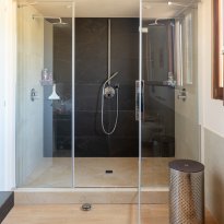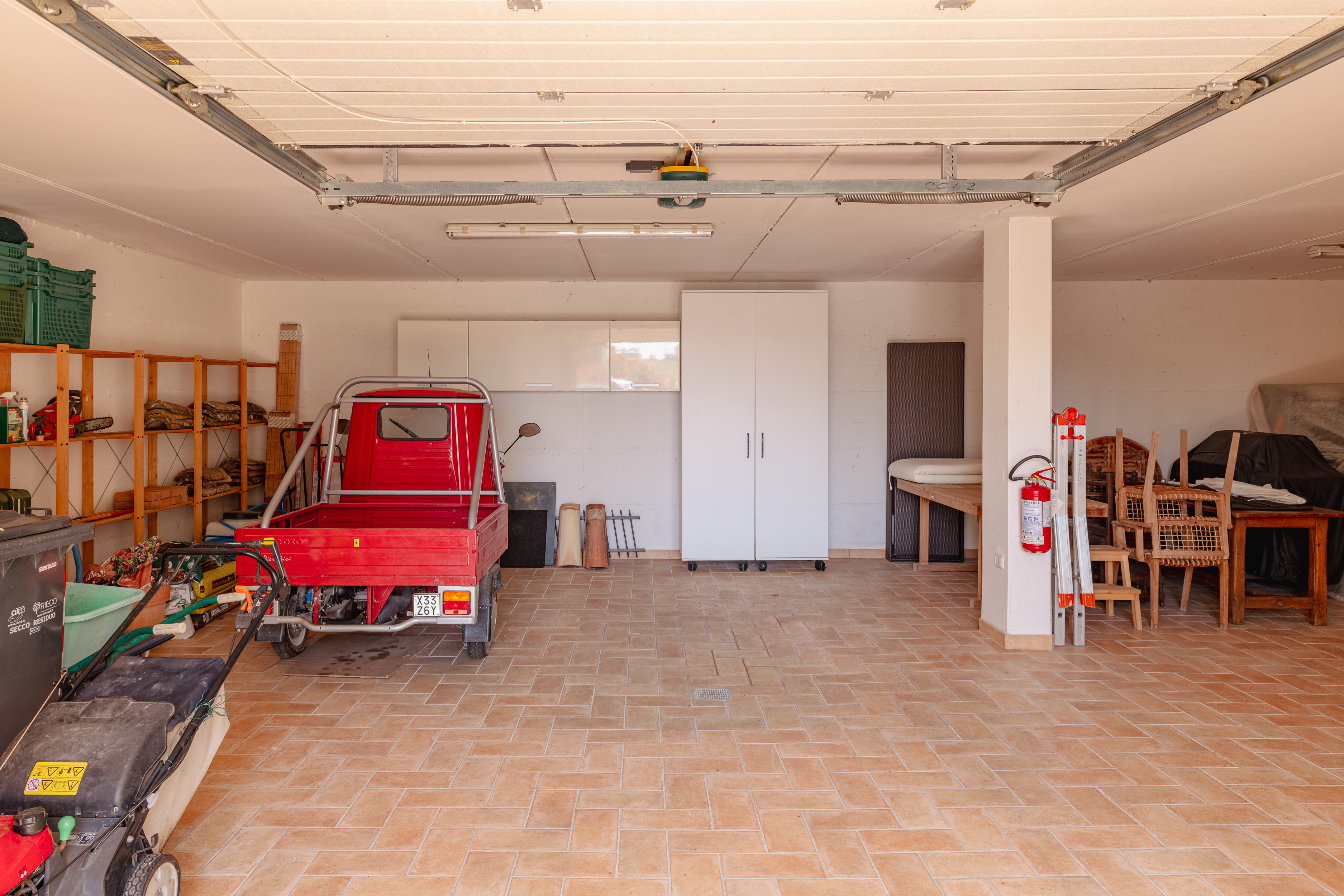 The entire house is equipped with custom-made furniture, paintings and designer lighting. The property is move-in ready, furnished and upholstered. The panoramic swimming pool with outdoor shower is located a few meters from the house and has a very spacious surrounding terrace. At the side of the house is an indoor garage (96 m²), situated in the hill.