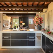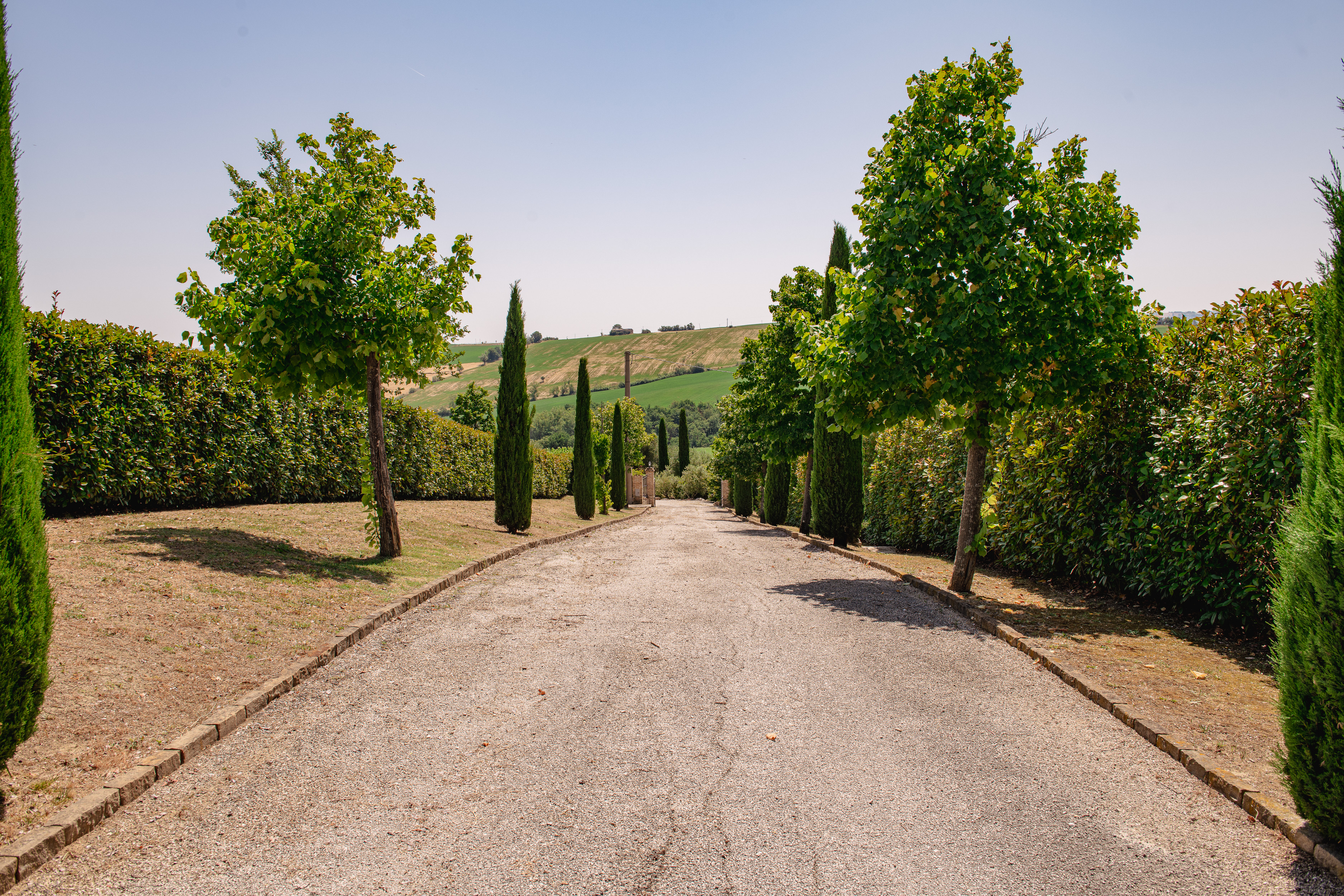 The garden (approximately 5000 m²) laid out by a landscape architect consists of several terraces and a well. The garden has a varied traditional Italian planting. Fruit trees, ornamental shrubs, flowers, a terrace of succulents and a private olive grove of young and approximately 100-year-old olive trees.