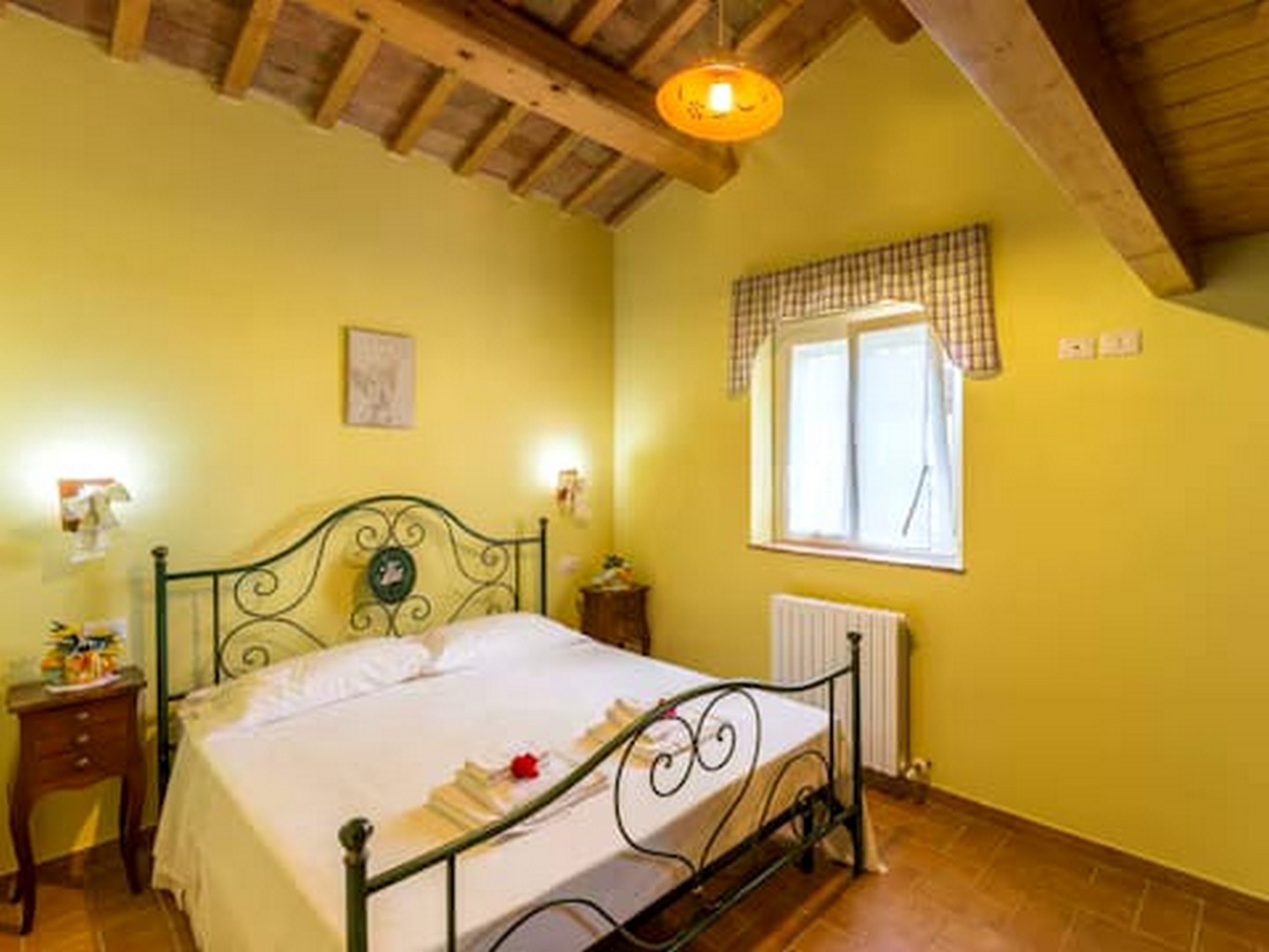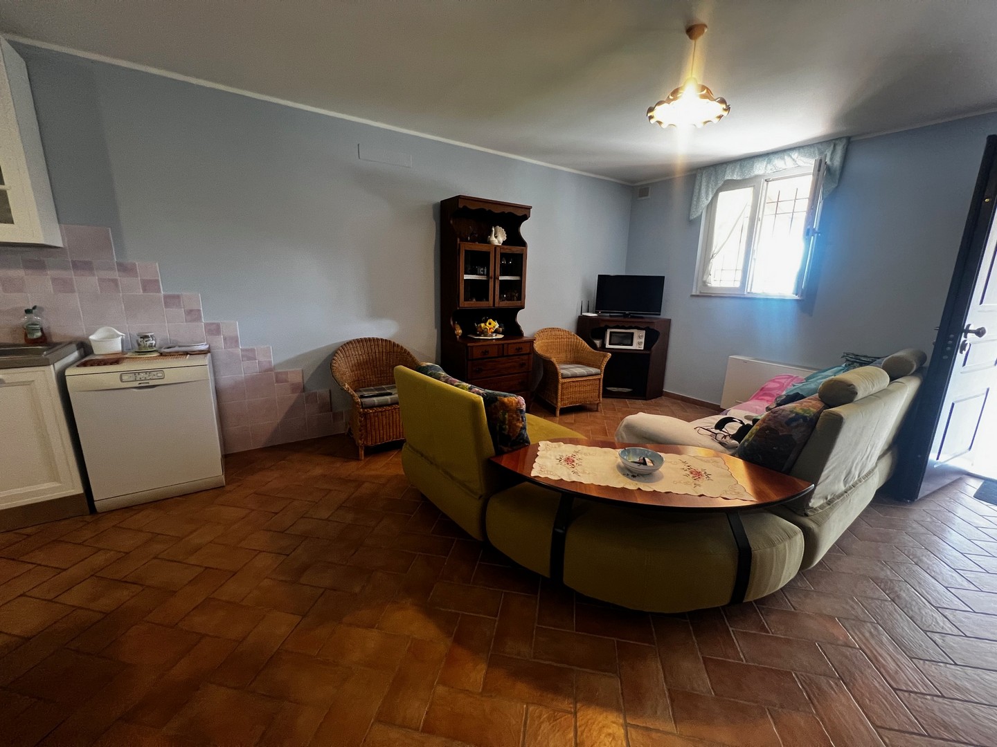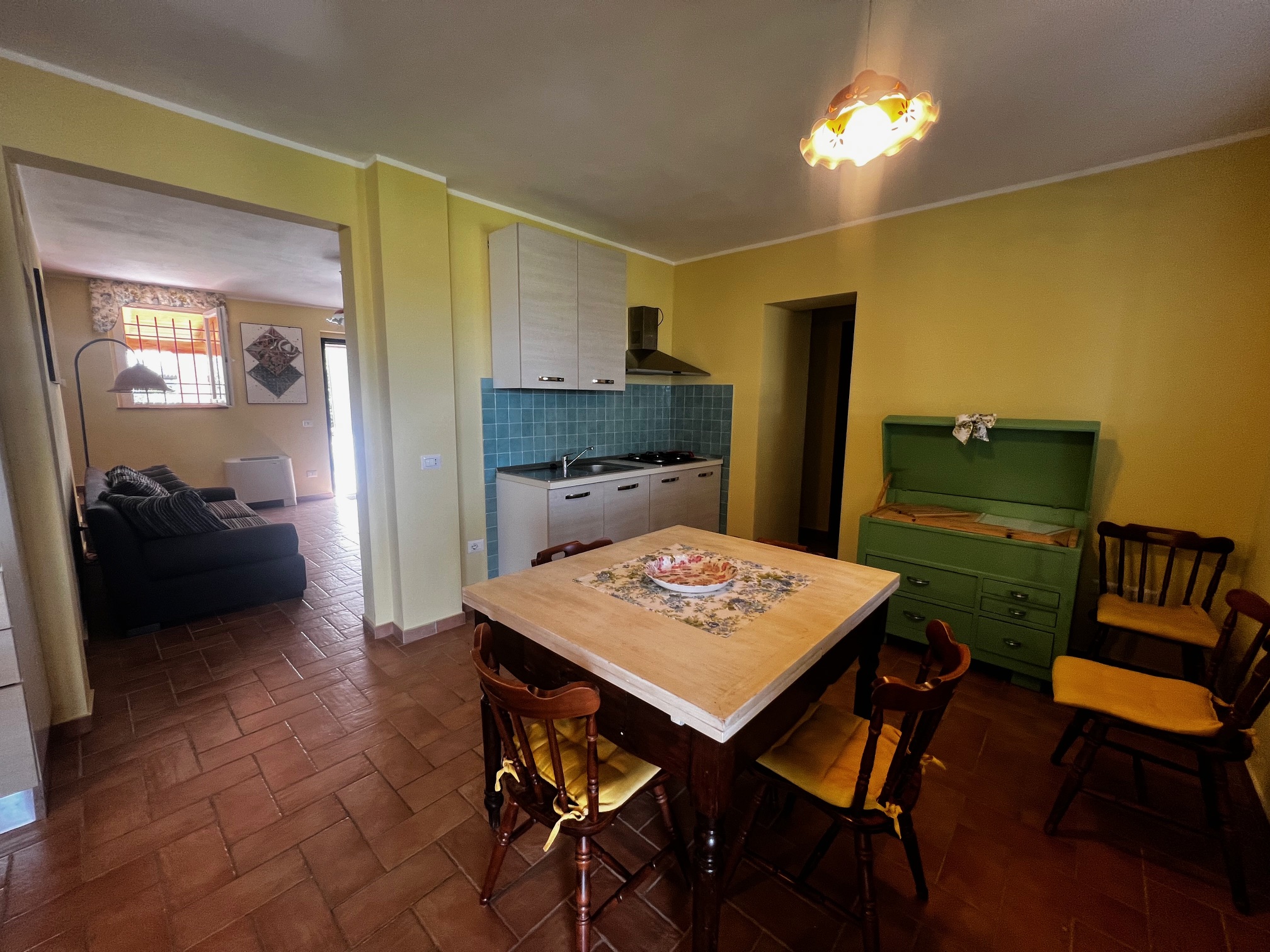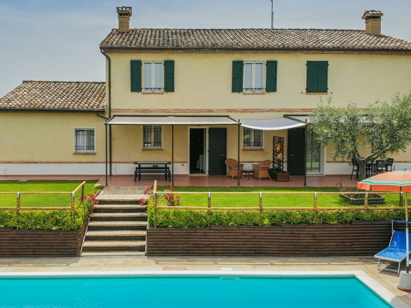 This beautiful country house is located in beautiful Barchi, in the heart of Le Marche, with views as far as the sunset and the Apennines. The surrounding rolling hills, covered with fields of wheat and sunflowers, offer unique and unforgettable moments. From the house you can quickly reach the Adriatic coast with its many beaches and historic villages such as Mondavio, as well as important cities such as Urbino and Pesaro. The house has a beautiful 12 x 6 m swimming pool with umbrellas and sun loungers, a barbecue area, a covered parking space and an outbuilding, currently used as a fourth flat, but officially this space is registered as a barn/store.