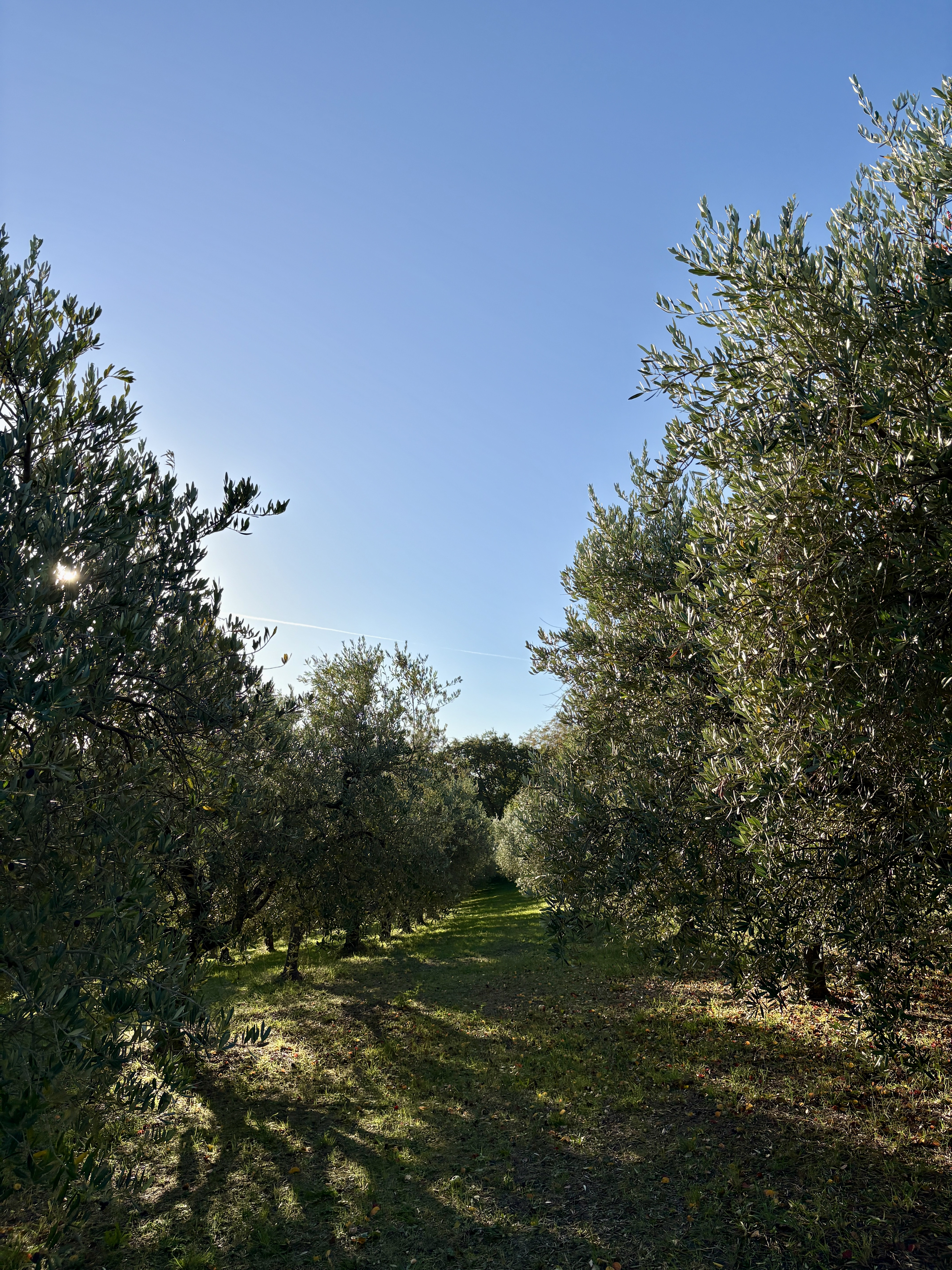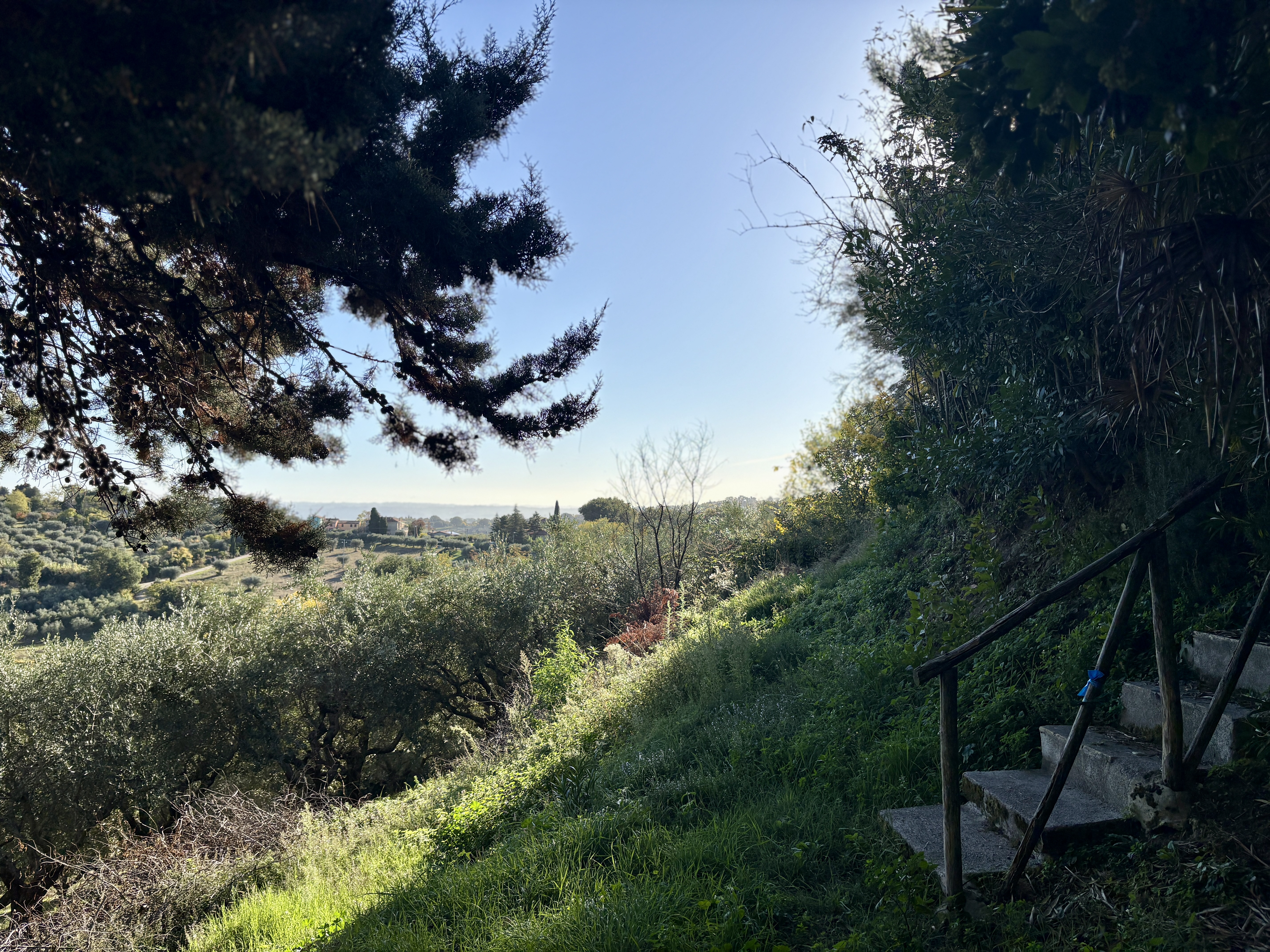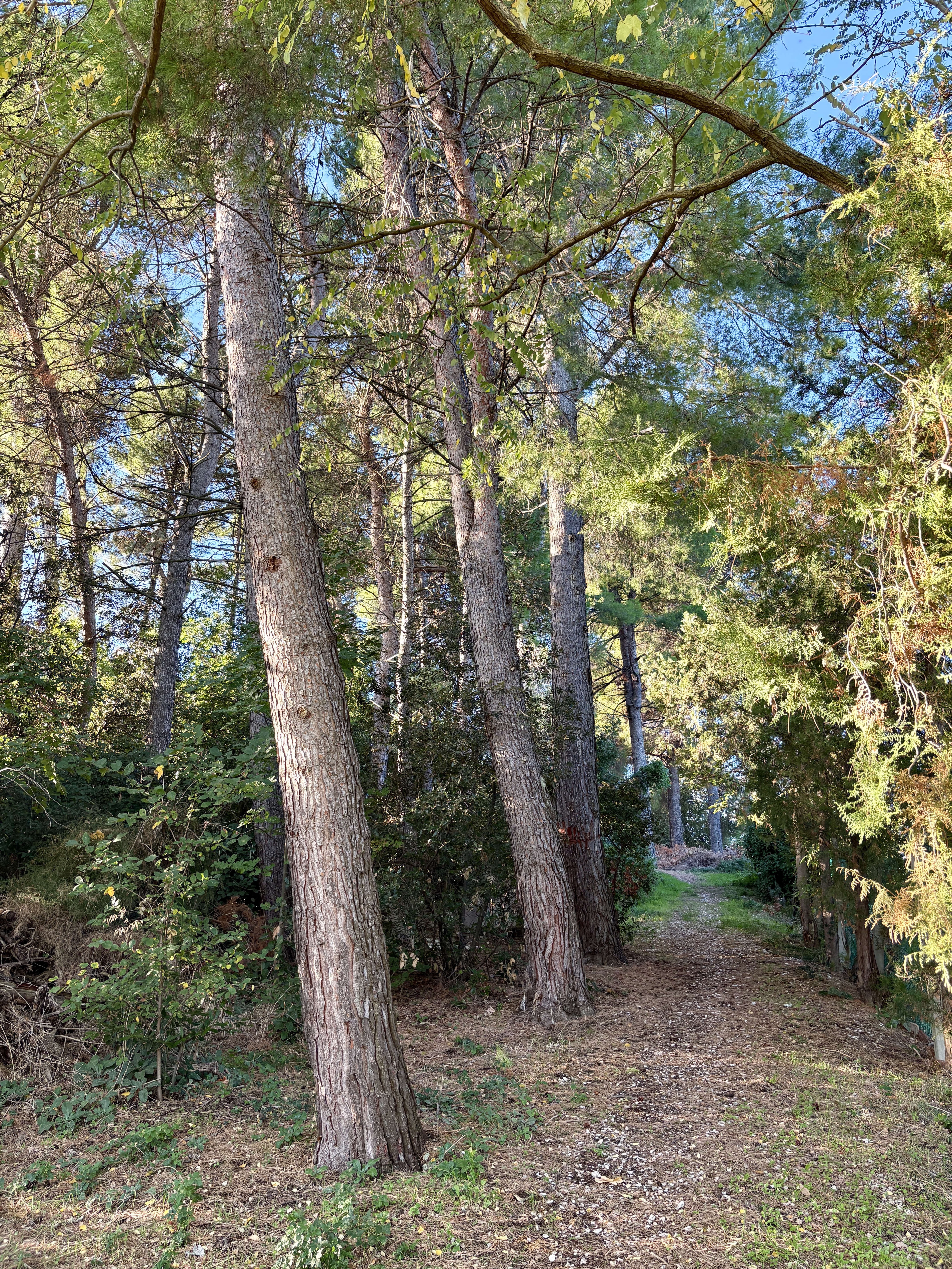 A fine and spacious terrace has recently been created on 2 sides of the house, from the fairly flat garden surrounding the house there is a view of the sea on clear days. The orchard with several fruit and pine trees and 70 mature olive trees lies a little lower. The land with an area of 5,561 m² is fully fenced, and although the house is not secluded, the plot offers maximum privacy. The property is easily accessible via a very quiet tarmac road, access to the house via 2 entrance gates.