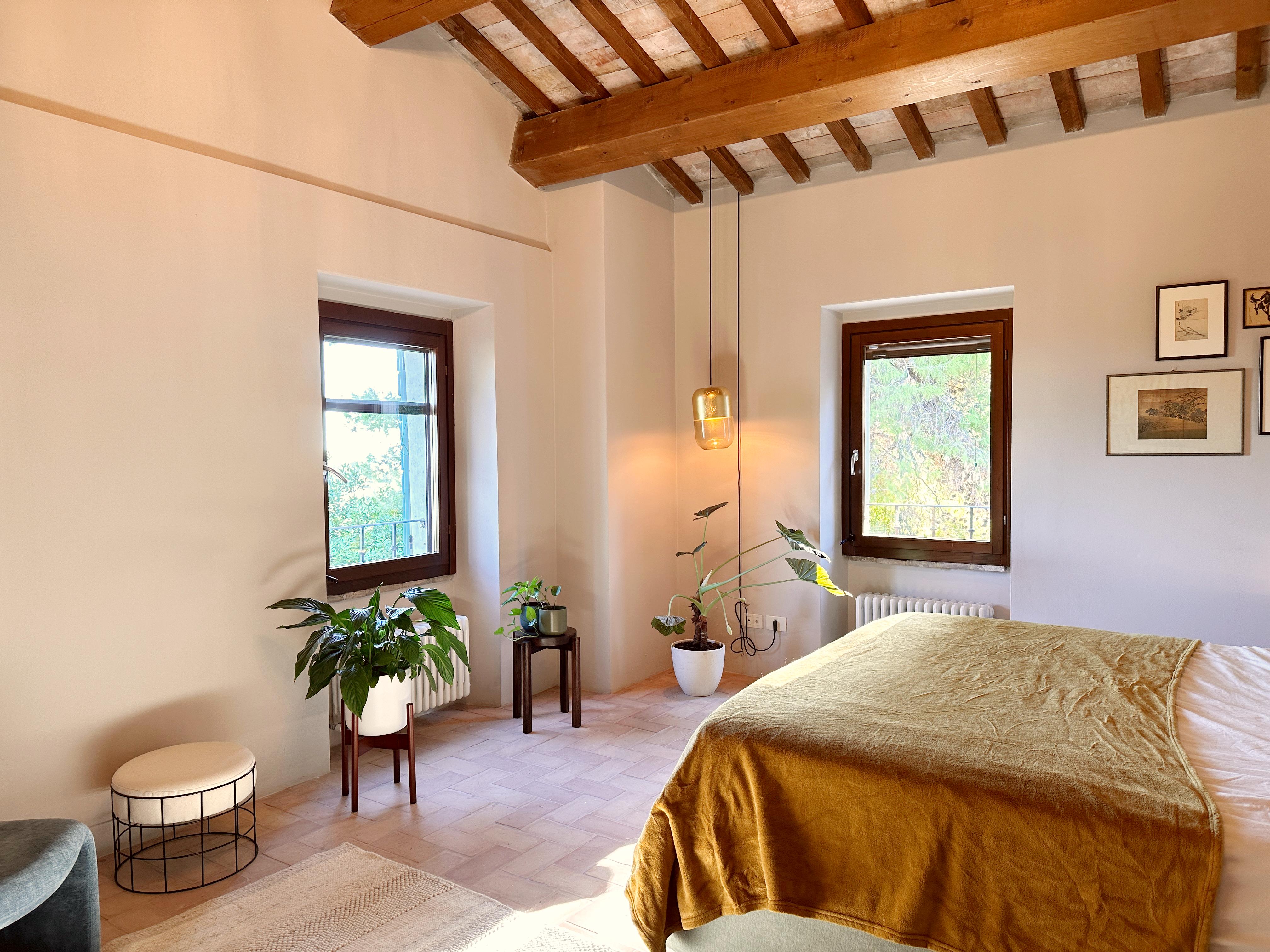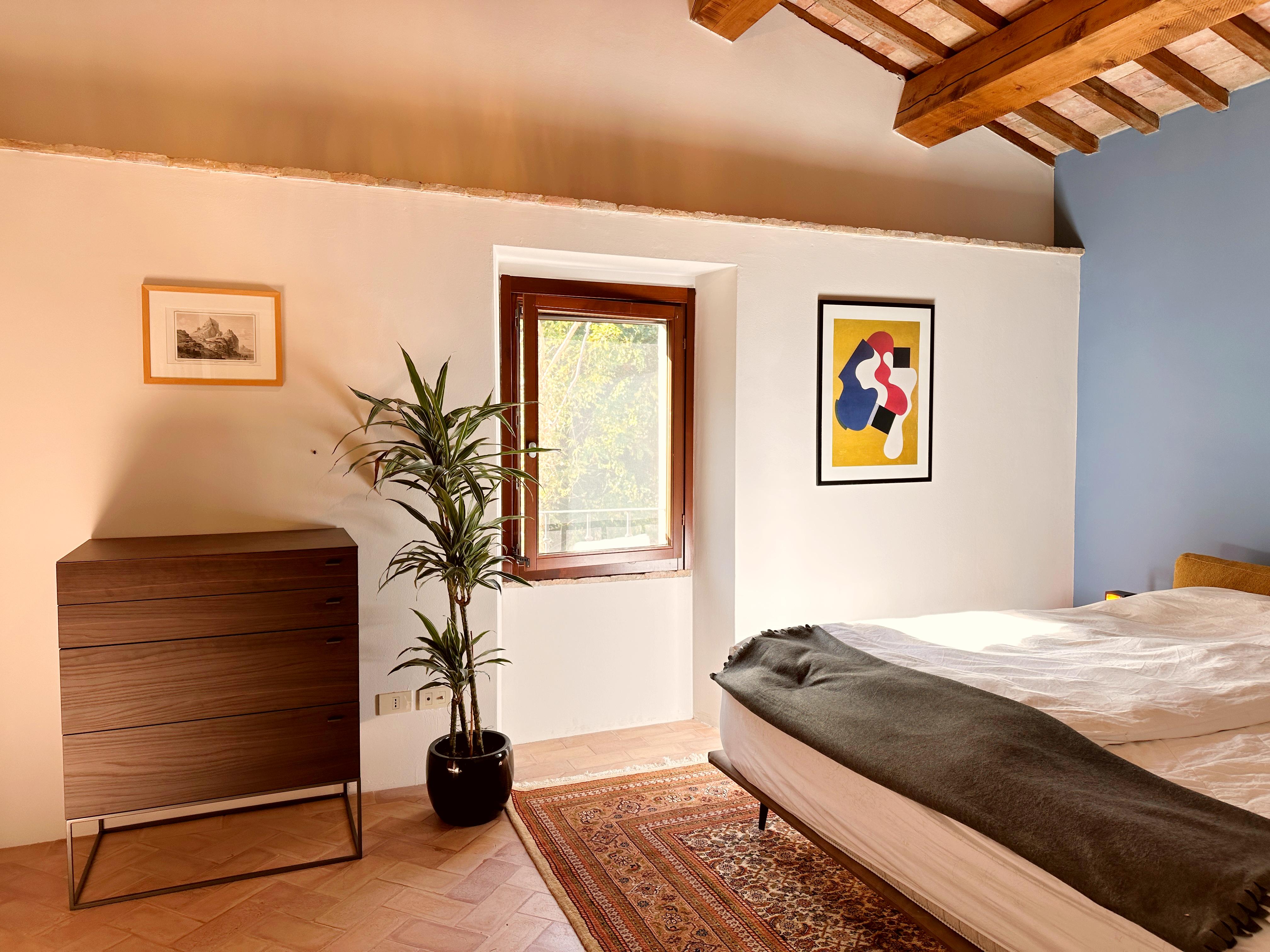 This beautiful stone country house with breathtaking views is set in the middle of the picturesque hilly countryside Le Marche is known for. It was fully restored in 2009, further modernised in 2024, and is just 3 km from the idyllic village of Cartoceto, 17 km from the lively coastal town of Fano and 8 km from the superstrada - an ideal base from which to explore this enchanting region