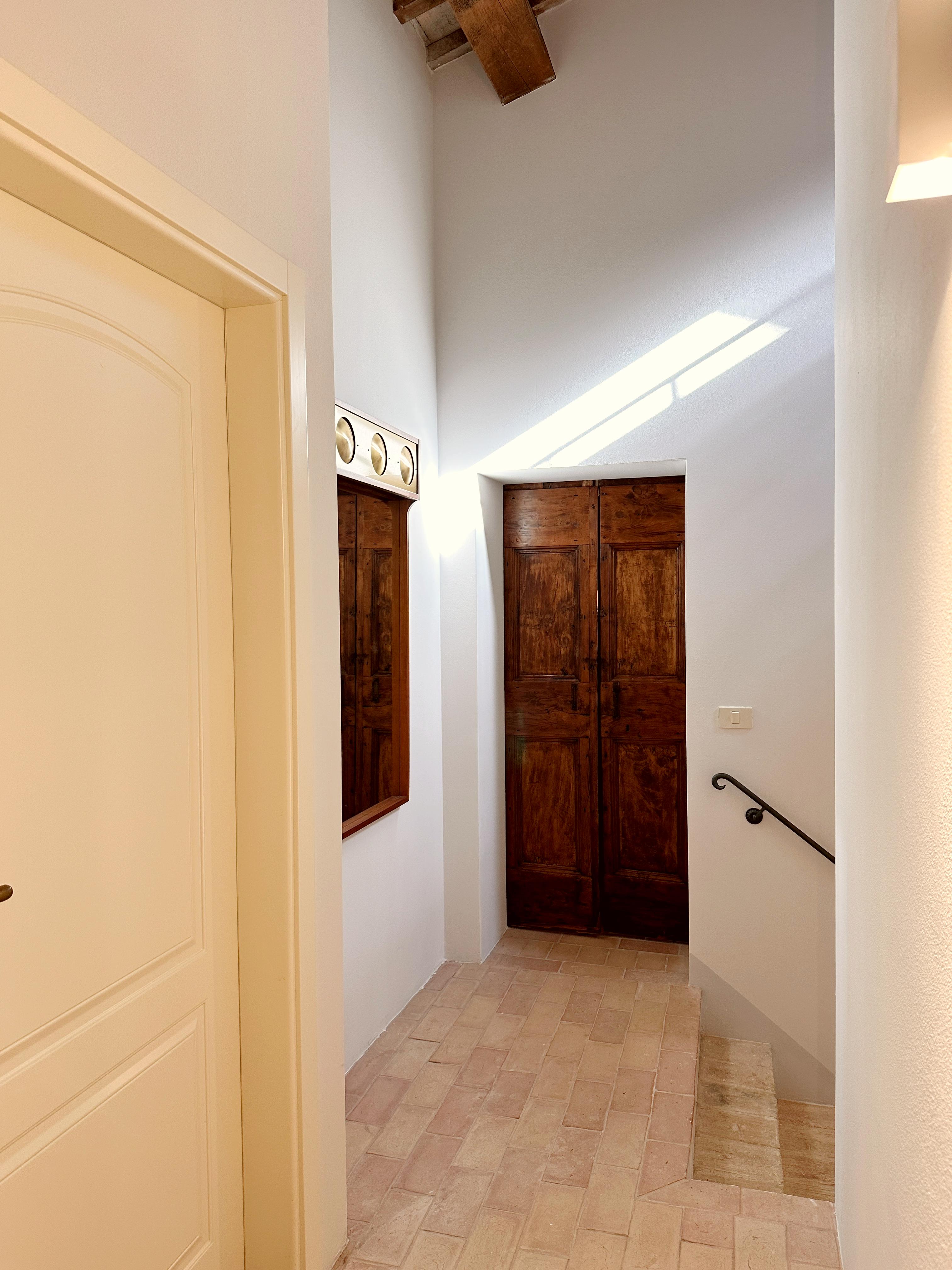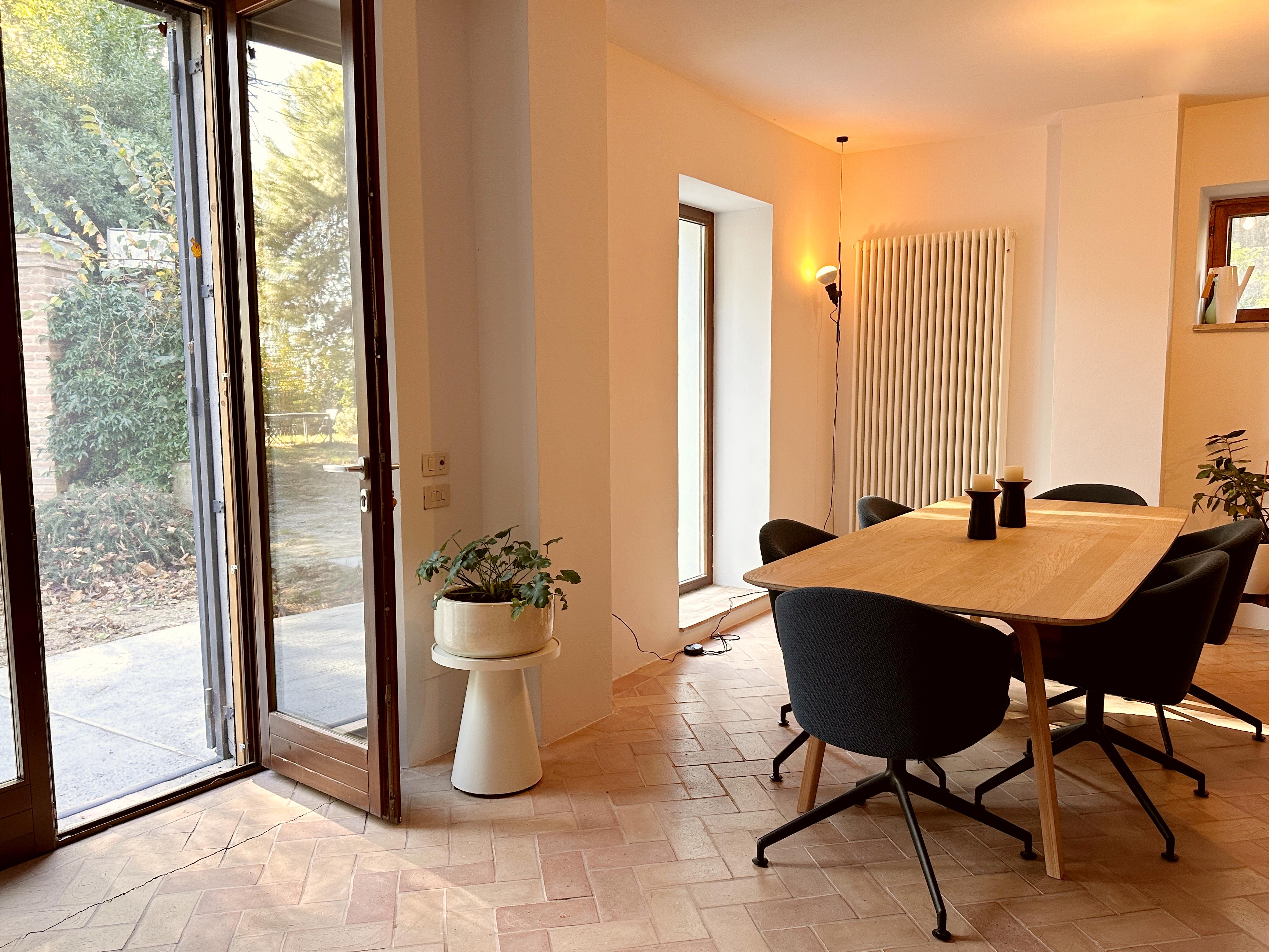 This bright, attractive house with a living area of 274 m² offers a harmonious blend of authentic charm and modern luxury, finished with high-quality materials. Restored in 2009 with the application of earthquake-resistant construction techniques and use of authentic materials from Le Marche, combined with elements that respect the local building tradition. Thus, the property has retained its original soul. Further improvements were carried out in 2024, including the installation of a heat pump for heating and cooling, new painting inside and a restyling of the interior.