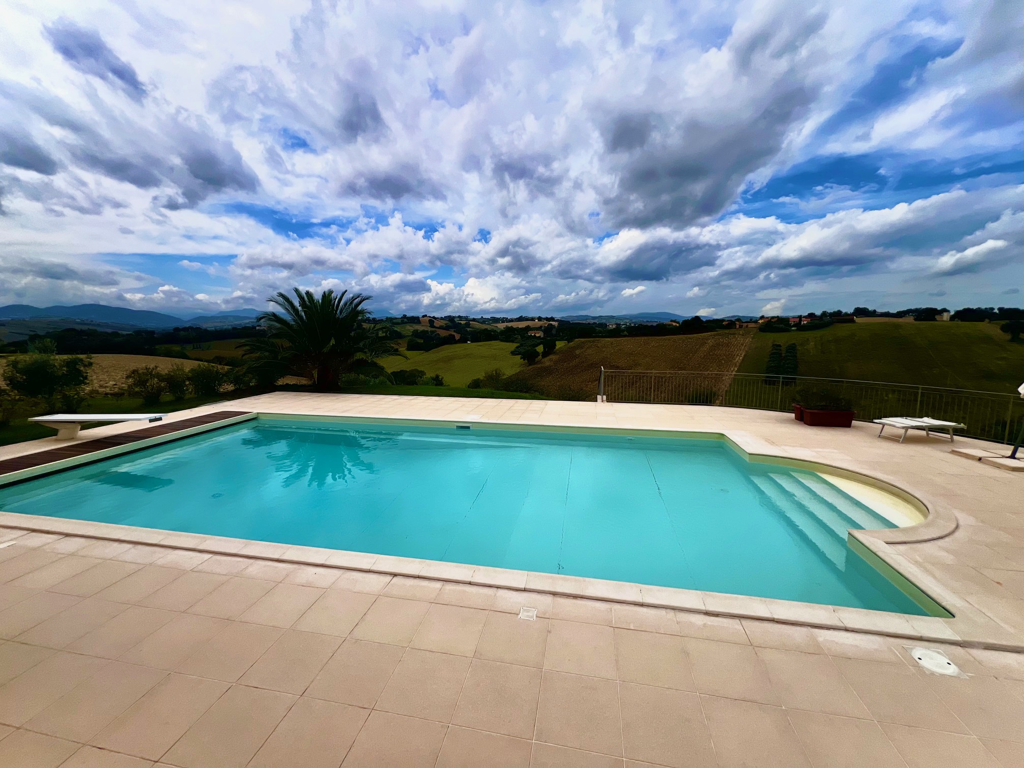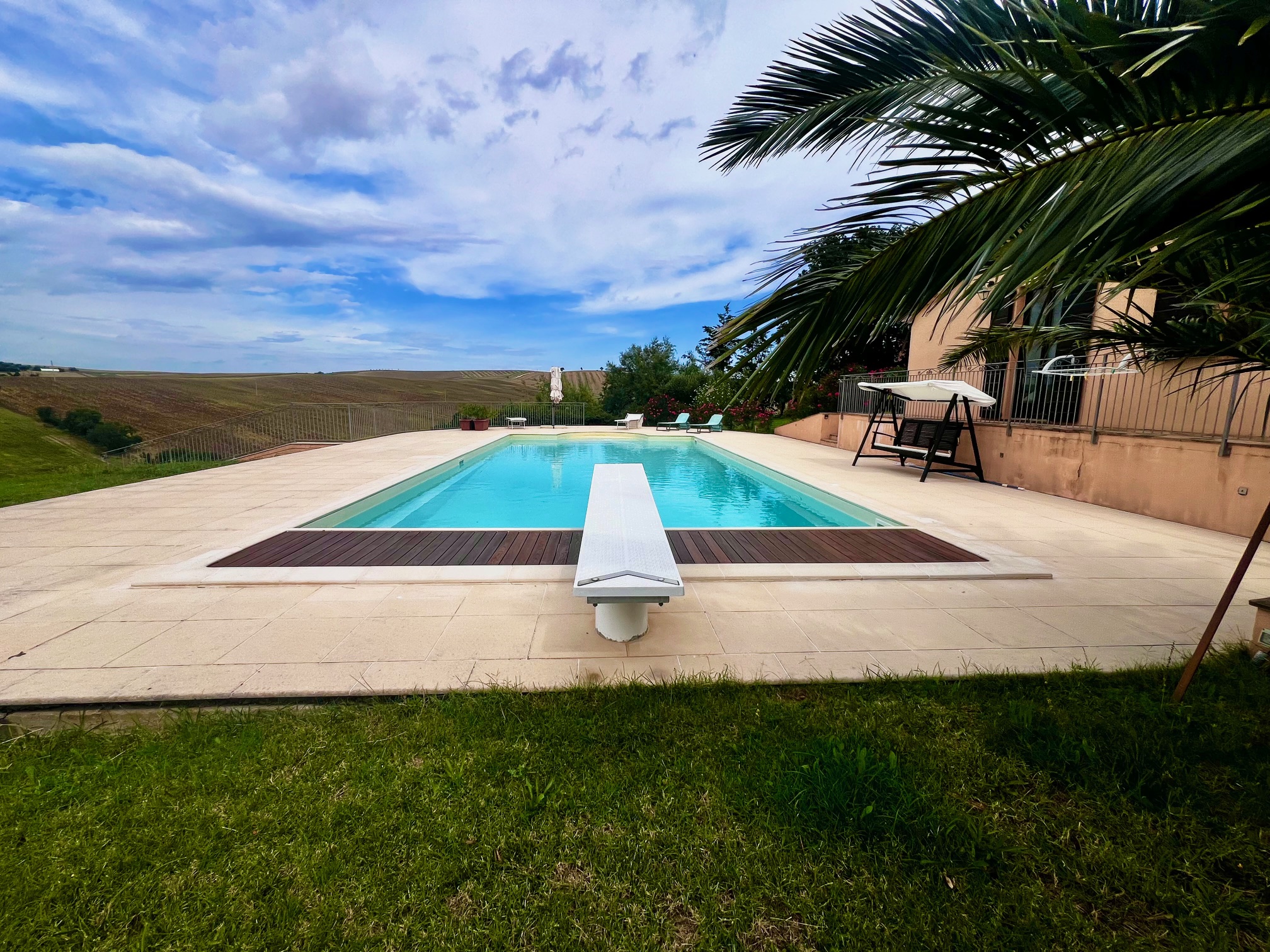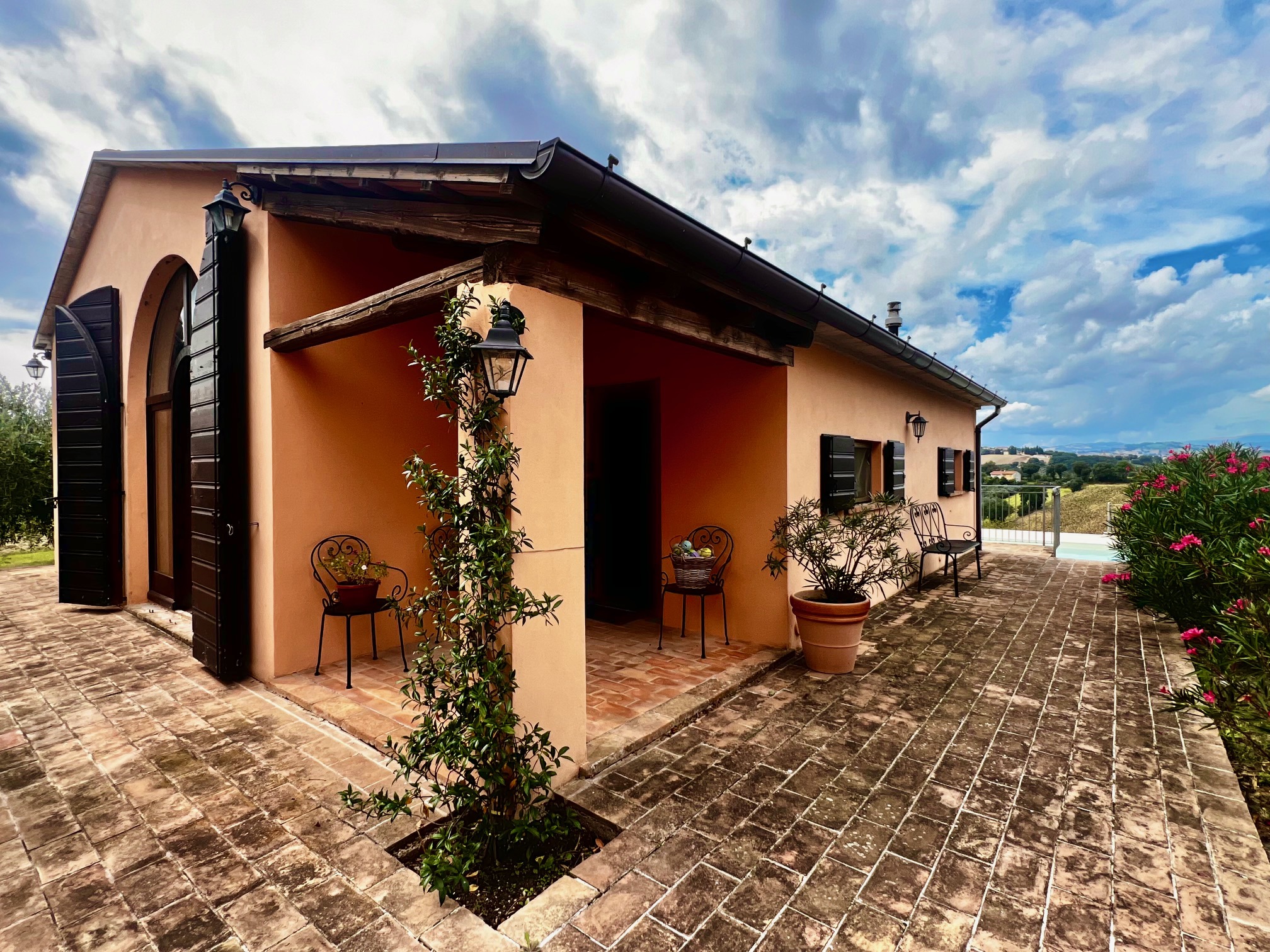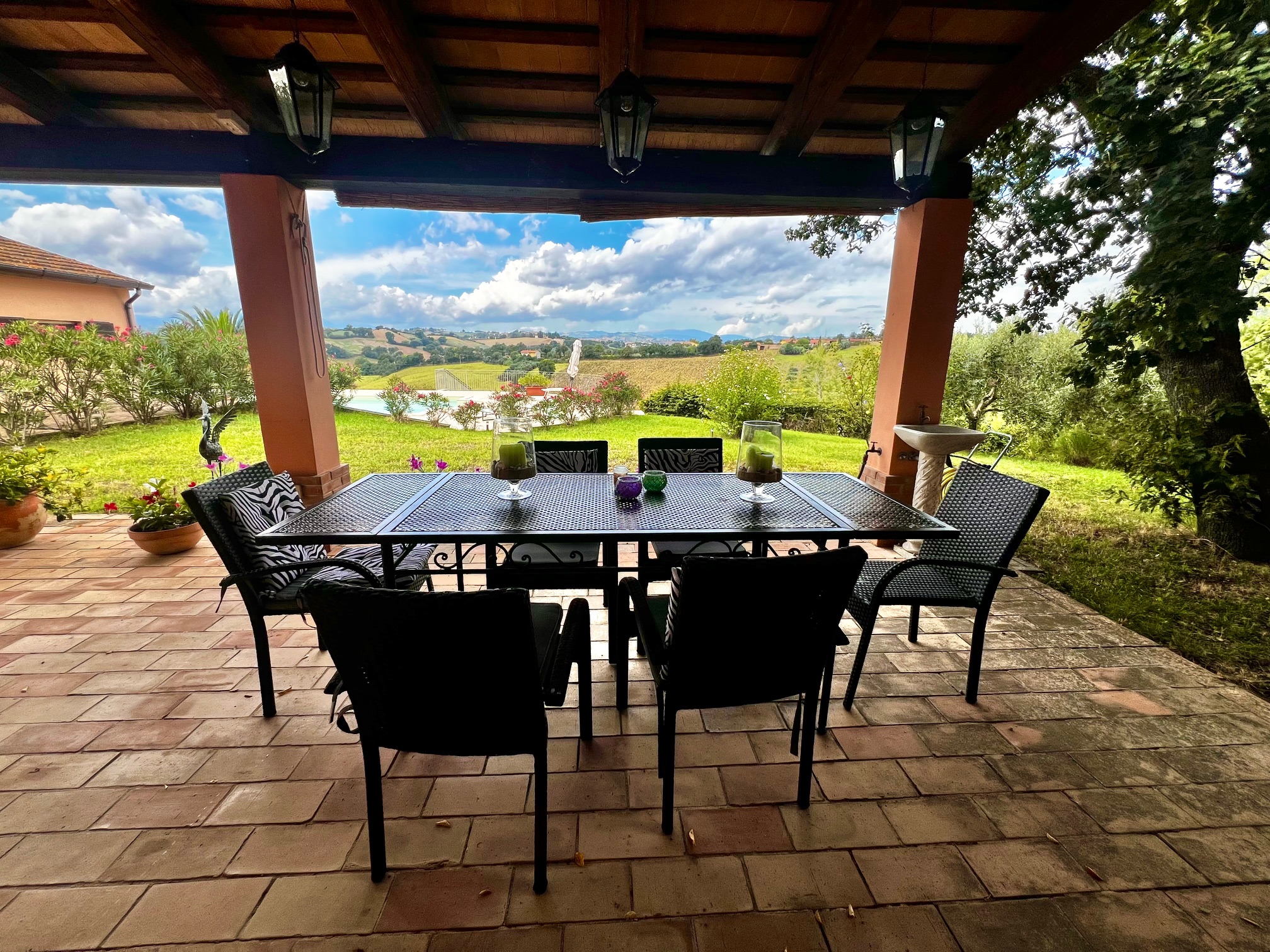 This beautiful country house with outbuilding and swimming pool is located on a hill near Castelleone di Suasa, with magnificent views of this medieval town, Ostra Vetere and Barbara from sunrise to sunset.