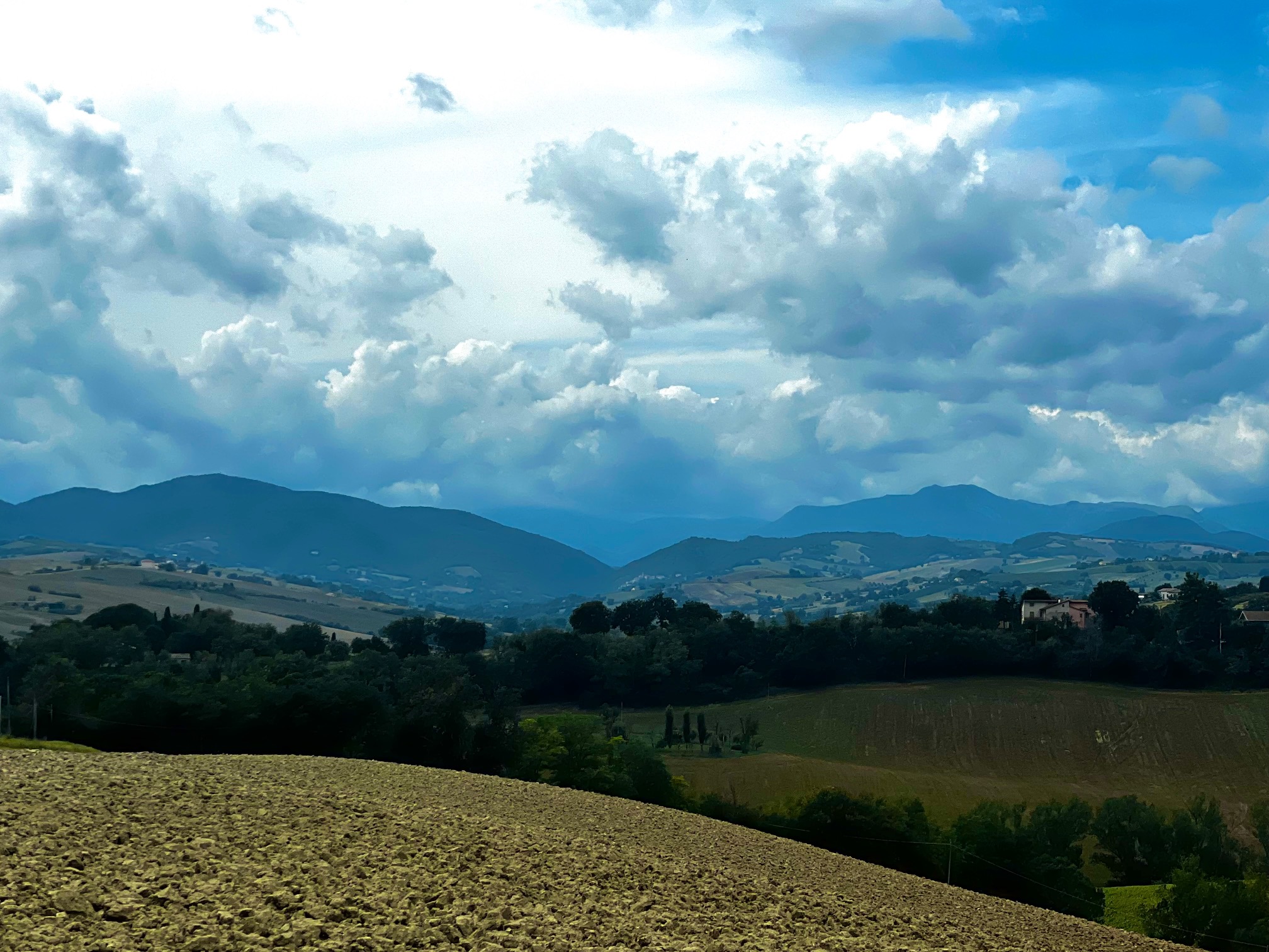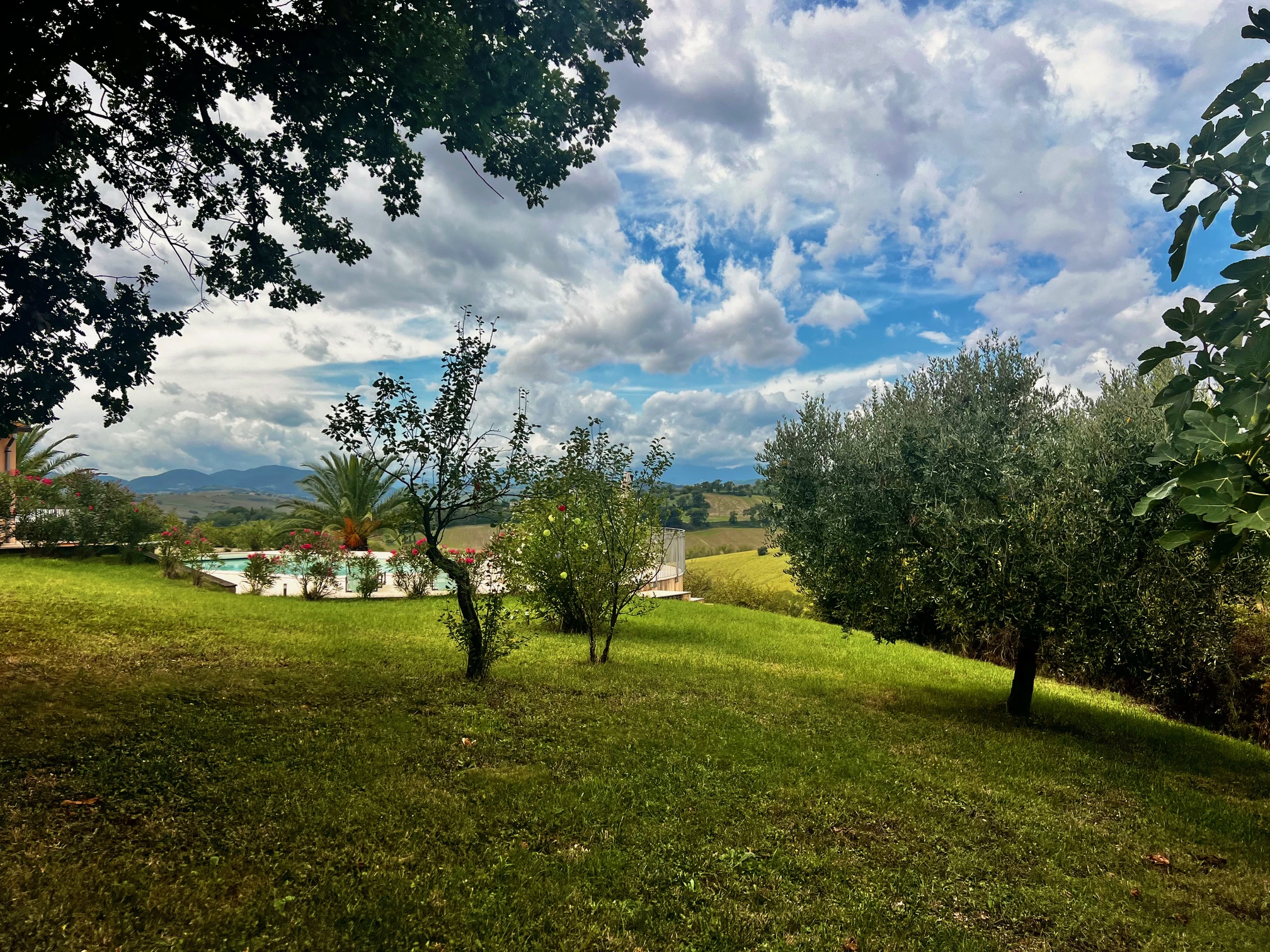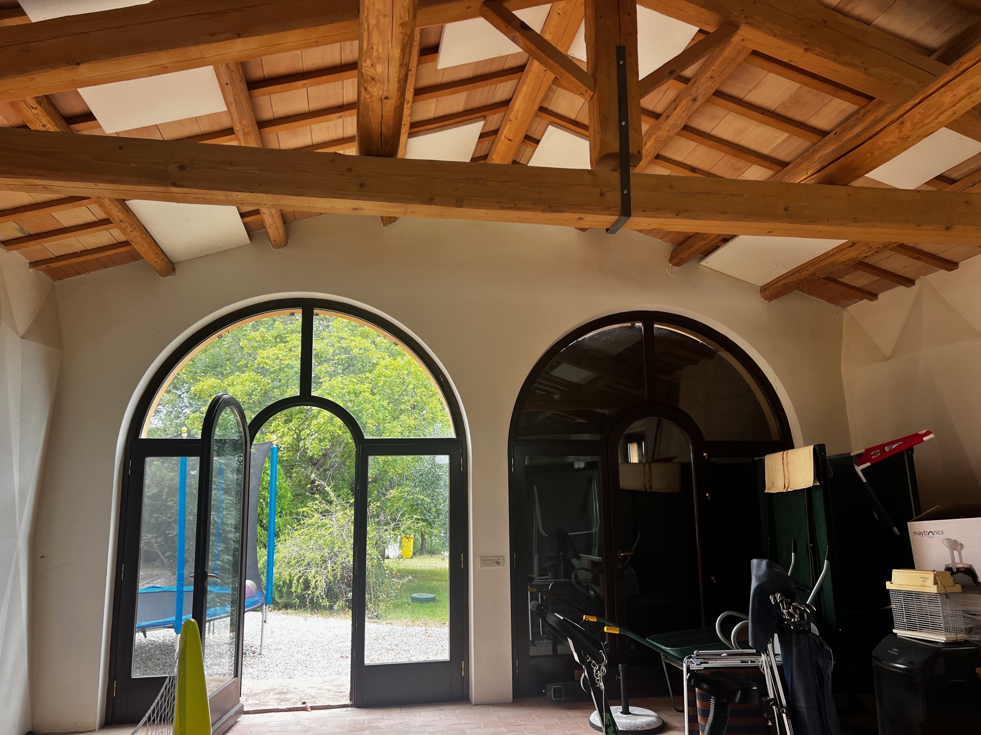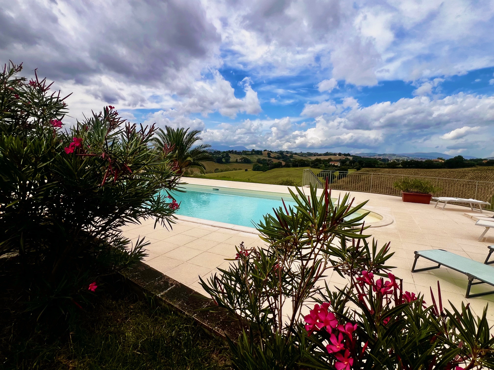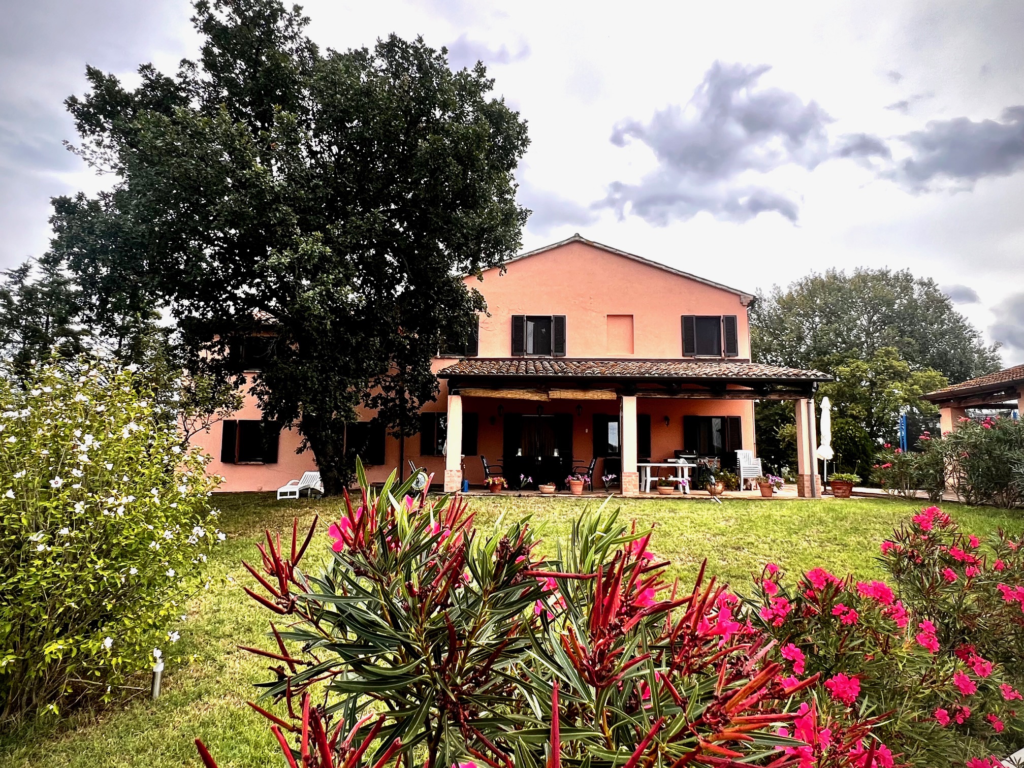 This beautiful country house with outbuilding and swimming pool is located on a hill near Castelleone di Suasa, with magnificent views of this medieval town, Ostra Vetere and Barbara from sunrise to sunset.