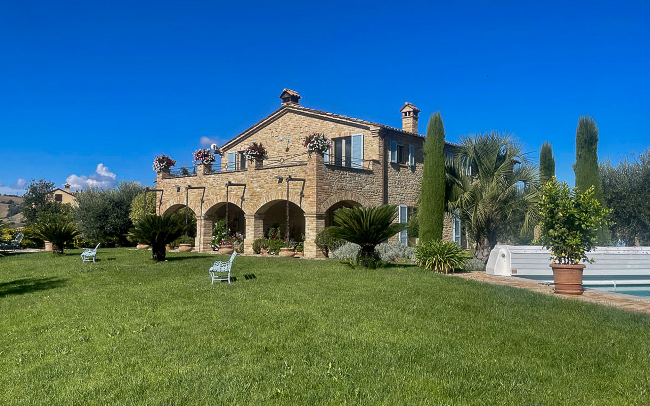Set in a commanding position overlooking the rolling hills of the Le Marche countryside, Villa Il Poggio is a beautifully rebuilt stone farmhouse that perfectly blends rustic charm with modern elegance. With its southern exposure, the property enjoys spectacular views that stretch across the surrounding fields to the majestic Sibillini Mountains, a landscape that gifts breathtaking sunrises and sunsets every day.
