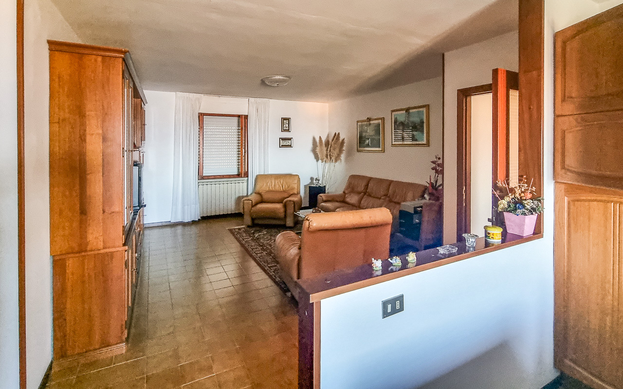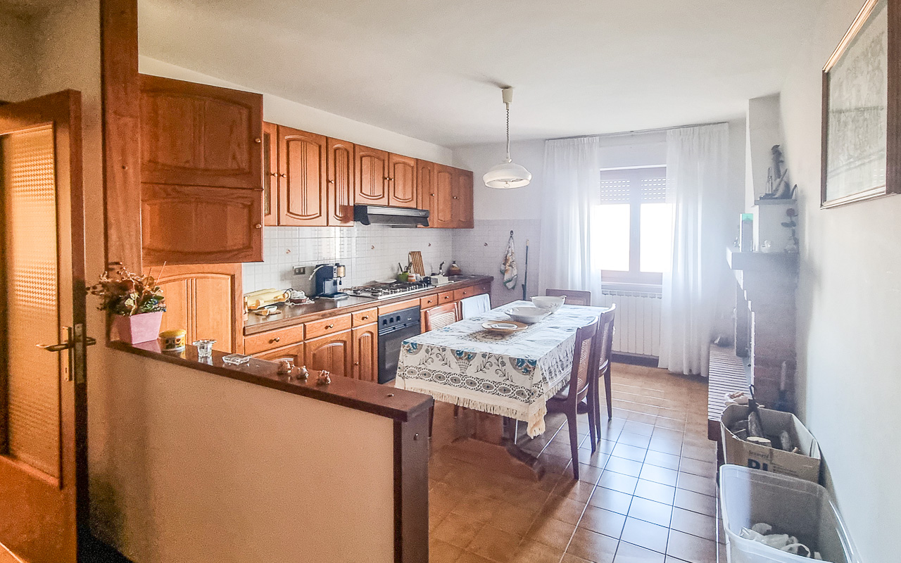 The right-hand house, as seen from the field, was built in 1997 and has a total surface area of approximately 420 sqm, including outbuildings. The main house offers around 276 sqm of living space over three floors and is in excellent condition thanks to recent renovation works. It is currently divided into two spacious independent apartments, each with its own private entrance, GPL heating system and separate electricity meter. In total, the house offers 4 bedrooms and 3 bathrooms, making it ideal for a large family or for those seeking generous living space. Additional features include a cellar, storage areas and a large attic. The outbuildings measure approximately 139 sqm, and the land directly in front of the house extends to about 1.5 hectares.