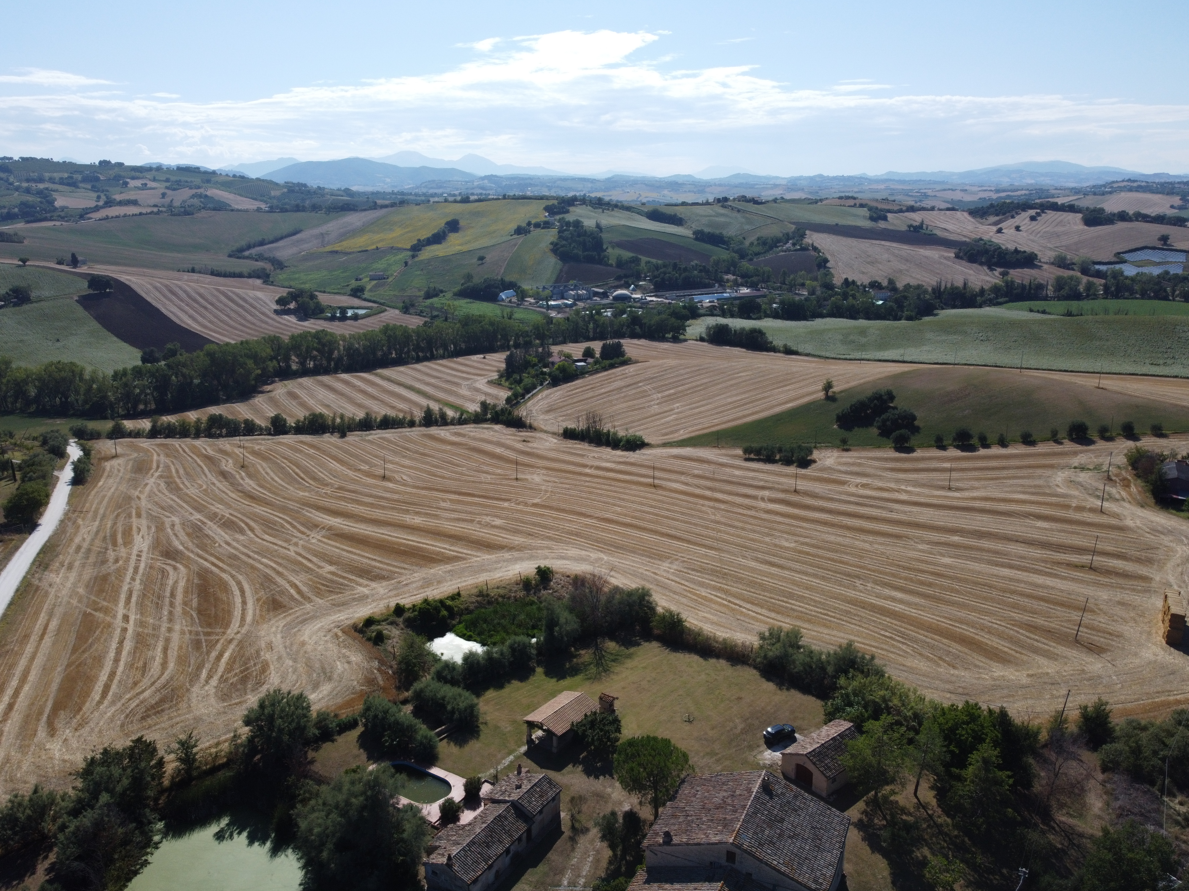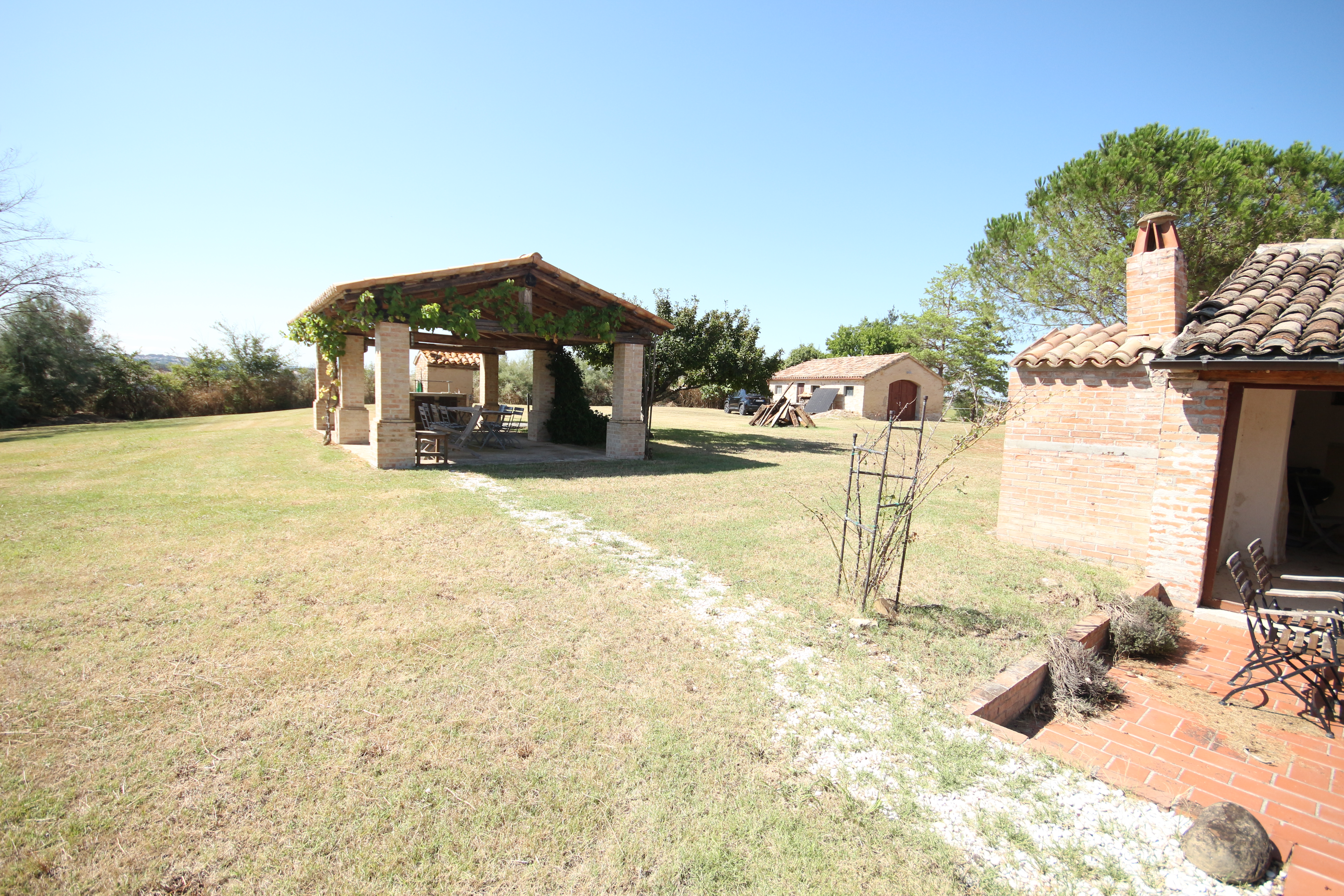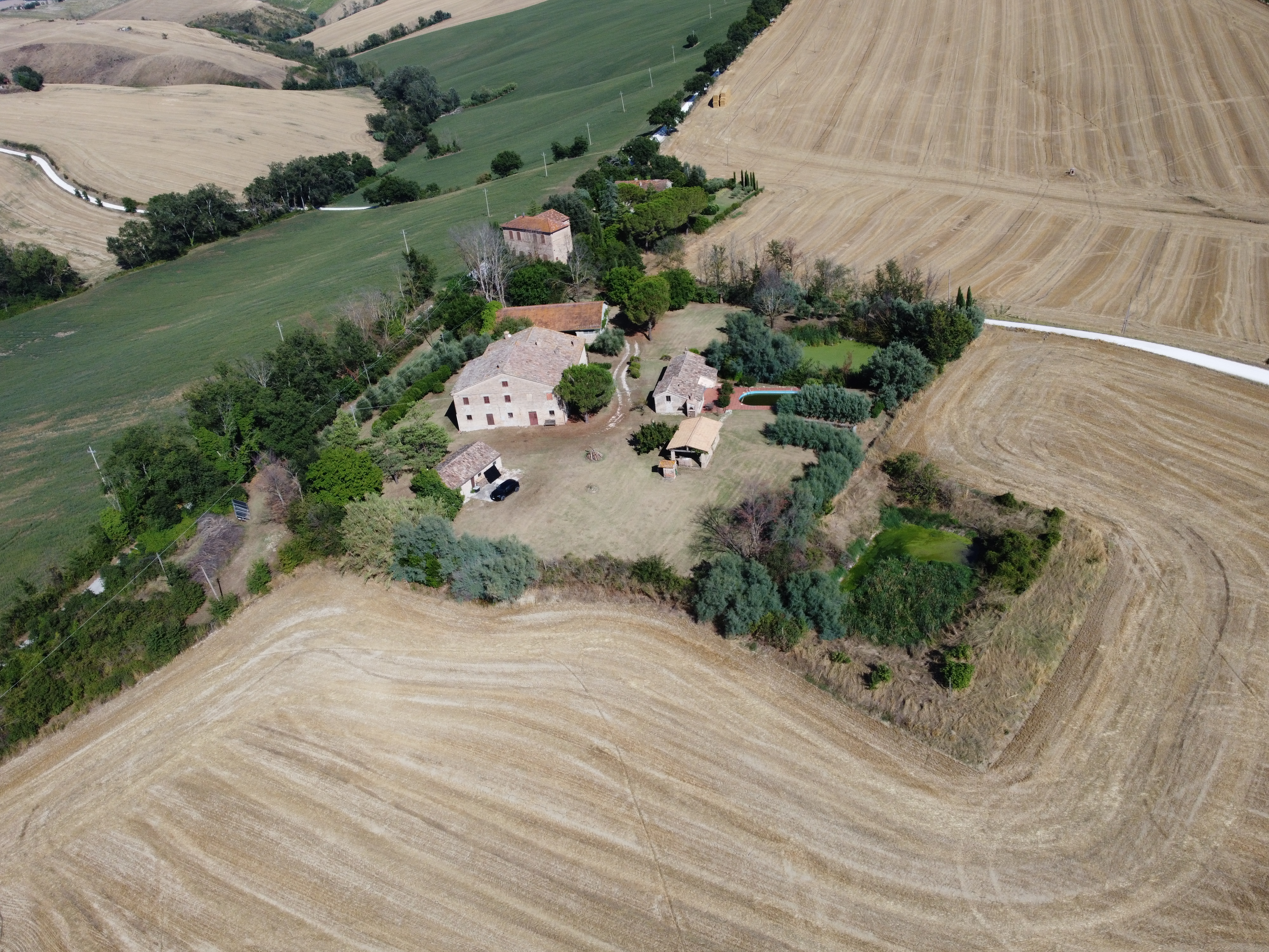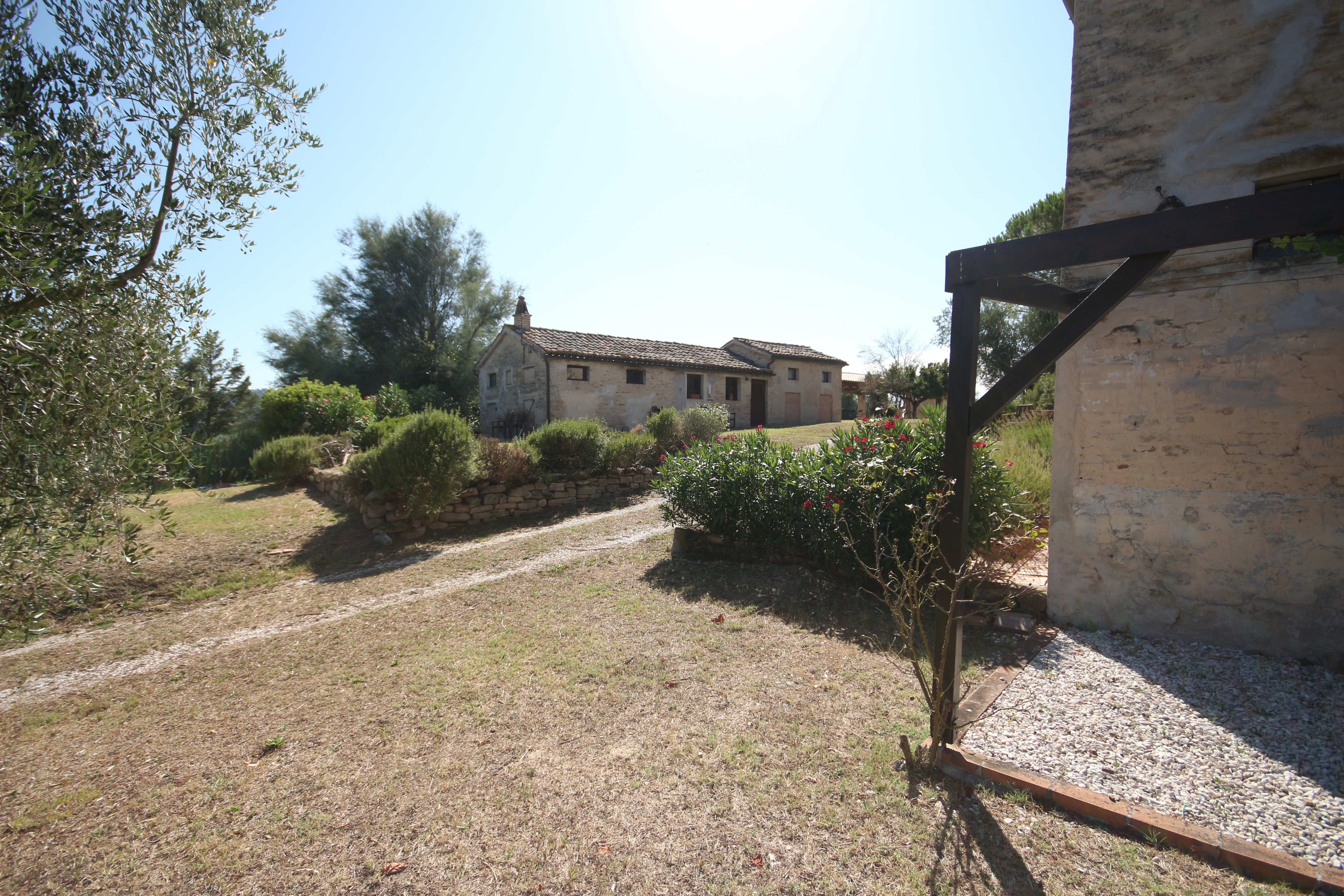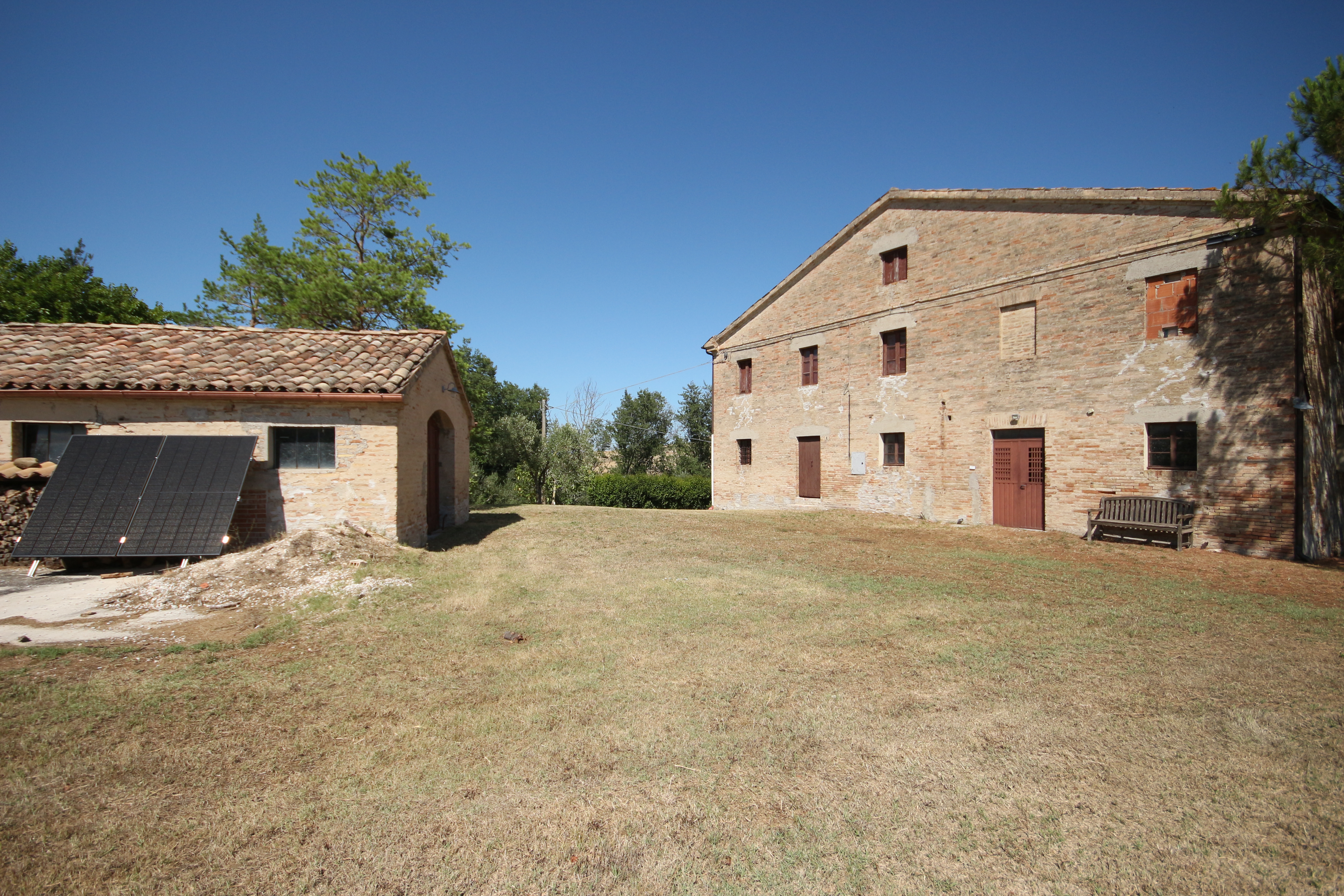 In the gentle countryside of Montecarotto (province of Ancona, Marche), with breathtaking views as far as the Apennines, lies this charming and characteristic estate (partly restored) consisting of several buildings. The total built surface area is 1,176 m² and the property is located on a large plot of approximately 10,000 m² .