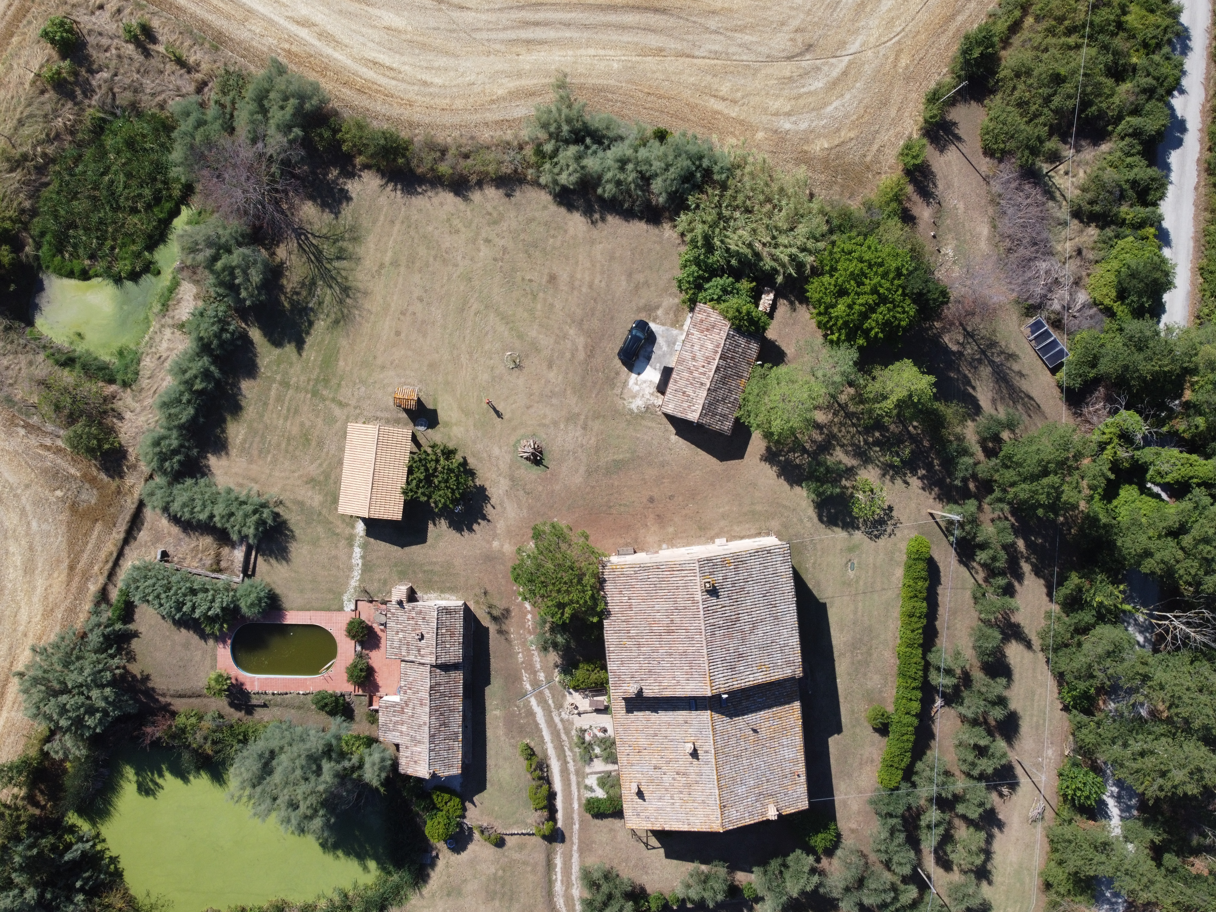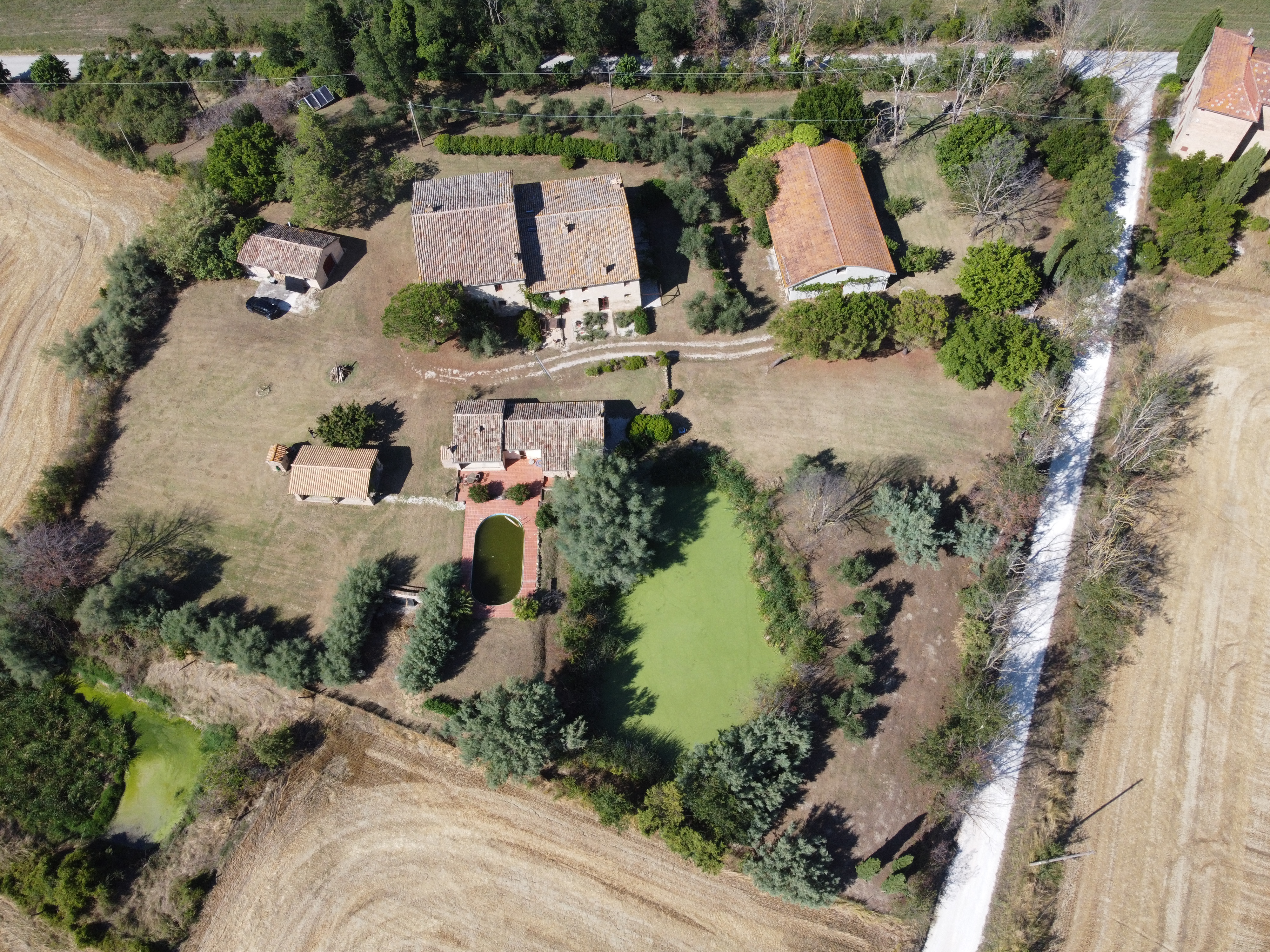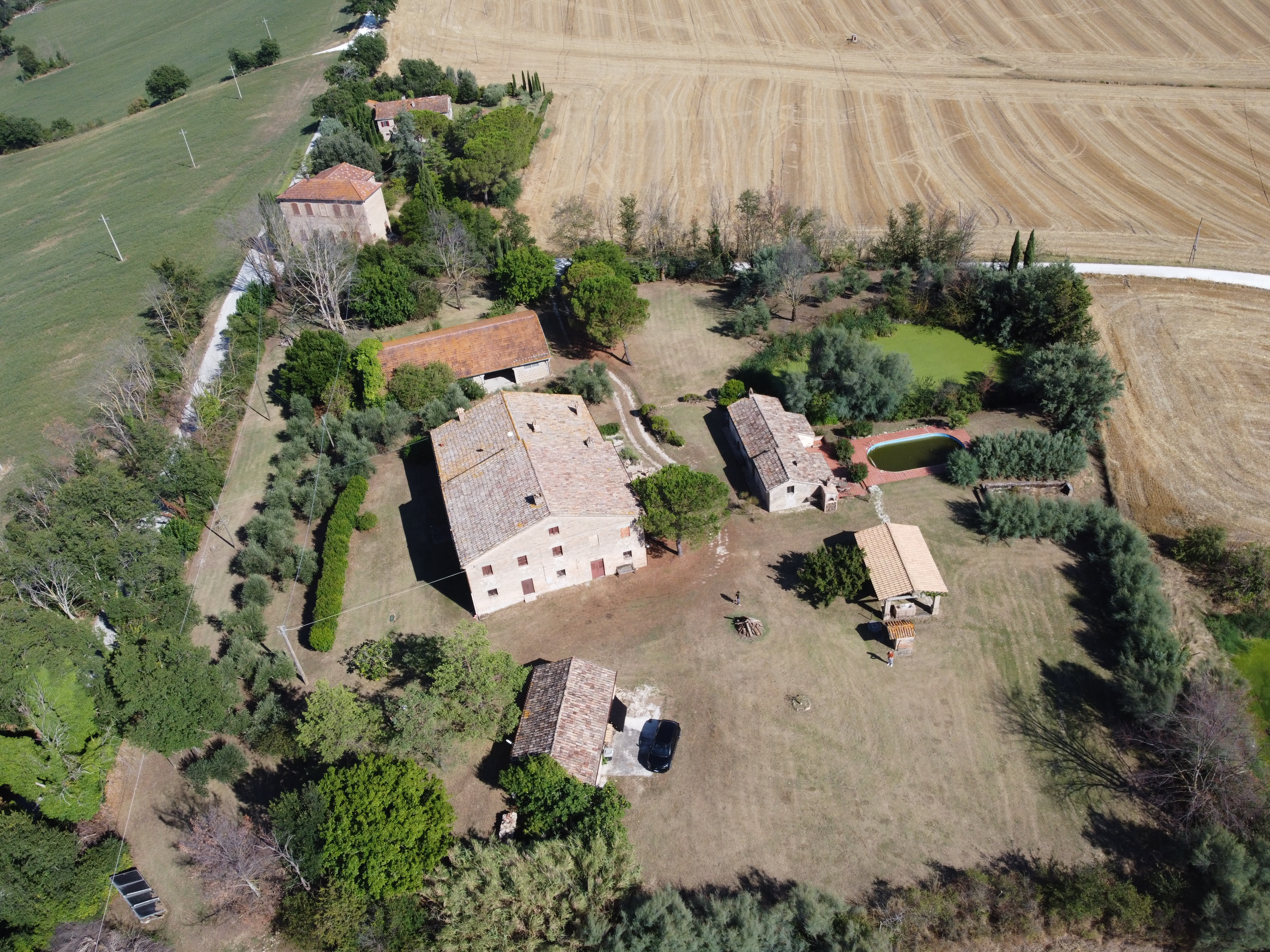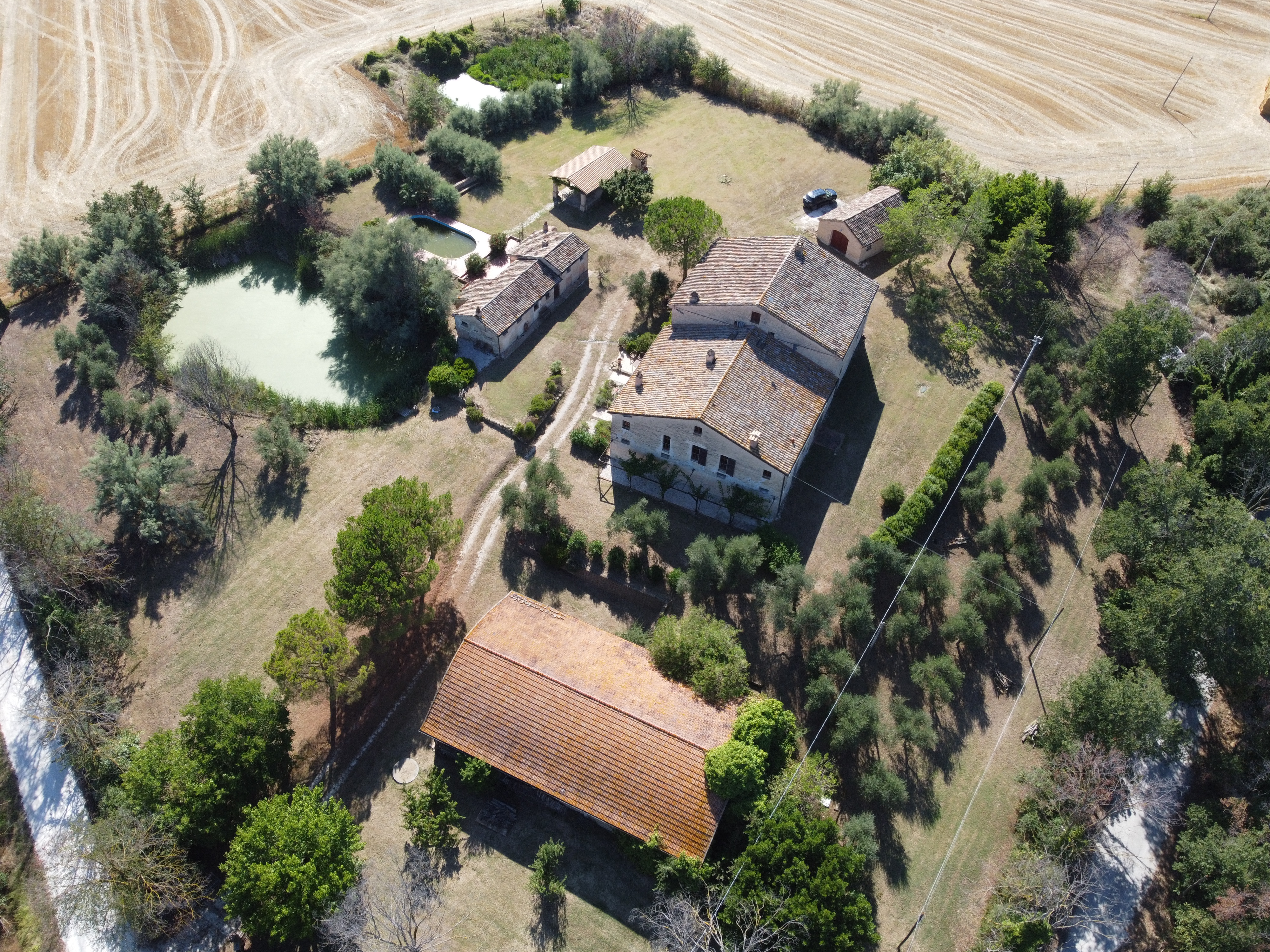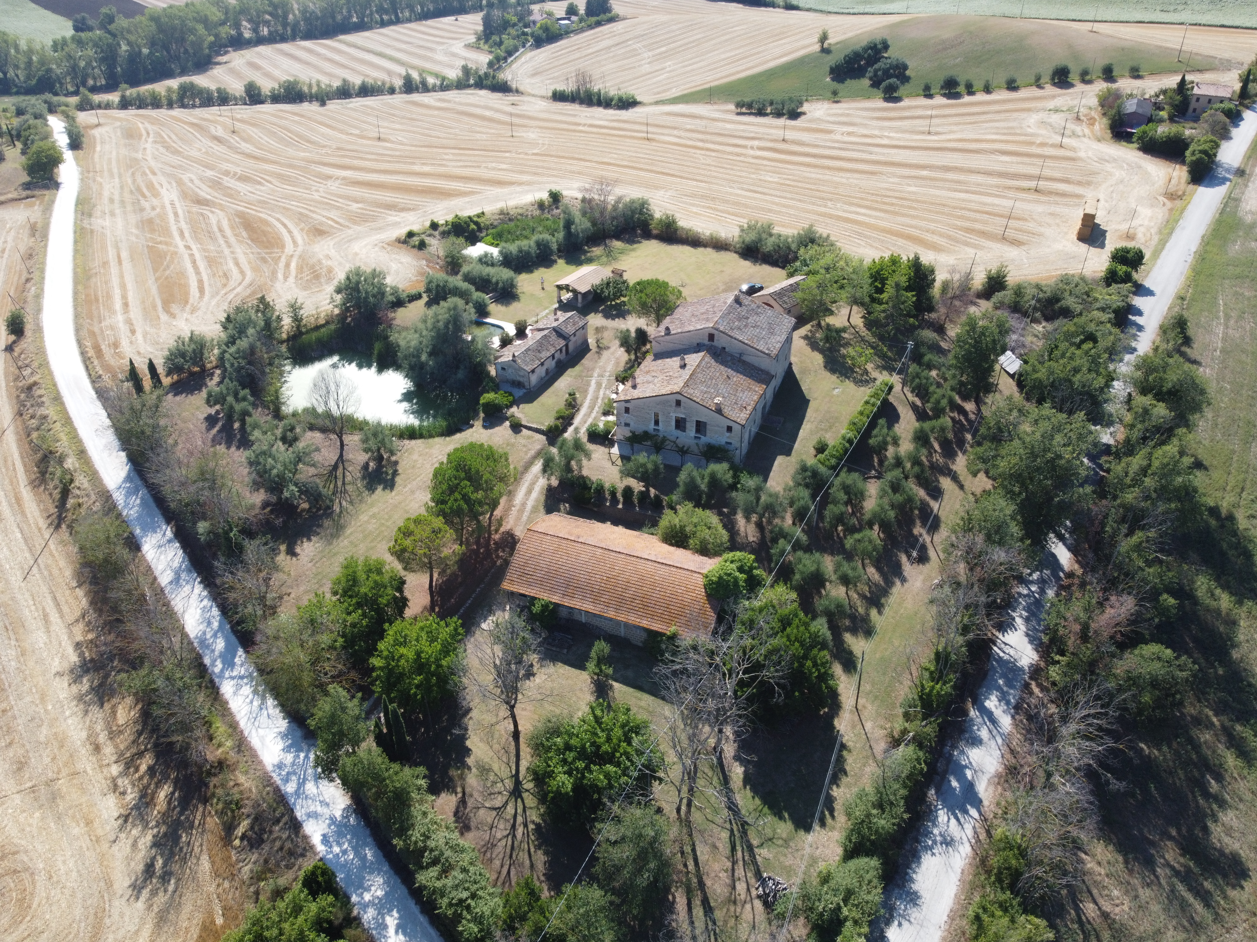 In the gentle countryside of Montecarotto (province of Ancona, Marche), with breathtaking views as far as the Apennines, lies this charming and characteristic estate (partly restored) consisting of several buildings. The total built surface area is 1,176 m² and the property is located on a large plot of approximately 10,000 m² .