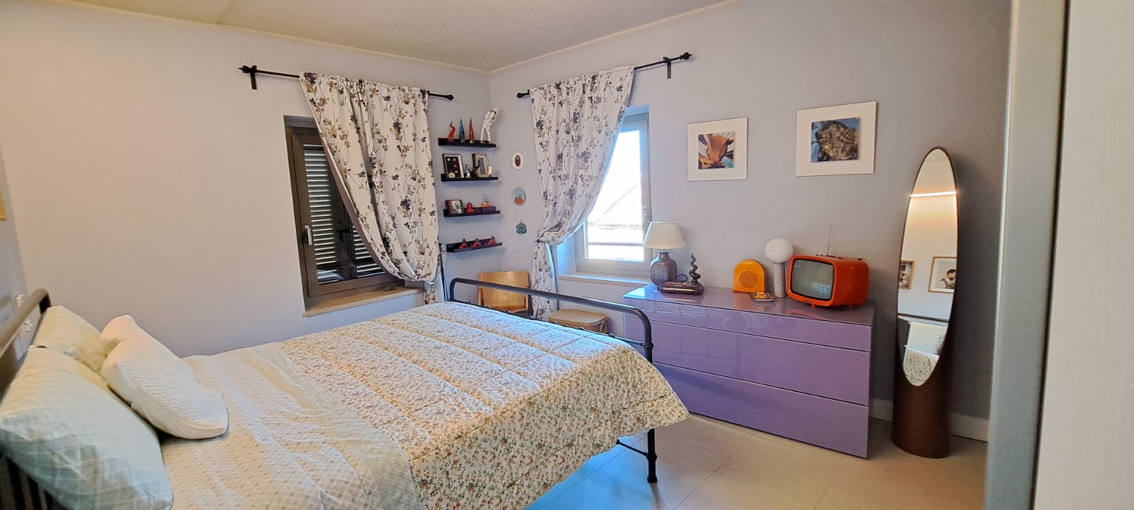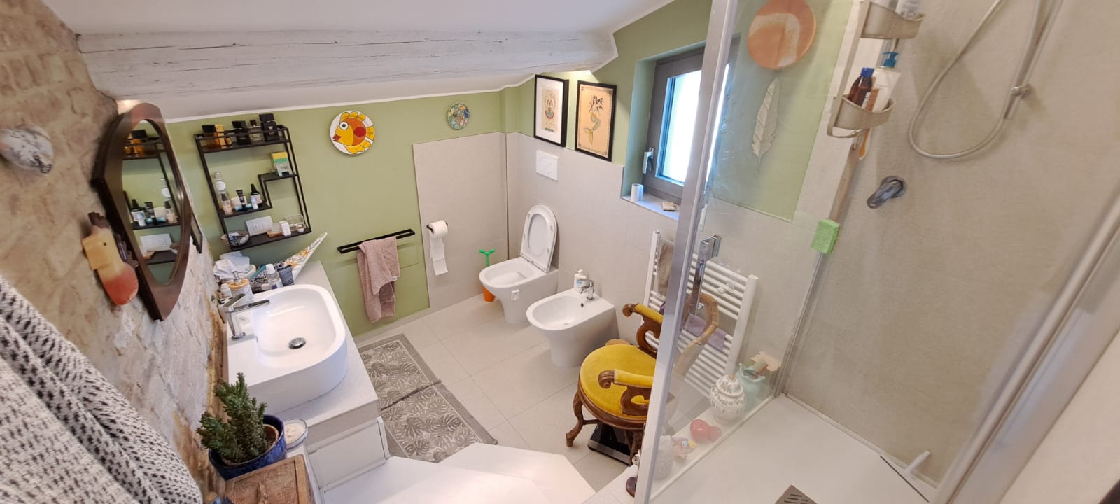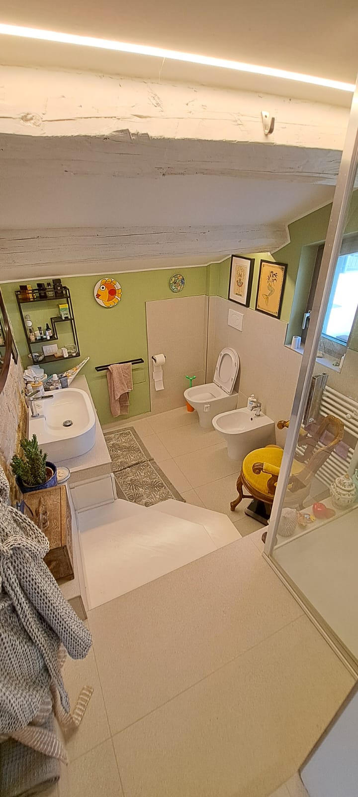 • First floor: two bedrooms, a large bathroom with shower, a beautiful sun terrace with panoramic views from the Apennines to the coast, and a large room .