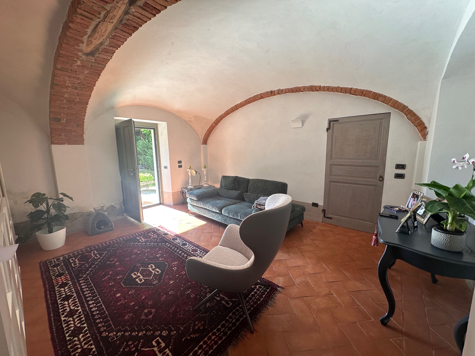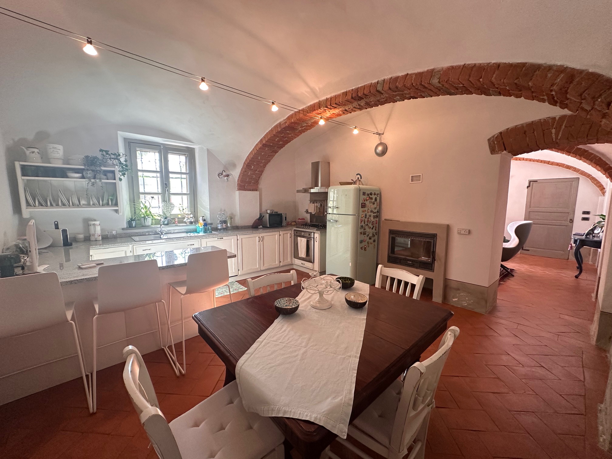 Just outside the centre of Acqui Terme, easily accessible on foot, is this beautiful house created by skillfully renovating part of an old house dating back to 1100. The three-storey house has been completely and expertly renovated, keeping all the original elements of the building and restoring the unique frescoes dating back to 1700. The house is accessed through the private garden, where a beautiful porch and a wood-burning oven have been built, ideal for spending cosy evenings with friends. On the ground floor there is a living room, a beautiful spacious kitchen (both with vaulted ceilings), a bathroom and a door leading to the back garden, where there is a small porch, a cellar and a laundry room. On the first floor, there are two beautiful continuous rooms with fireplace, beautiful frescoes and antique doors and a bathroom. On the second and last floor there are two more through rooms with a third bathroom. The floors are of antique terracotta or precious wood, original to the building.