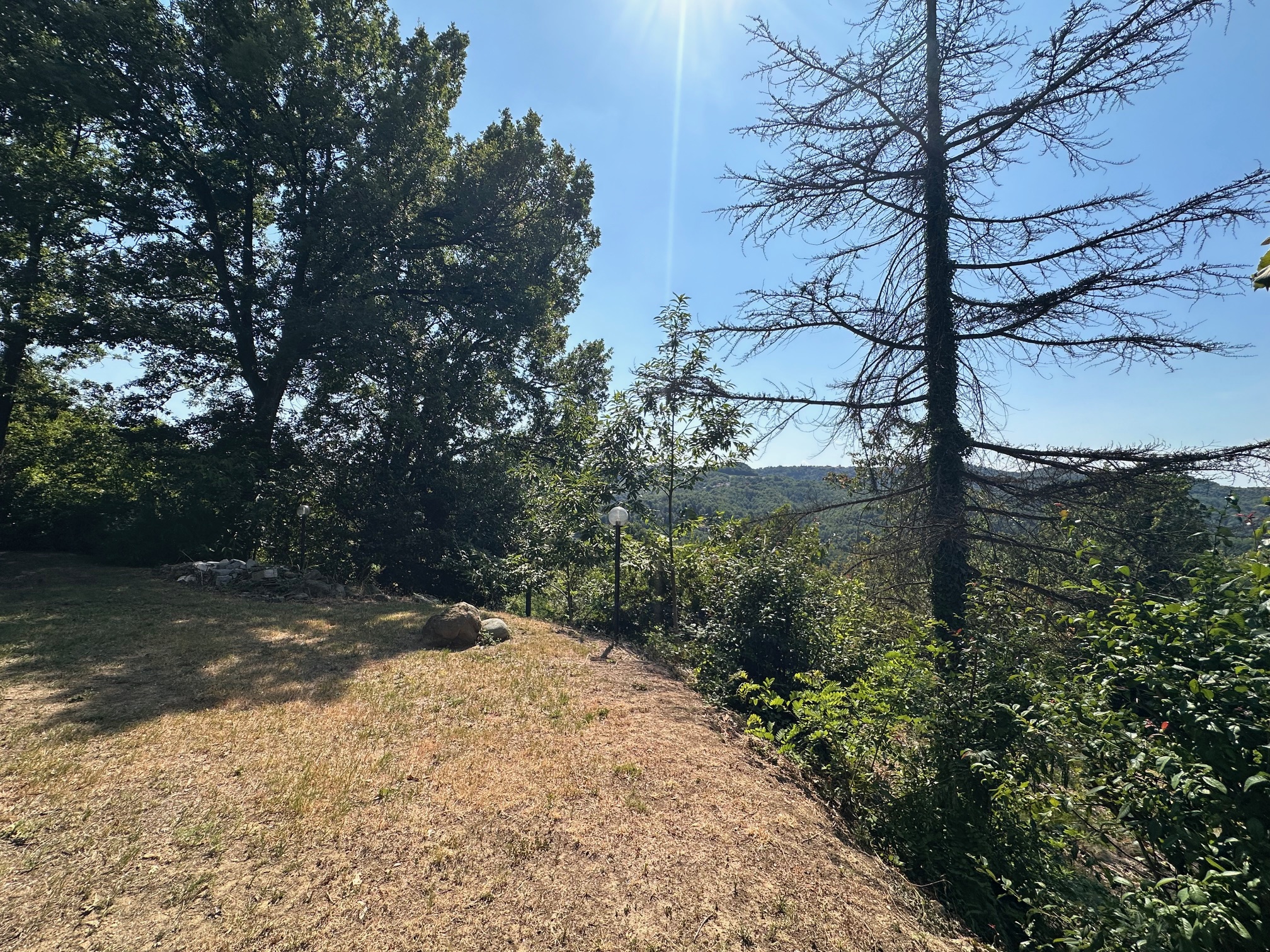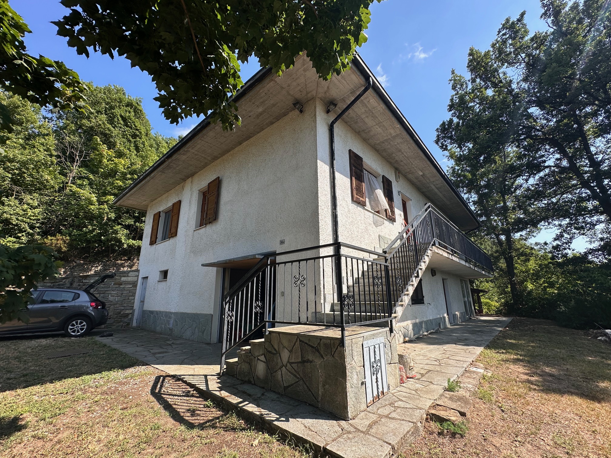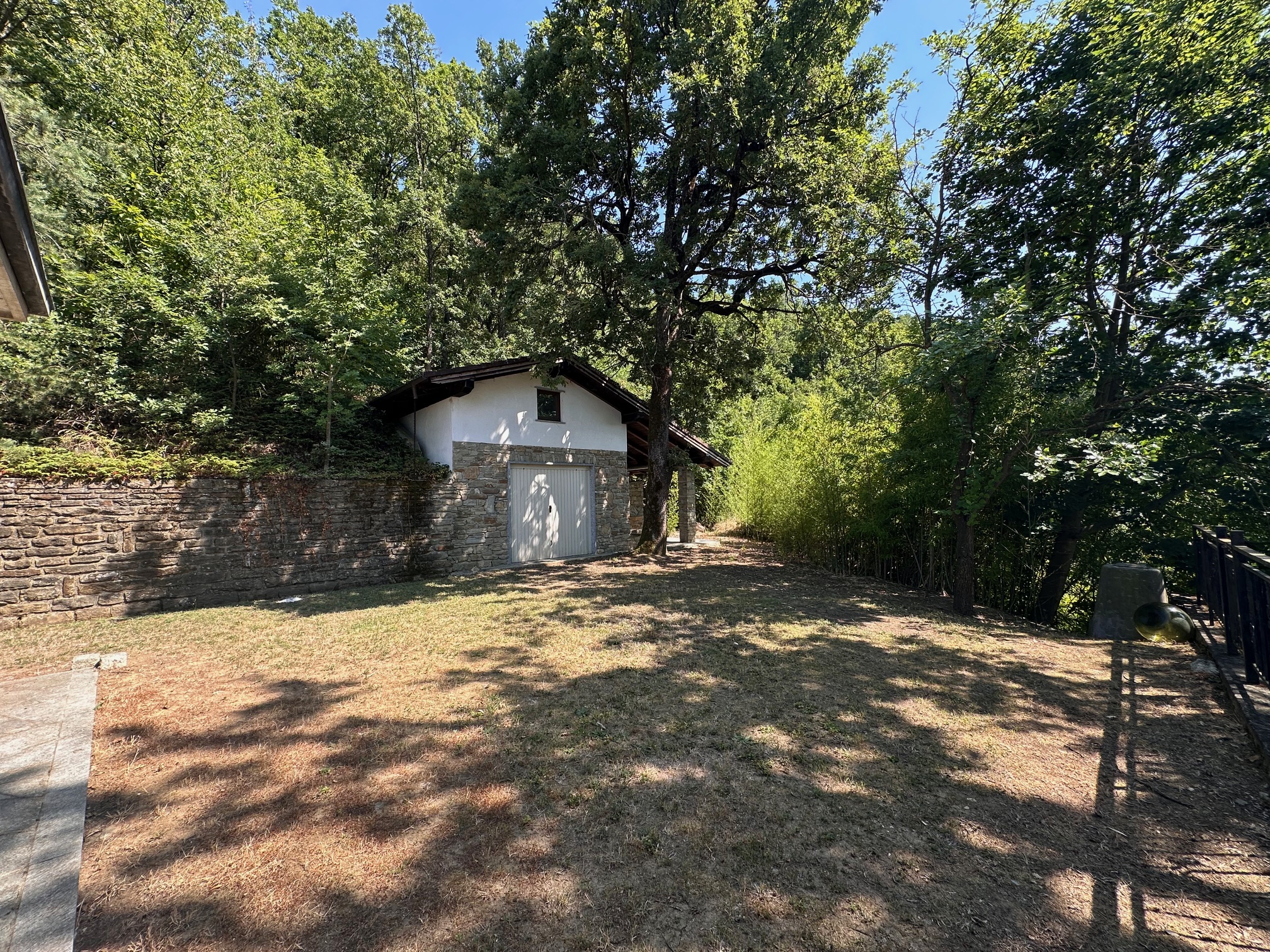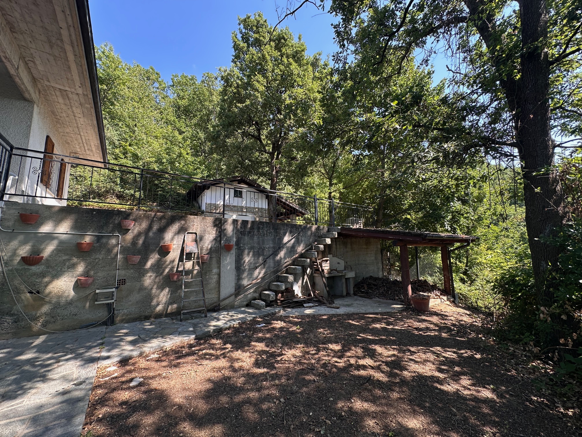 About 15 km from Acqui Terme, in a very panoramic and quiet location, surrounded by greenery, we offer this beautiful property, consisting of a detached house built in the late 70s and in excellent condition, an annexe and about 6,000 m² of land. The main building has two floors. The ground floor consists of a garage, a cellar, a storage room and a shed, as well as a veranda. The flat is on the mezzanine floor (also internally connected to the ground floor) and consists of an entrance hall, a kitchen diner, a living room with fireplace, 3 bedrooms and two bathrooms. The annex consists of a large room currently used as storage and a nice veranda with wood oven and barbecue.