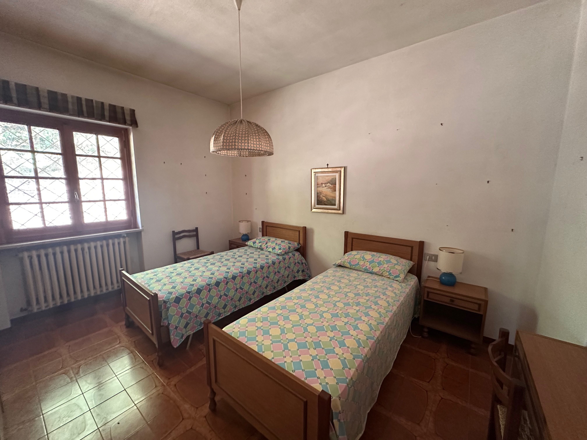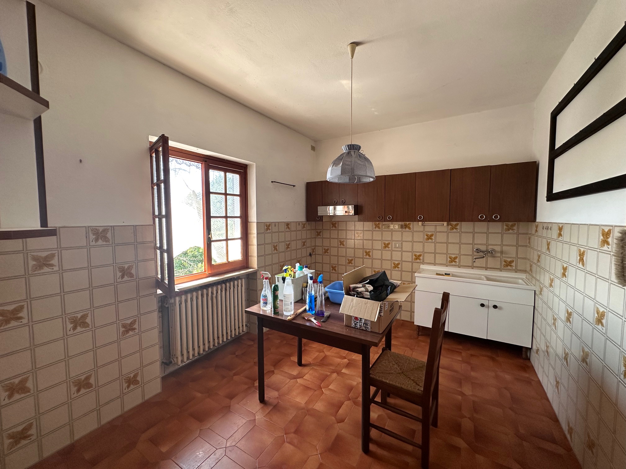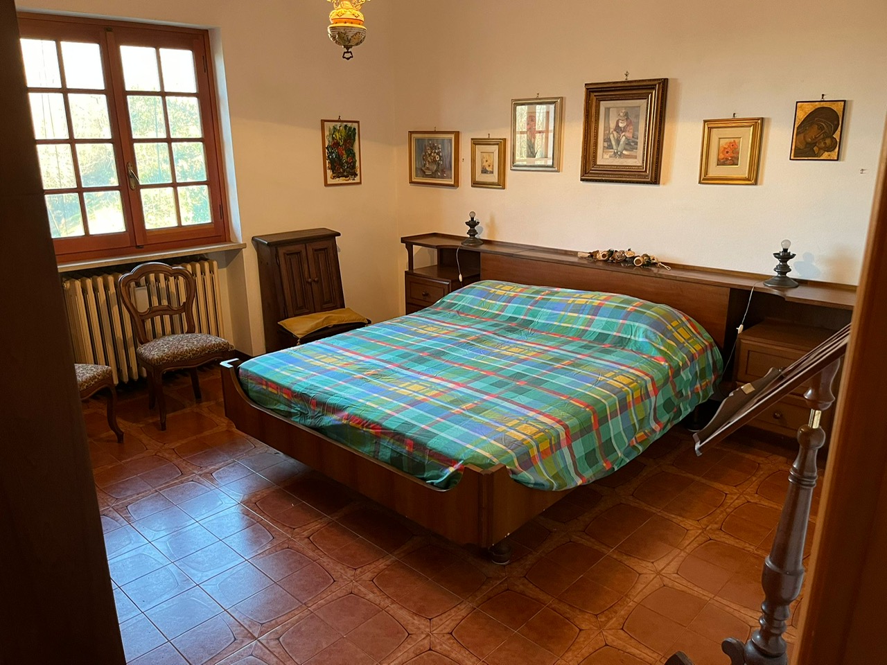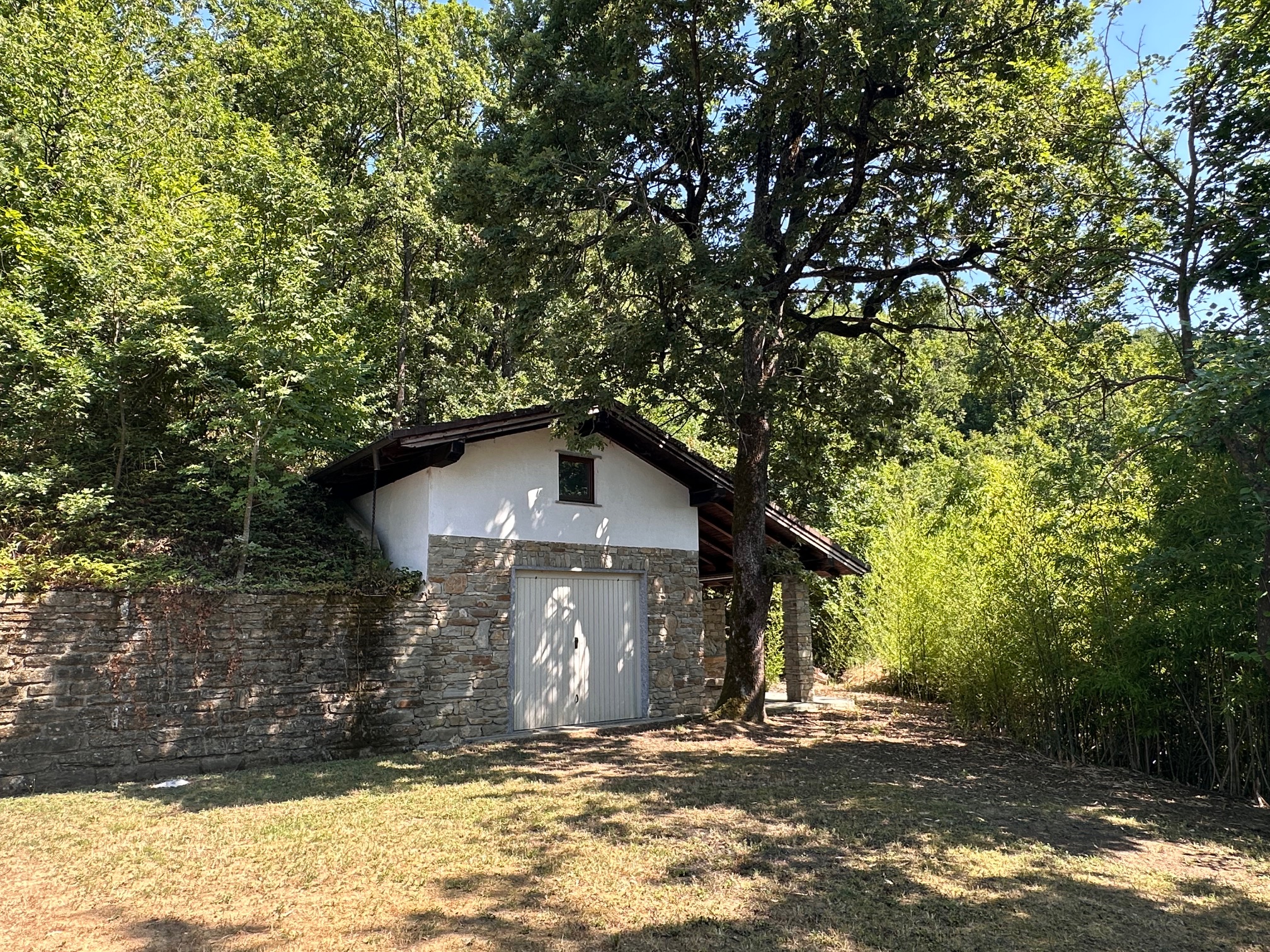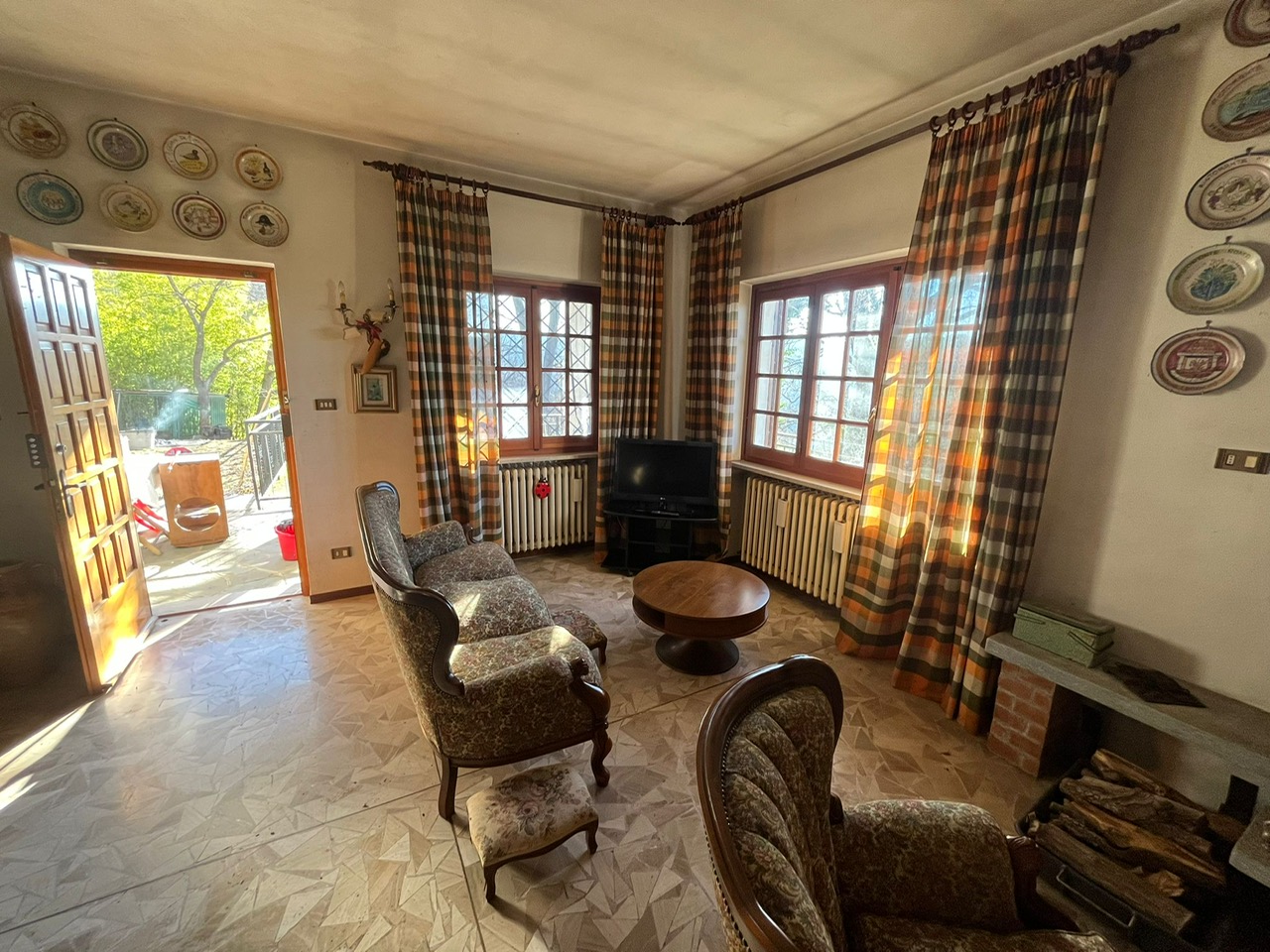 About 15 km from Acqui Terme, in a very panoramic and quiet location, surrounded by greenery, we offer this beautiful property, consisting of a detached house built in the late 70s and in excellent condition, an annexe and about 6,000 m² of land. The main building has two floors. The ground floor consists of a garage, a cellar, a storage room and a shed, as well as a veranda. The flat is on the mezzanine floor (also internally connected to the ground floor) and consists of an entrance hall, a kitchen diner, a living room with fireplace, 3 bedrooms and two bathrooms. The annex consists of a large room currently used as storage and a nice veranda with wood oven and barbecue.