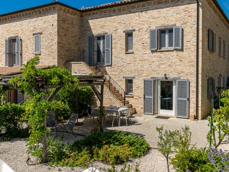 In a quiet and green setting in the municipality of Masio lies this large, renovated Piedmontese farmhouse, surrounded by a hectare of fully fenced land. From the first moment, the building exudes the authentic charm of Monferrato rural homes, with exposed bricks, white shutters and the typical brightness of houses facing the sun.