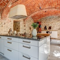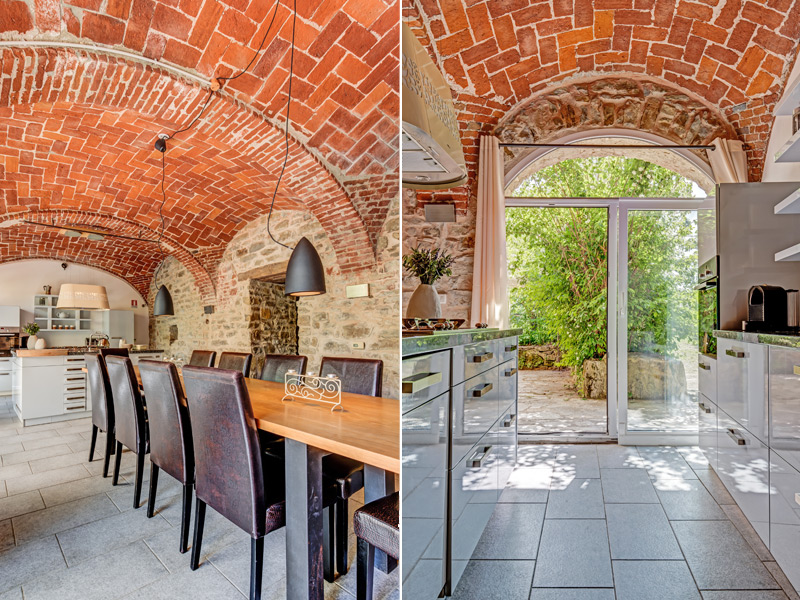 In this timeless setting, we find Casa Carlin, a property that has retained the original charm of the houses in the Langa. Its solid brick vaults, exposed wooden beams and stone walls create warm and atmospheric spaces, where the elegance of tradition merges with modern comforts. The large kitchen and living room on the ground floor are the beating heart of the house. On the first floor there are three spacious bedrooms, two bathrooms, a balcony and a terrace; on the second floor another two bedrooms, two bathrooms, a balcony and a romantic covered terrace where you can enjoy the surrounding landscape.