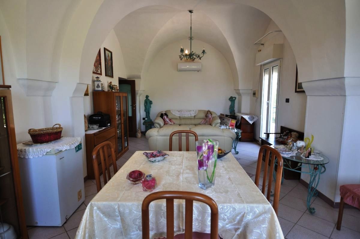 Detached villa with private swimming pool for sale in the countryside of San Vito dei Normanni, just 3 km from the center. The property of about 92 m² is equipped with 3 bedrooms and 3 bathrooms, a 50 m² covered veranda, and a plot of 6,100 m². Equipped with air conditioning, artesian well, and water reservoir, it is ideal as a private residence or as an investment for tourist rentals.
