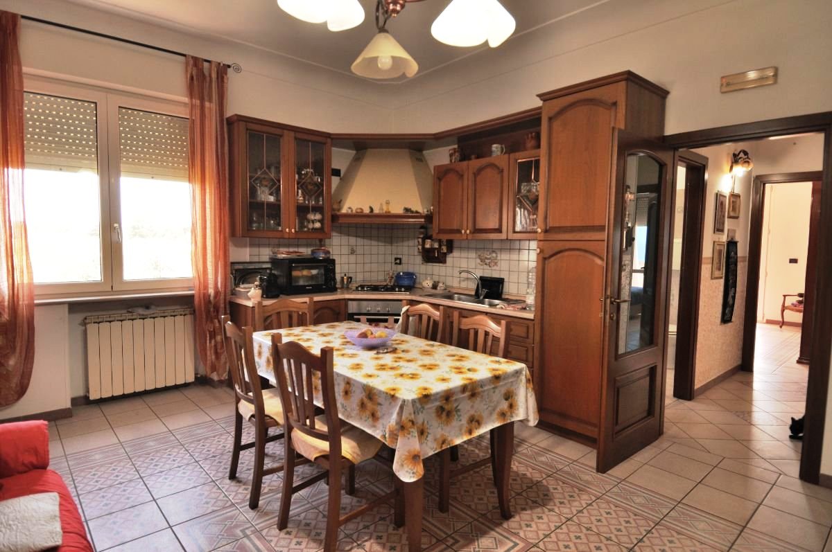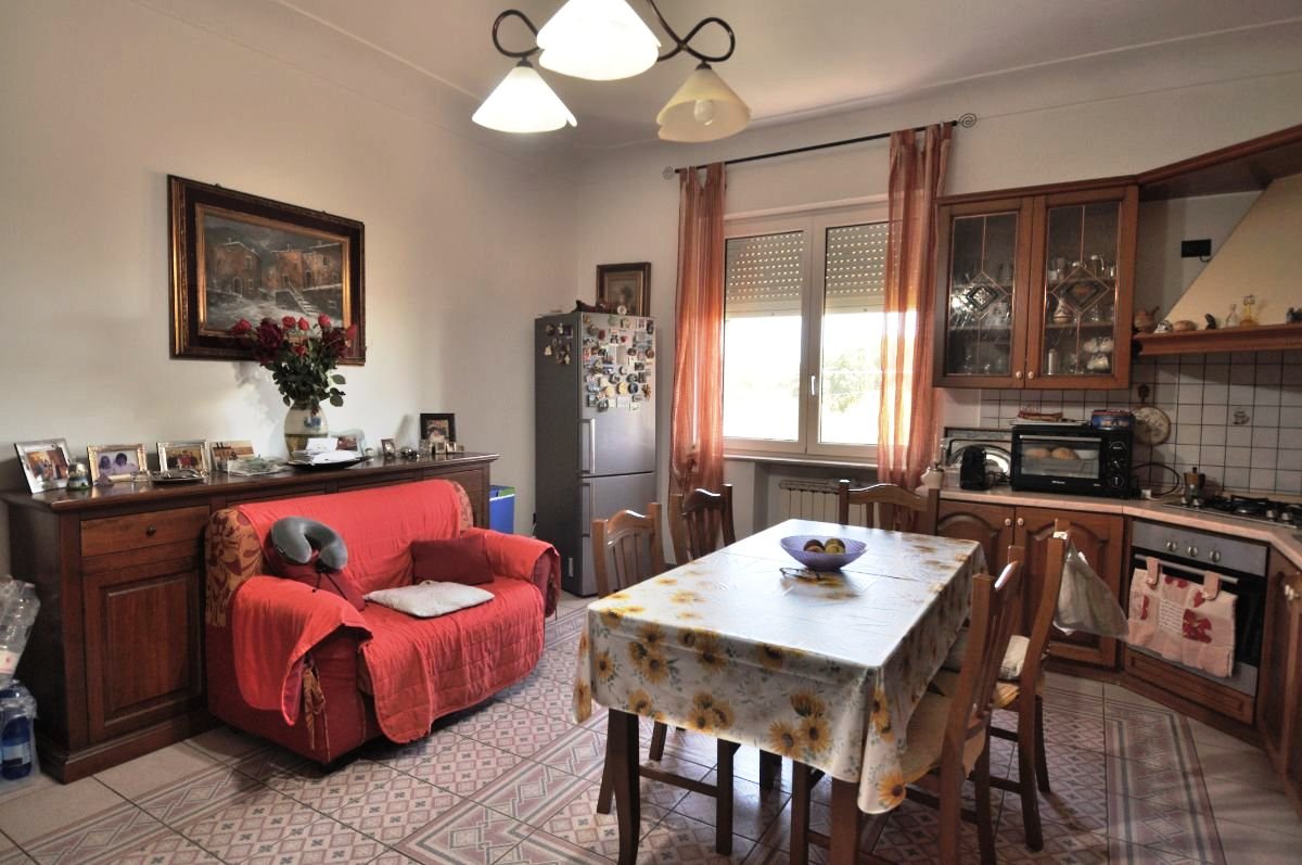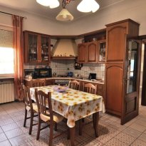 The property is spread over multiple levels. On the first floor there is a spacious and bright living room, while the upper floor hosts the kitchen with dining area, two bedrooms, and a bathroom, offering a comfortable and well-organized living space ideal for a family home.