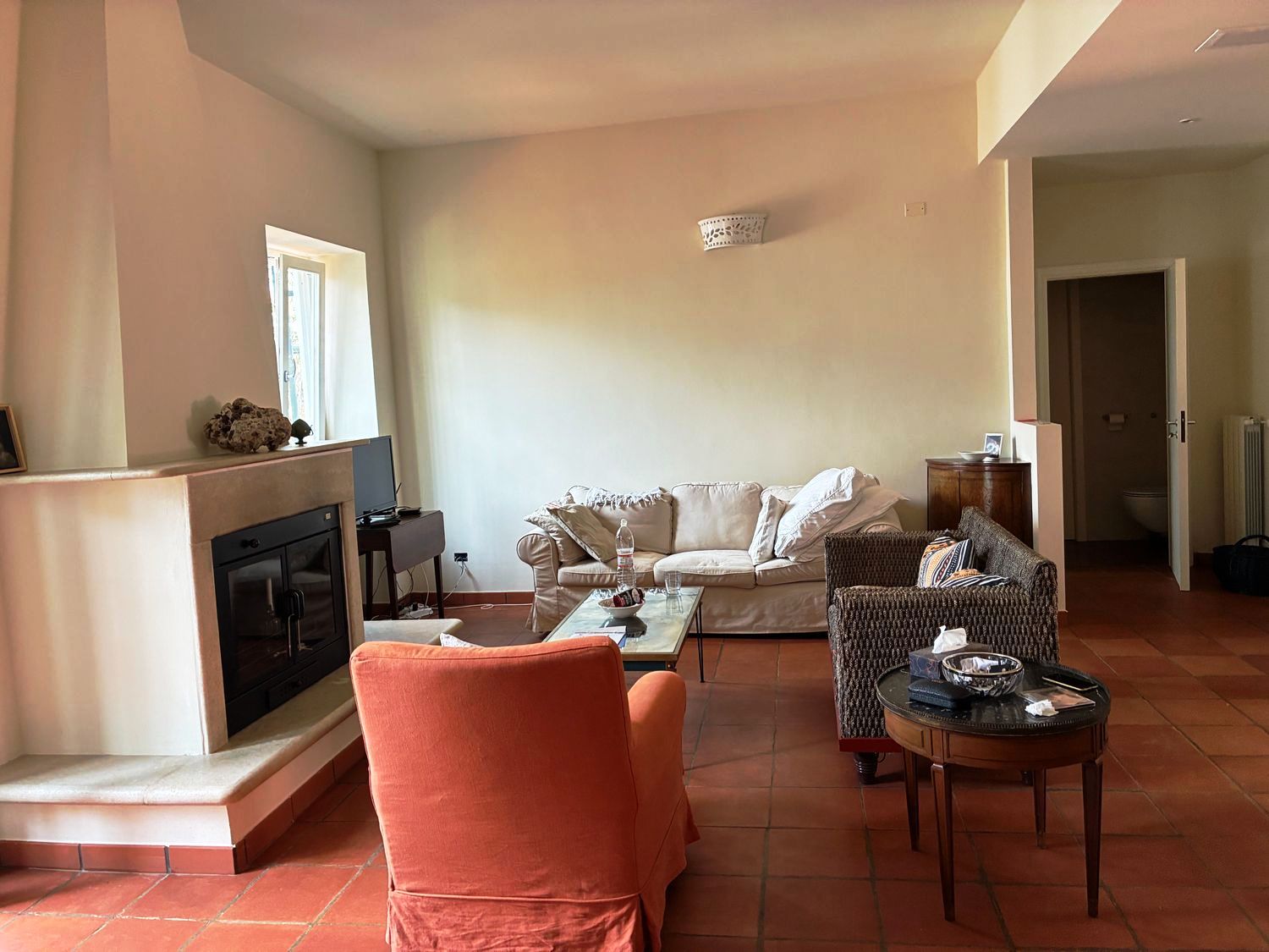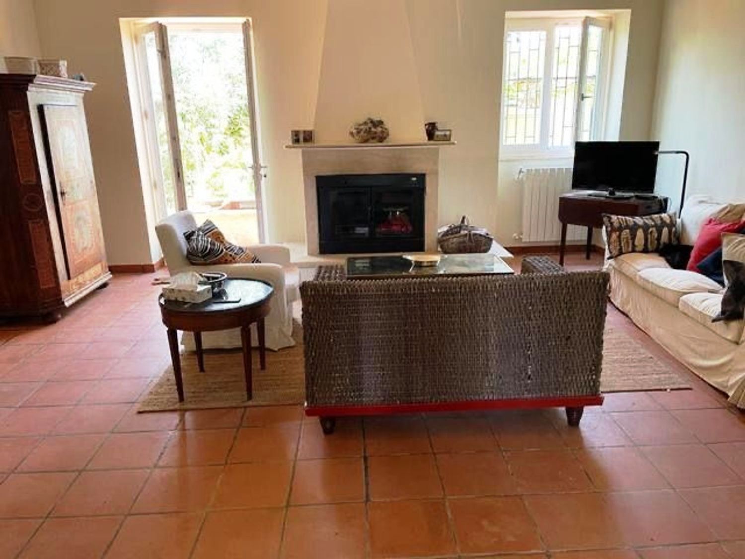Inside, the villa features: entrance, hallway, internal bathroom and a second bathroom with outdoor access, kitchen, laundry room, spacious living room with fireplace, and two double bedrooms. Thanks to the existing volume, additional rooms can be created as desired. The villa is in excellent condition and ready to move in.