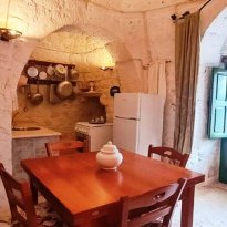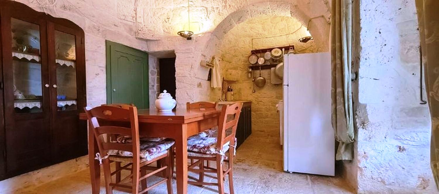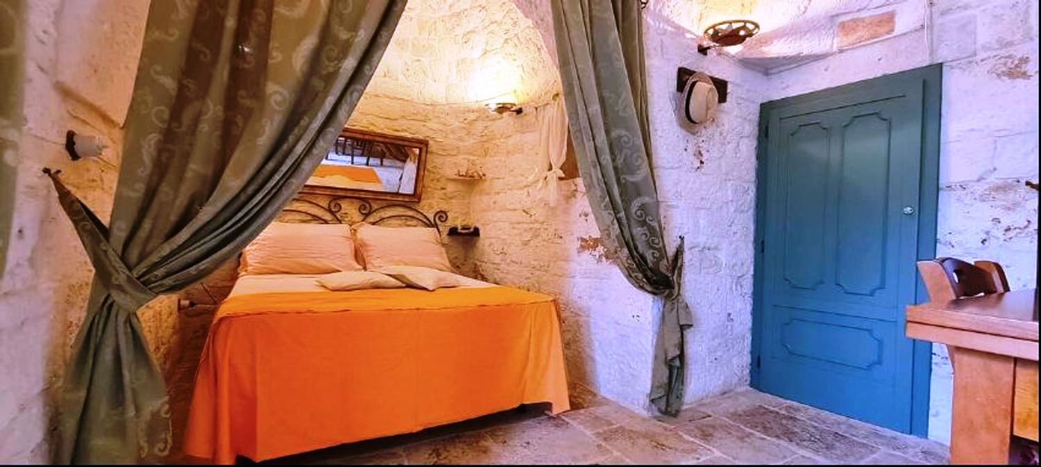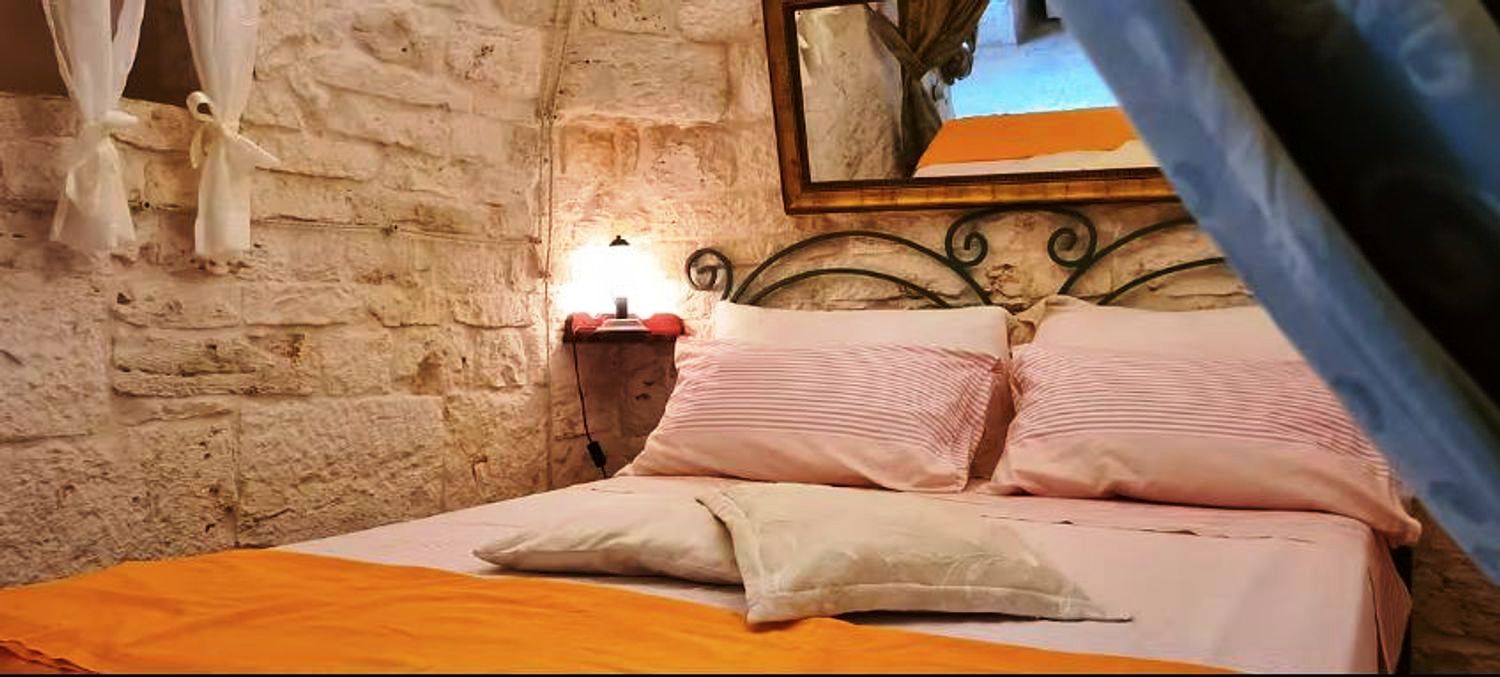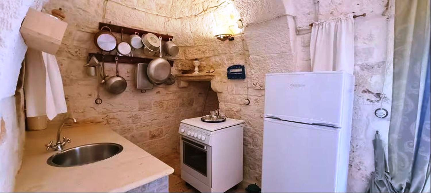 With respect for the rural architecture of that period, the trullo has been restored and brought back to its former glory. Inside, you'll find the beautiful original "chianche" floor, with its exposed stone cones and wooden elements and alcoves, where the colors blend together in an incredible interplay, just like in times gone by. You'll almost feel like you're back where the people lived 200 years ago.