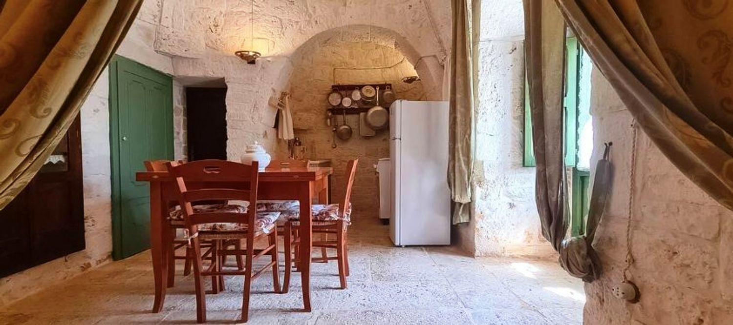 In Puglia, in the Ceglie Messapica countryside, the capital of Apulian gastronomy, in one of the most residential and popular areas, just 1 kilometer from the city center, stands this ancient trullo, surrounded by over 7,000 m² of land planted with oak and olive trees. The current owners purchased this property thirty years ago, attracted by the beauty of the surroundings and the simple, authentic lines of the existing trullo.