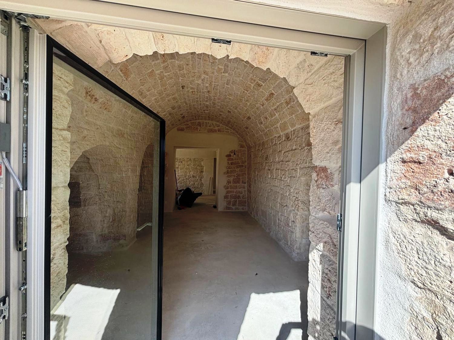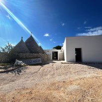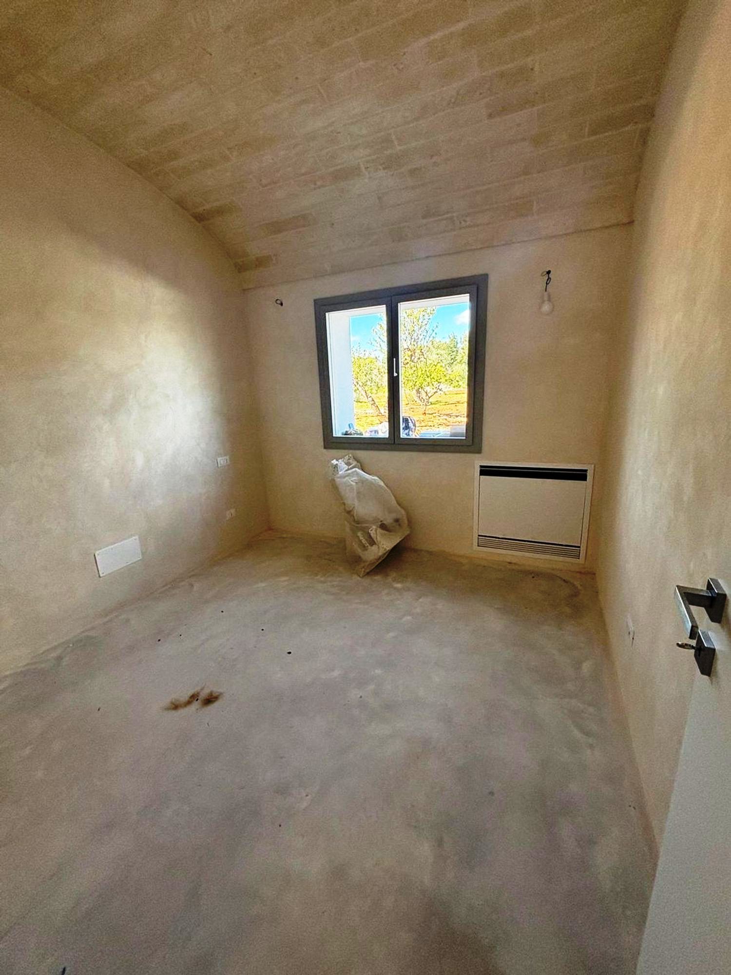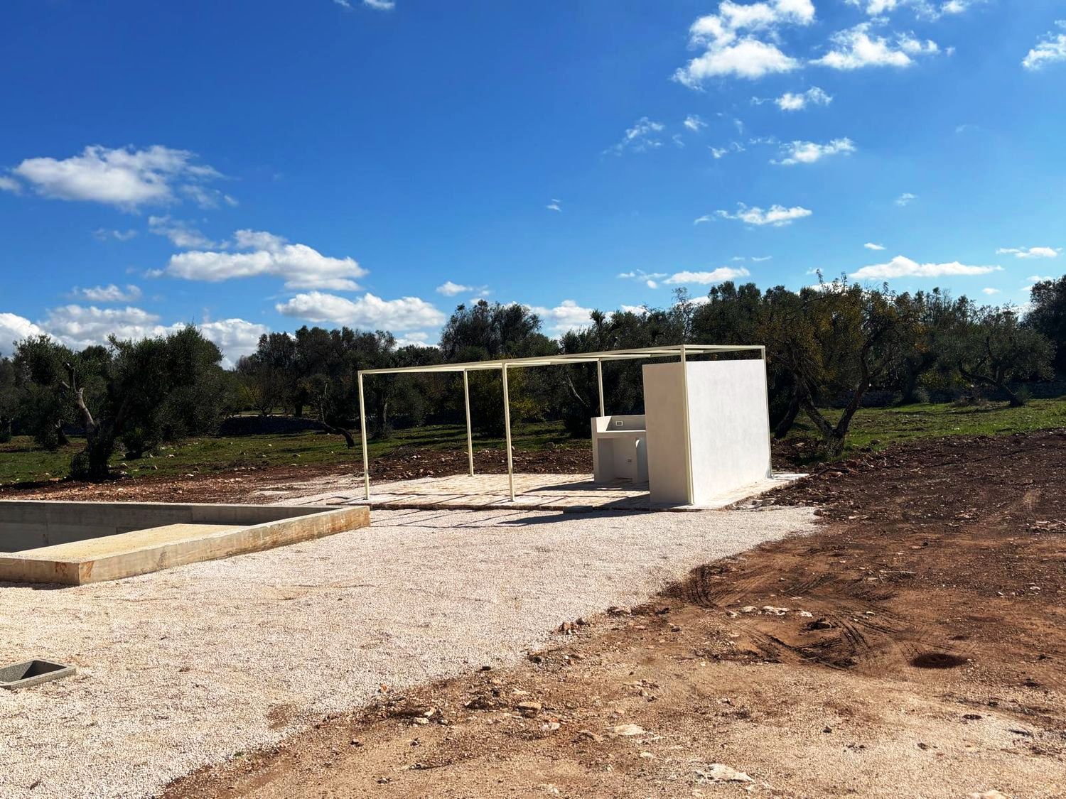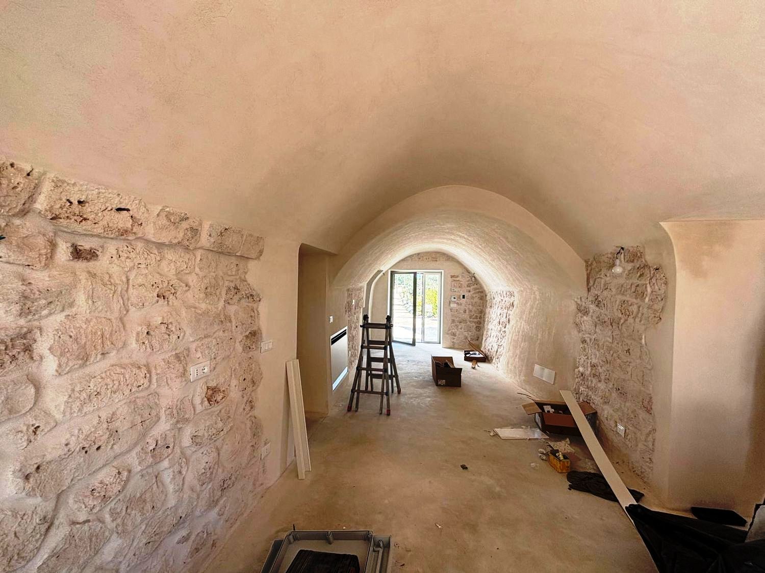 It also features state-of-the-art technology, including thermally insulated PVC windows and doors with double glazing, wall-hung sanitary ware, natural brass faucets, natural stone walls and ceilings, flush interior doors, resin flooring, a pergola with a kitchen corner, a courtyard with typical "chianche" (natural stone paving), a heat pump system for plumbing and heating, an internal heating/cooling system with fan coils, a 6 kW photovoltaic system, an automated Corten gate, an alarm system with video surveillance, an electric car charging station, an artesian well, and outdoor lighting.