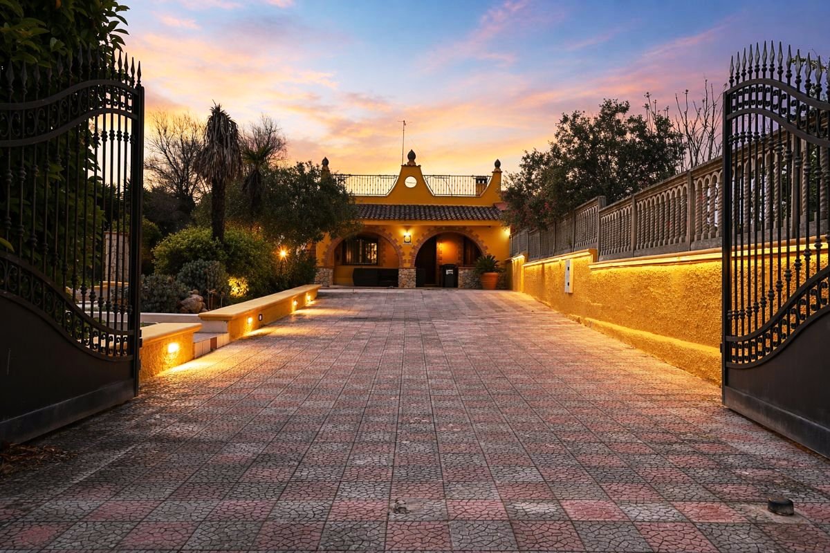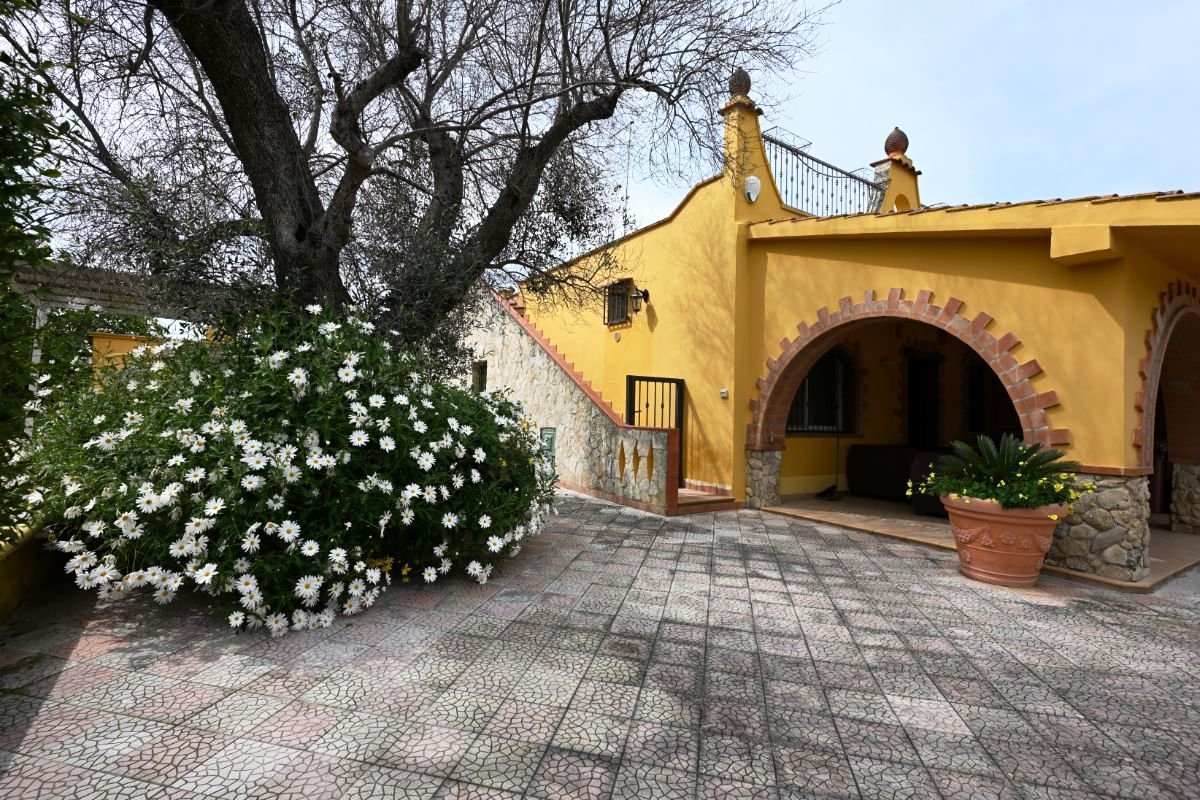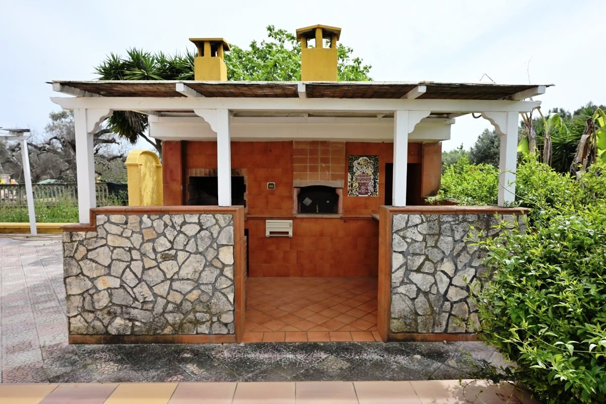 The property is fully self-sufficient thanks to an artesian well, a water storage tank, and a septic system. The entire plot is fenced with a tuff stone wall and accessed via an electric gate.