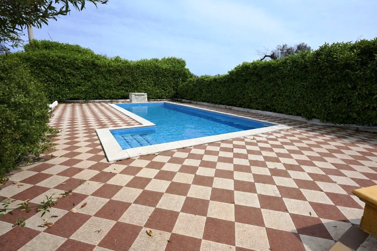 Detached villa with private swimming pool for sale in the countryside of San Vito dei Normanni, just 3 km from the center. The property of about 92 m² is equipped with 3 bedrooms and 3 bathrooms, a 50 m² covered veranda, and a plot of 6,100 m². Equipped with air conditioning, artesian well, and water reservoir, it is ideal as a private residence or as an investment for tourist rentals.