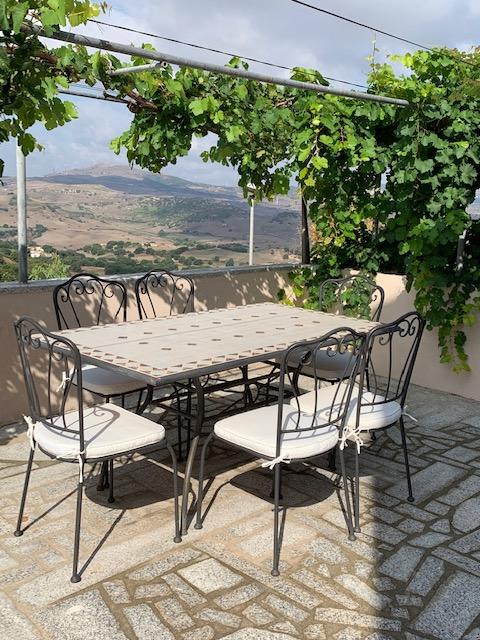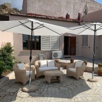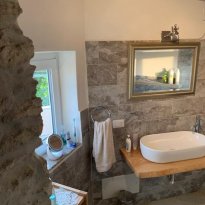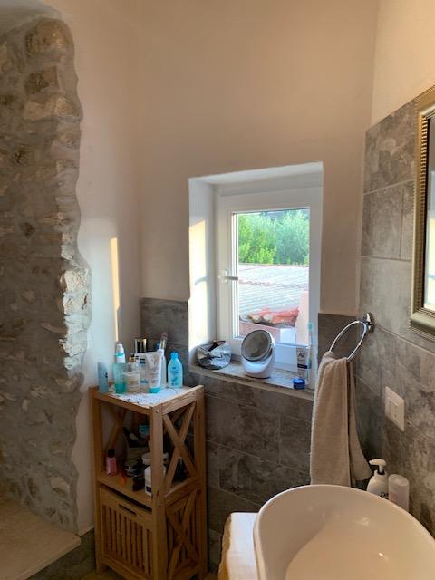 This lovely village house has three large bedrooms one with an ensuite bathroom, a large lounge, a family bathroom and a fully equipped kitchen with fridge, oven, microwave, dishwasher, hob and fitted cupboards. The kitchen leads onto a very large south west facing sunny terrace with granite paving and superb views. The flooring throughout the house is covered with large modern neutral coloured tiles. The main family bathroom has been beautifully renovated with travertine marble tiling. The terrace has magnificent views across the valley and as it is south west facing, it receives the sun all day. There is a utility room off the terrace with a new water boiler, a washing machine and sufficient space to store garden furniture and recycling bins. In addition, there is a separate covered area which also houses a large water tank, a water pump and extensive storage space with a dry cellar underneath. The house has good wifi connection and is currently fully furnished. This furniture is open to negotiation.